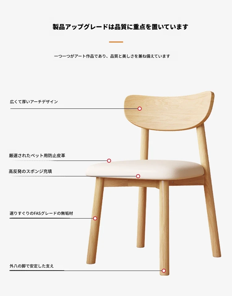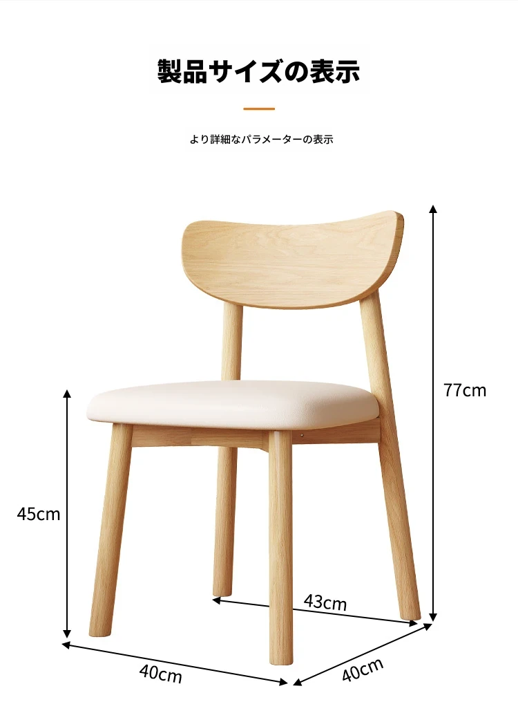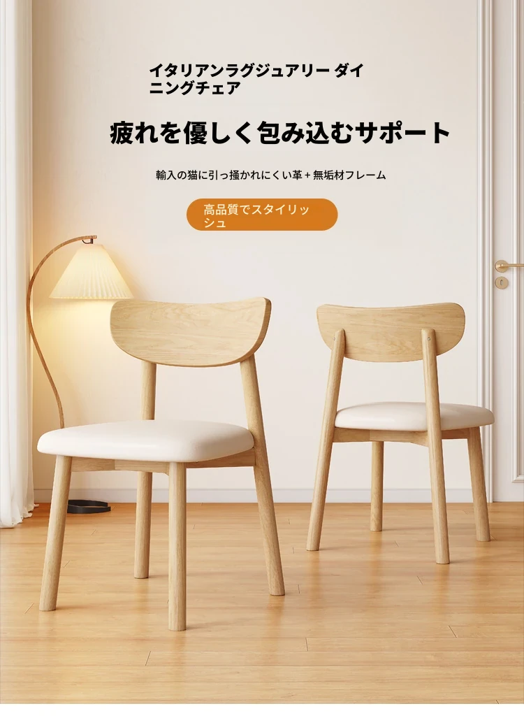 モダンでシンプルなデザインのダイニングチェア、背もたれ付き。高級感漂う実木製、書斎やレストランにぴったりのスタイリッシュな一品。食事のひとときを特別に演出します!