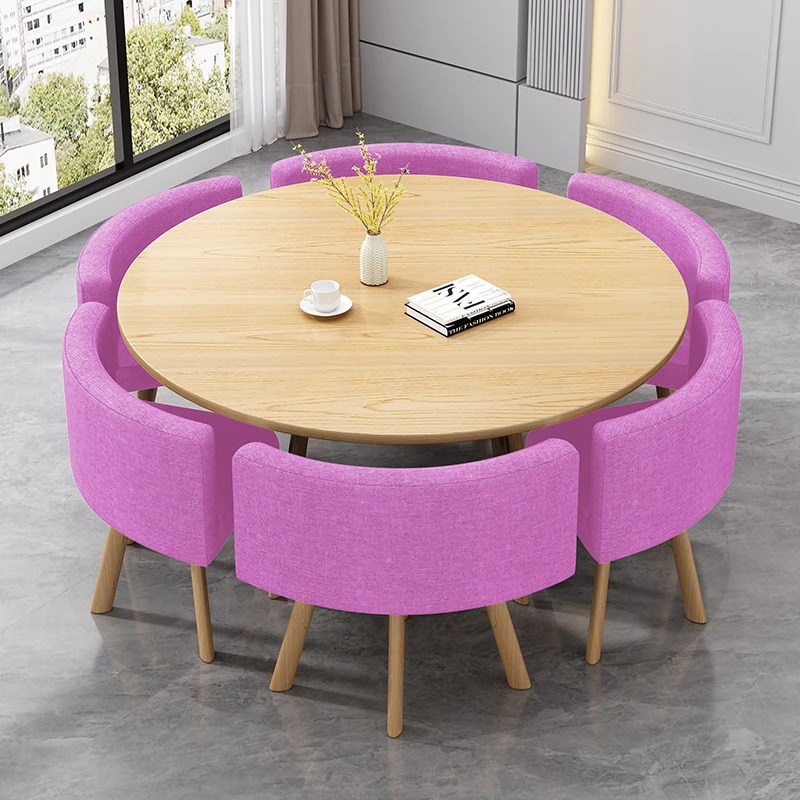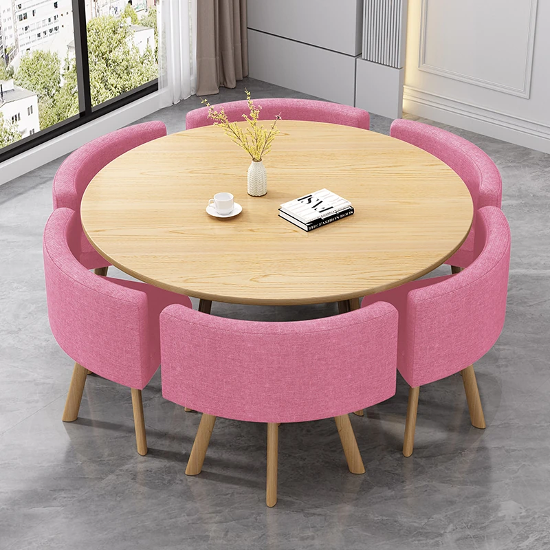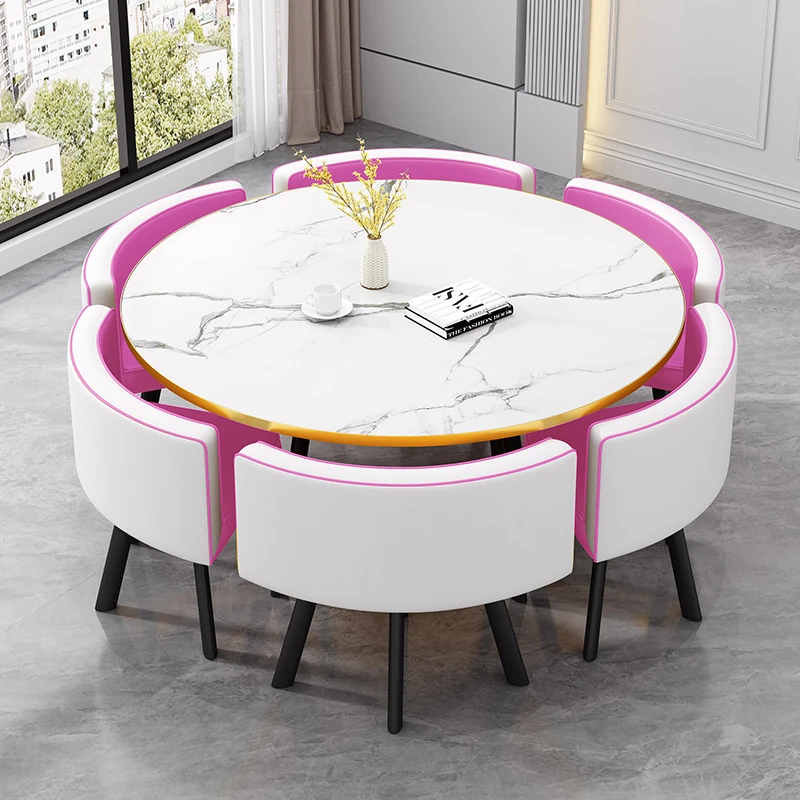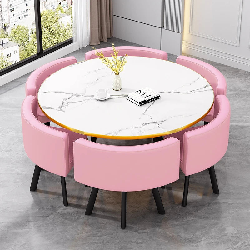 ピンクホワイト120cmテーブル+6PUレザー椅子