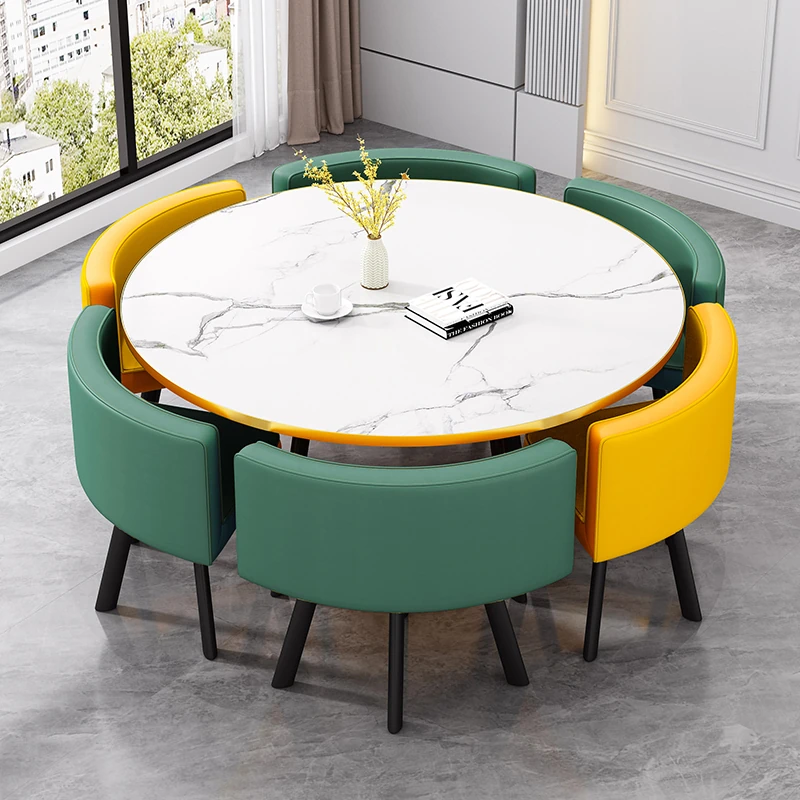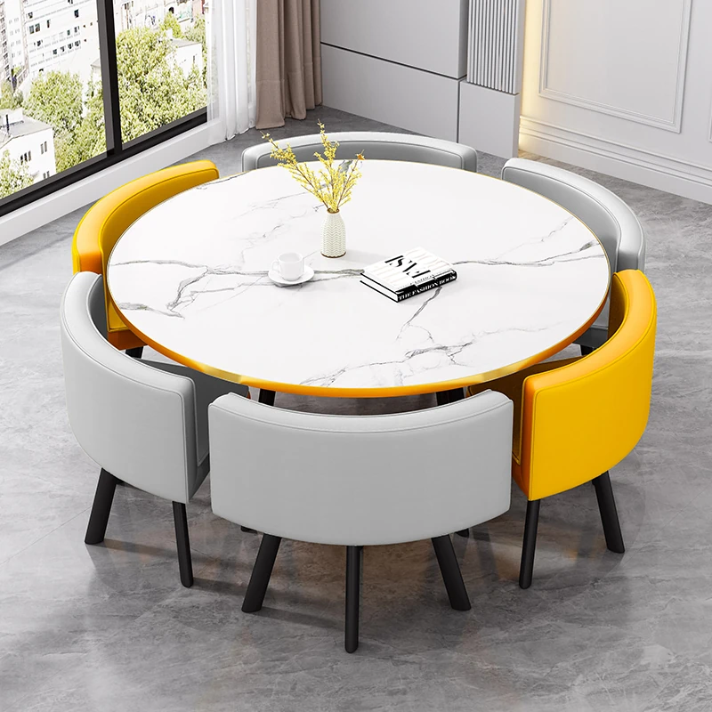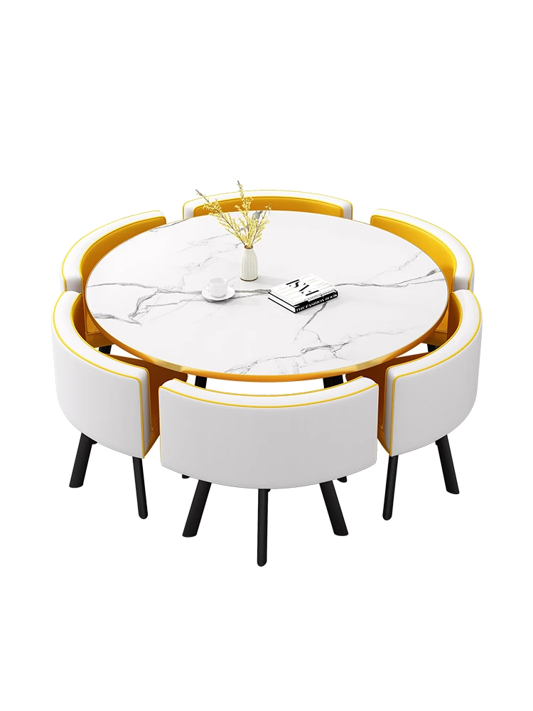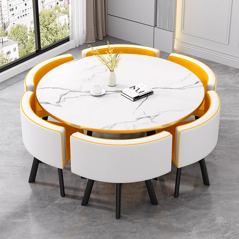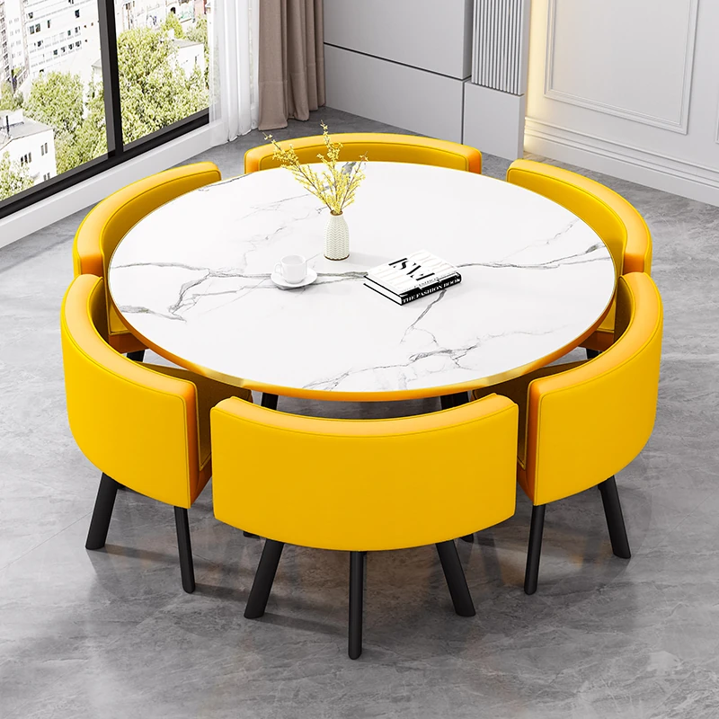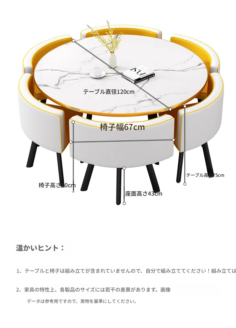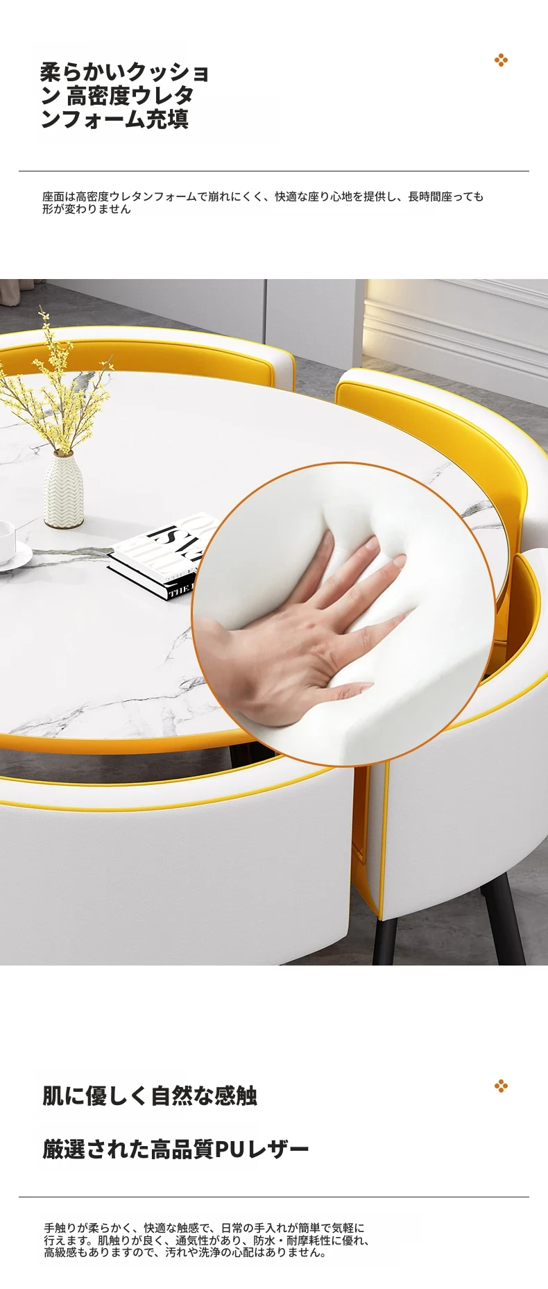 イエローホワイト120cmテーブル+6PUレザー椅子