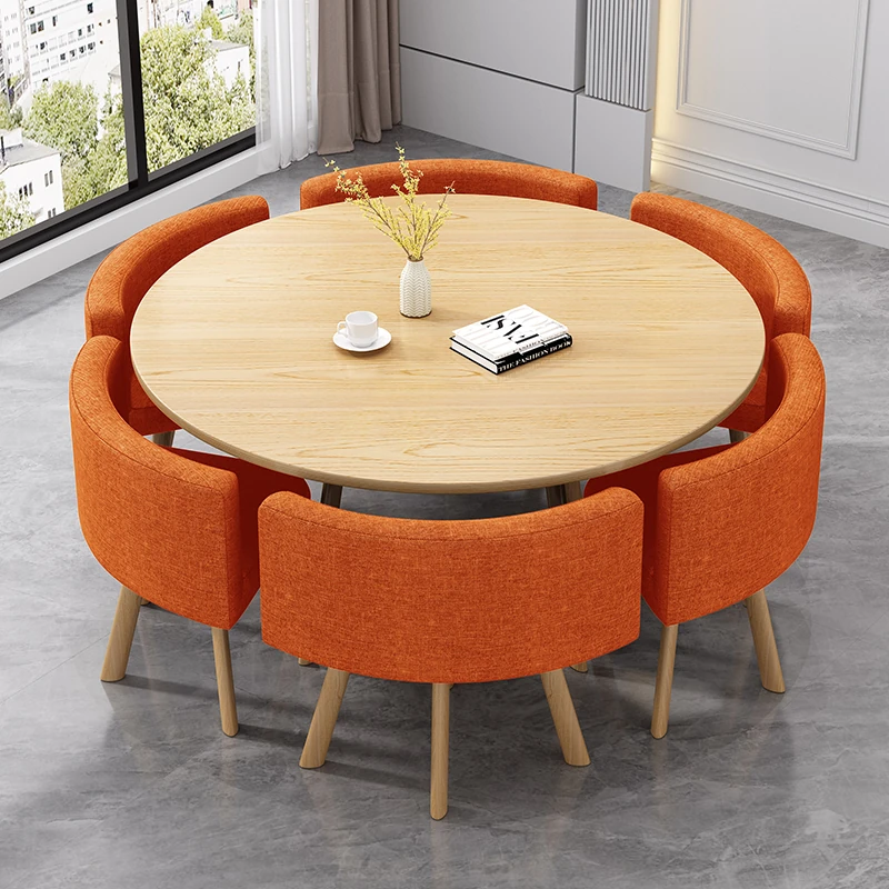 ライトグレーオレンジ120cmテーブル+6PUレザー椅子