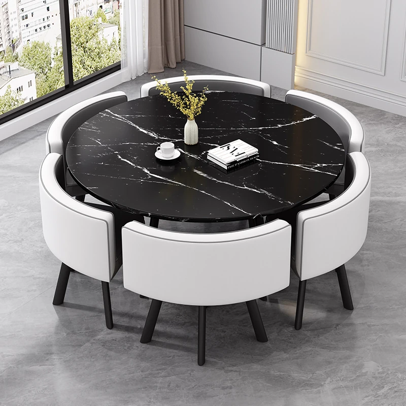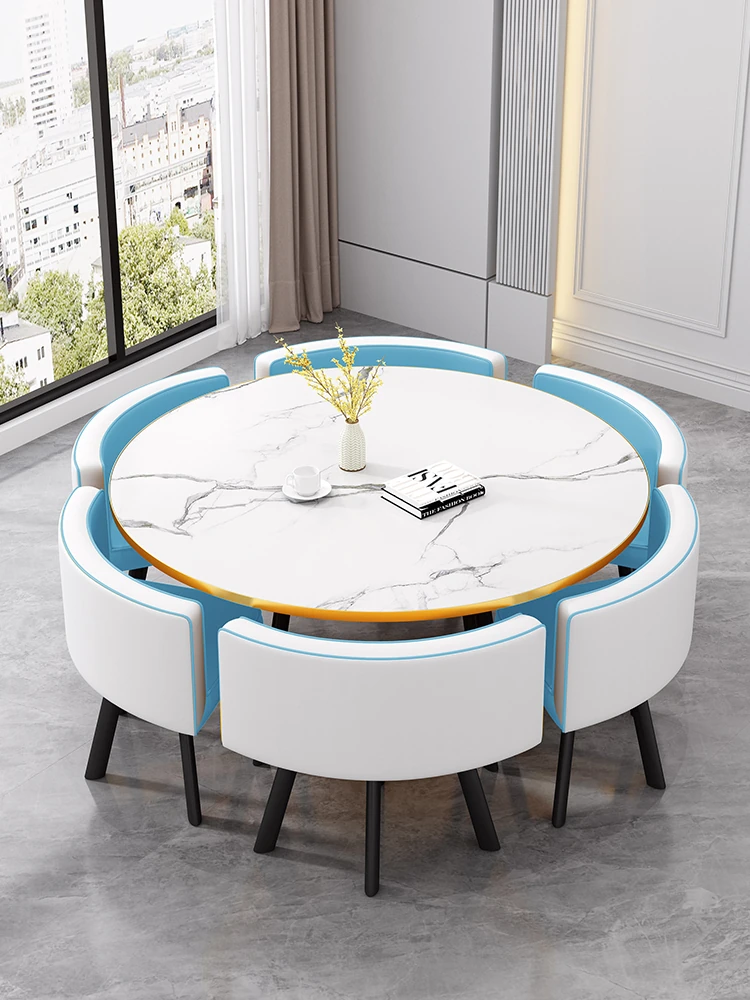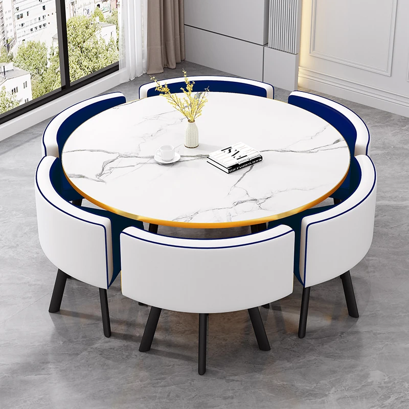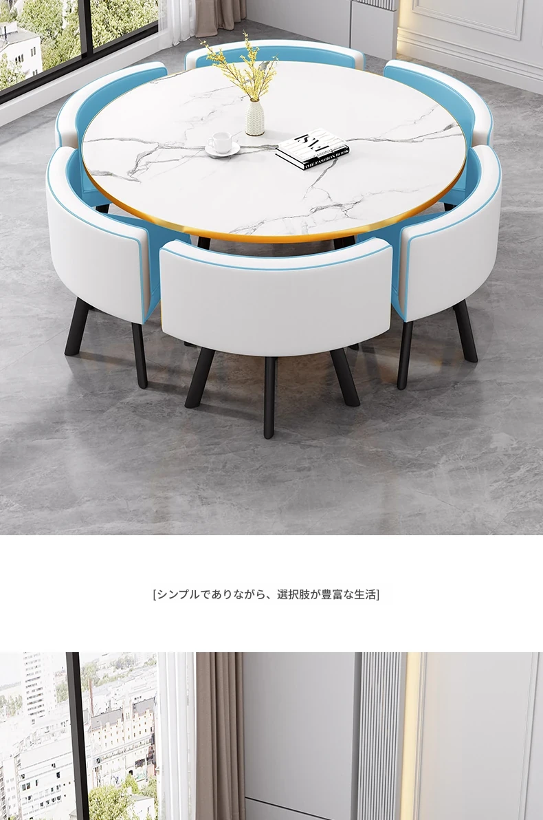 ダークブルー白120cmテーブル+6PUレザー椅子