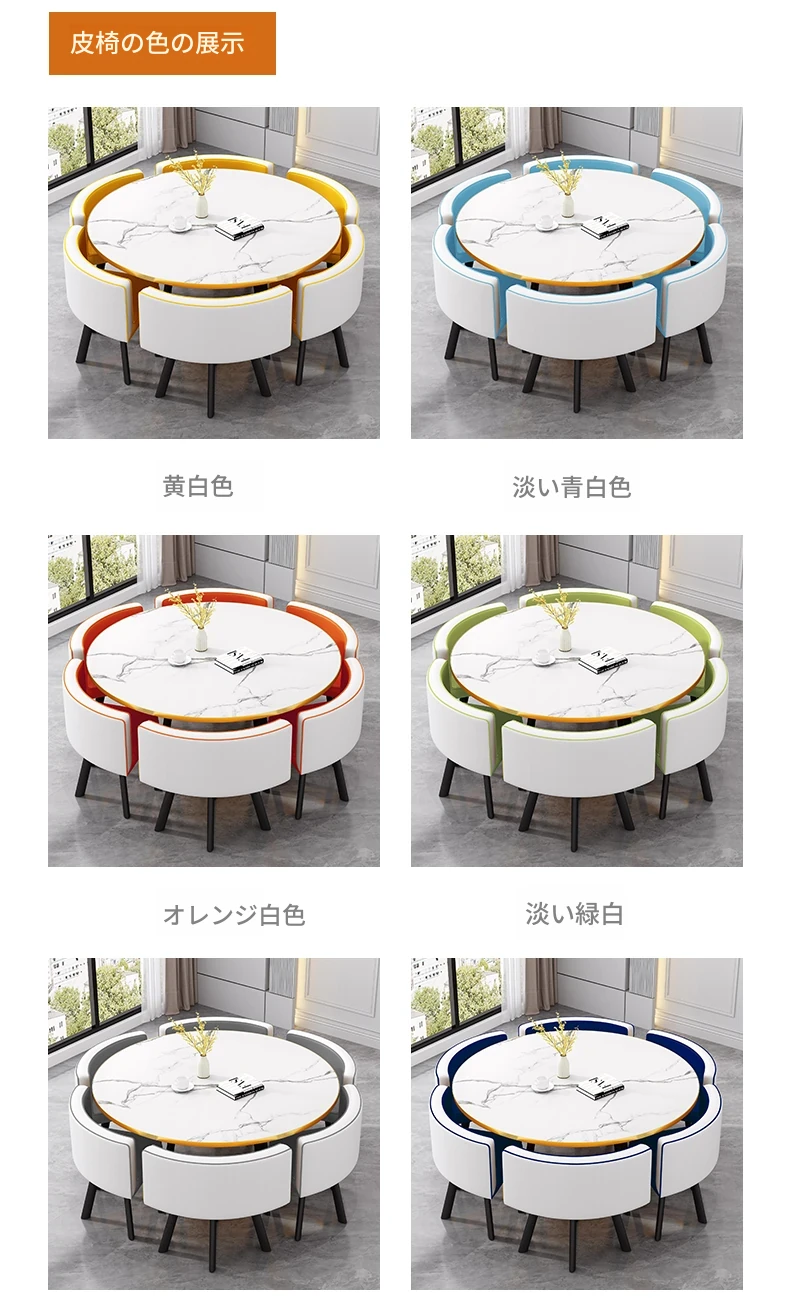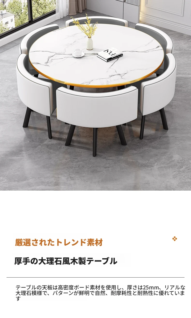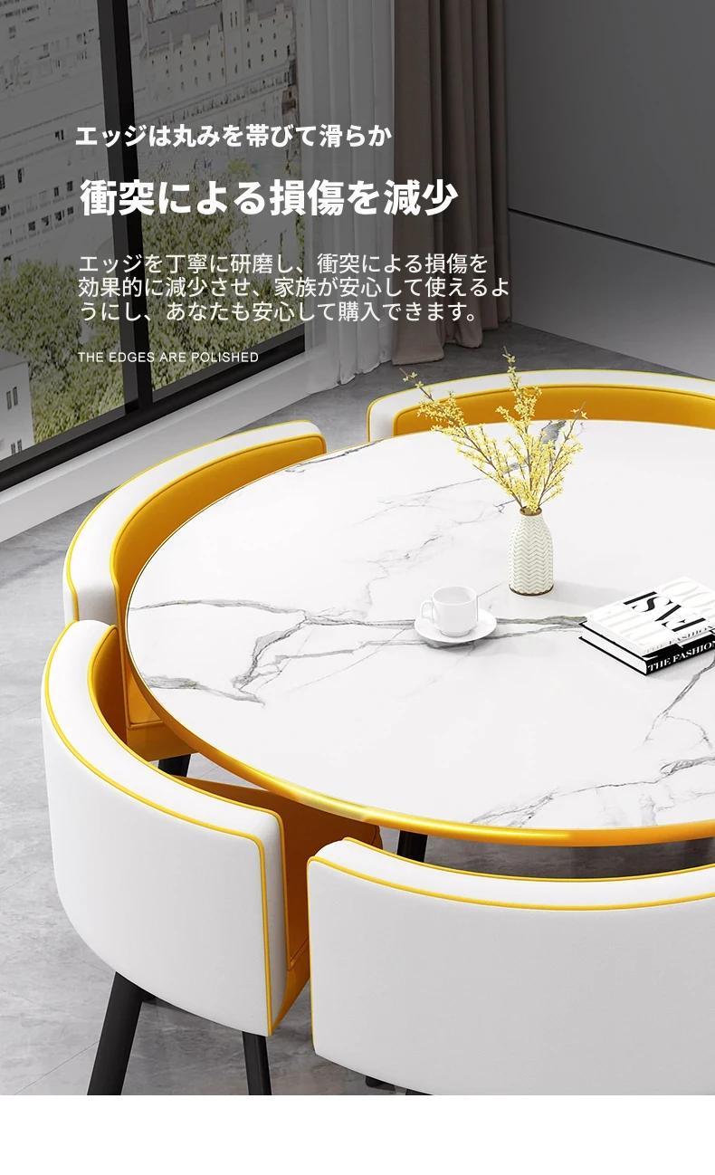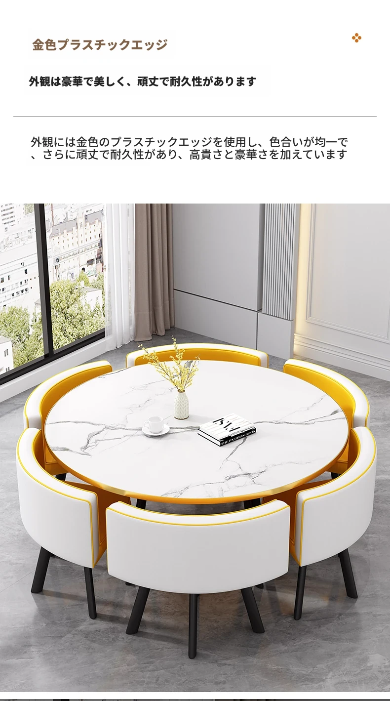 おしゃれで実用的!省スペースの小型ダイニングテーブルセット - 軽やかなモダンデザイン、最大6人対応の丸テーブルは収納可能。食事を楽しむための理想的な選択!