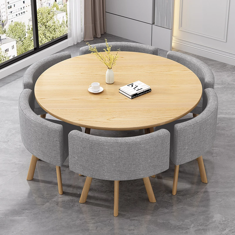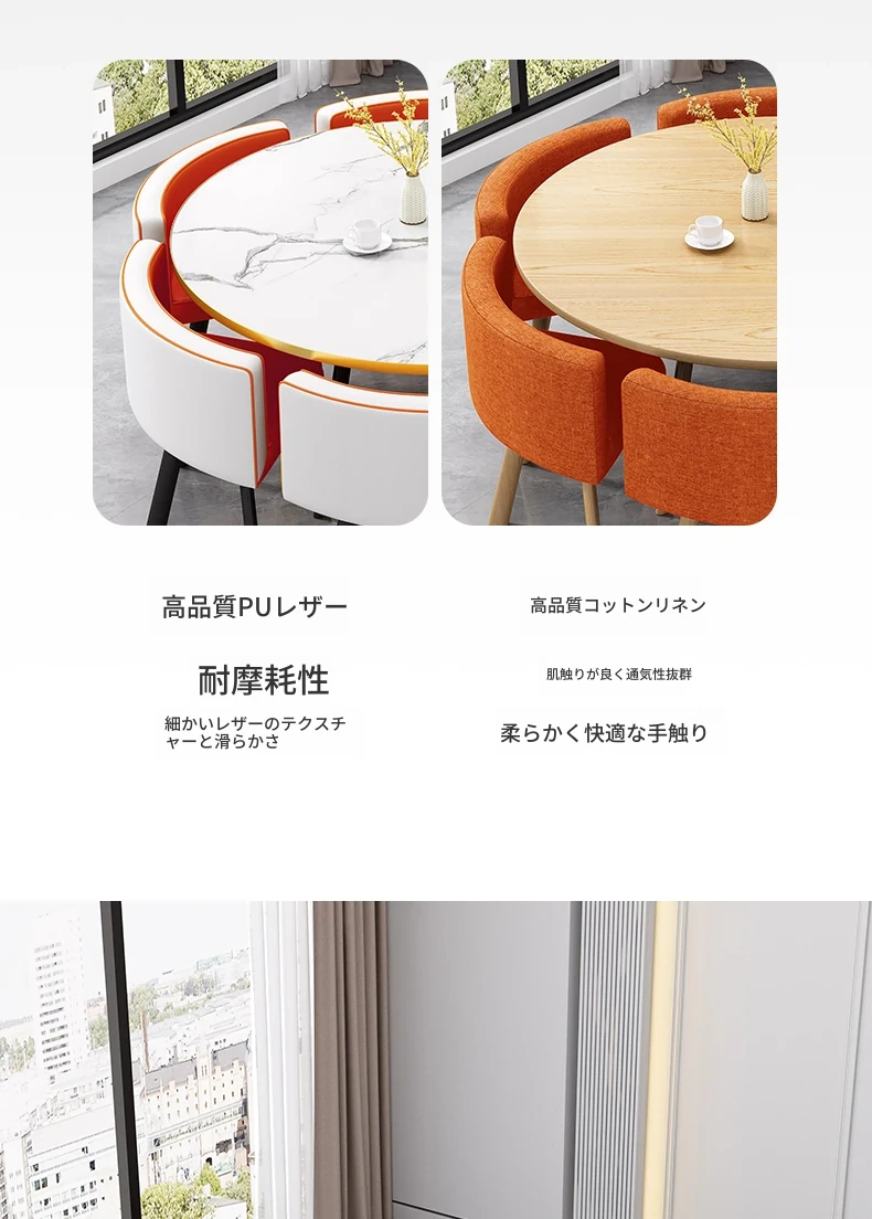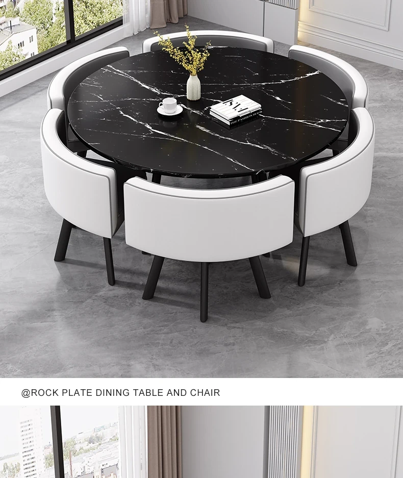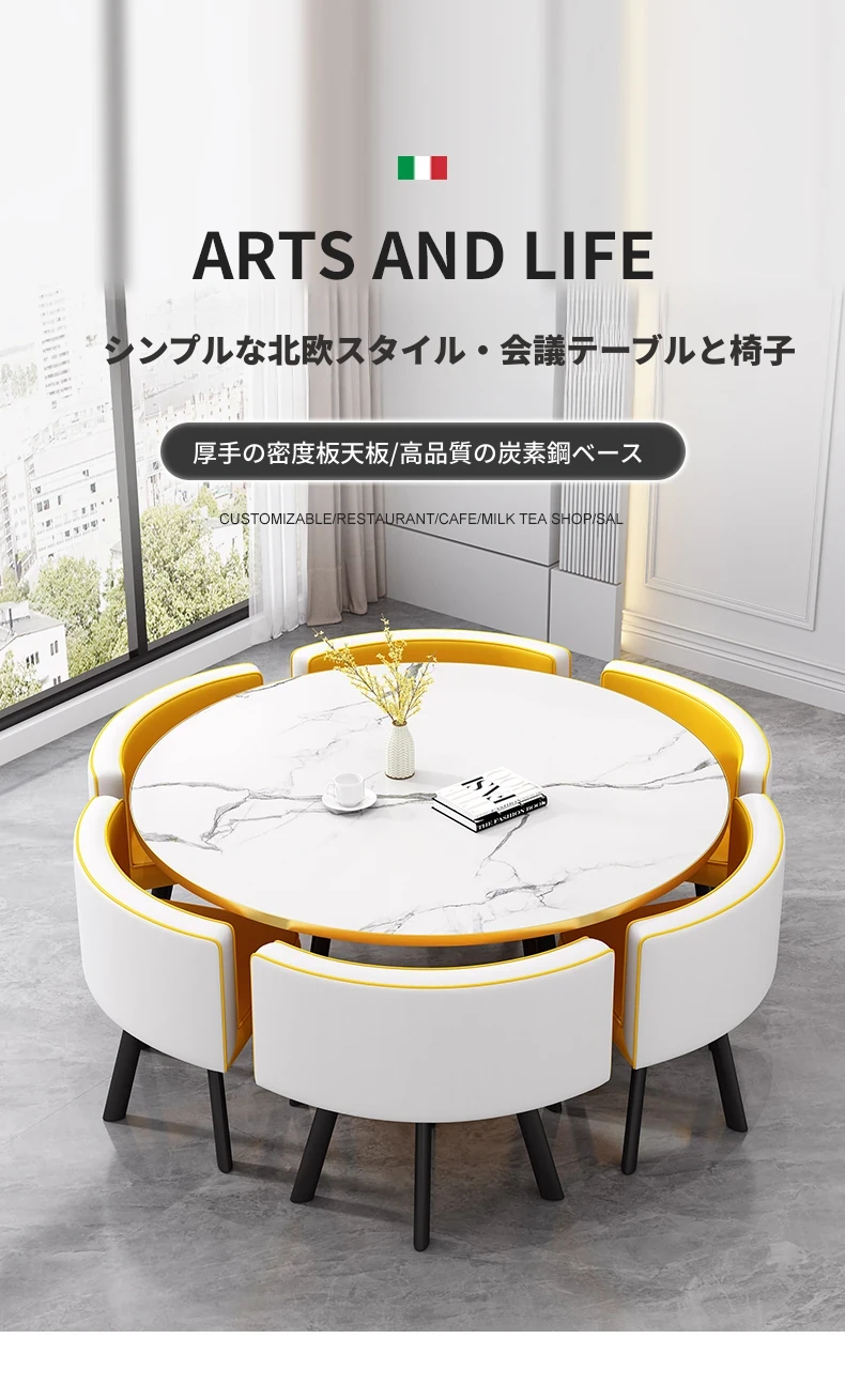 おしゃれで実用的!省スペースの小型ダイニングテーブルセット - 軽やかなモダンデザイン、最大6人対応の丸テーブルは収納可能。食事を楽しむための理想的な選択!