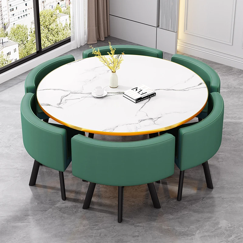 ダークグリーン120cmテーブル+6PUレザー椅子