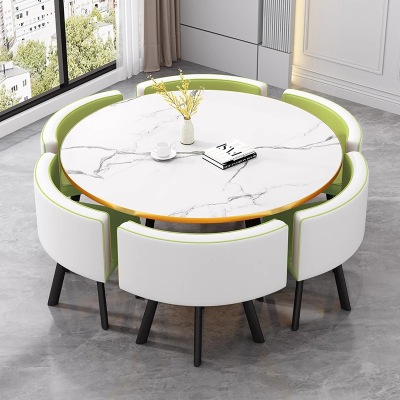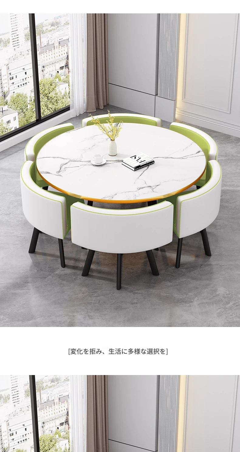 ライトグリーンホワイト120cmテーブル+6PUレザー椅子