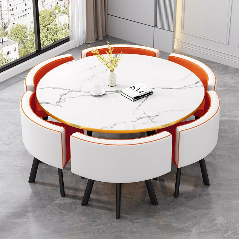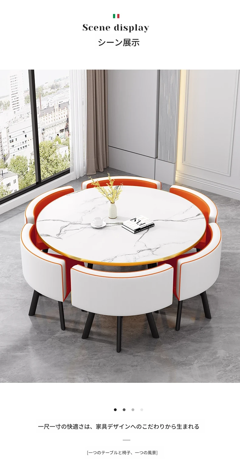 オレンジホワイト120cmテーブル+6PUレザー椅子