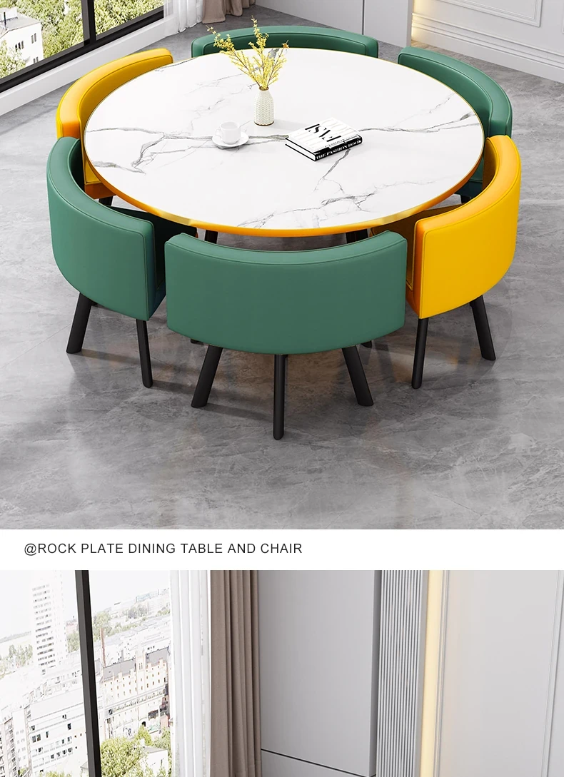 ダークグリーンイエロー120cmテーブル+6PUレザー椅子