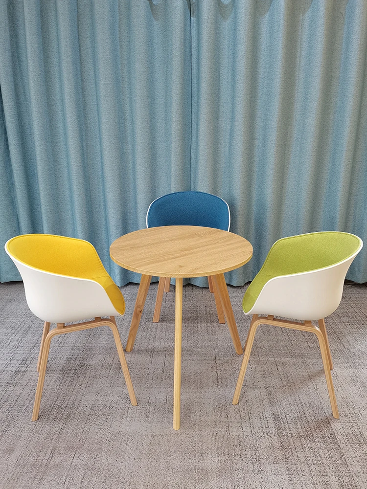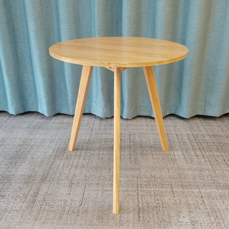 モダンでシンプルな実木製のダイニングテーブル、4S接客用・休憩エリアに最適!ホワイトのナチュラルウッドラウンドテーブル、ミーティングやティータイムにぴったりです。