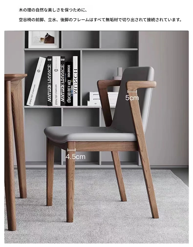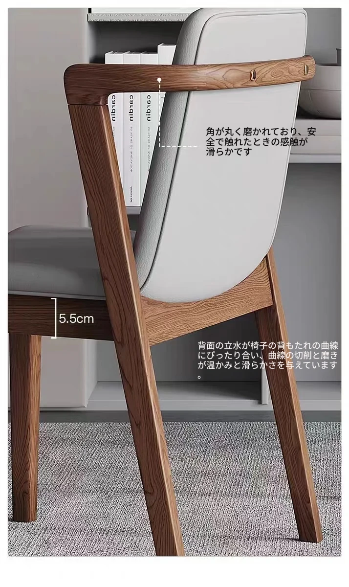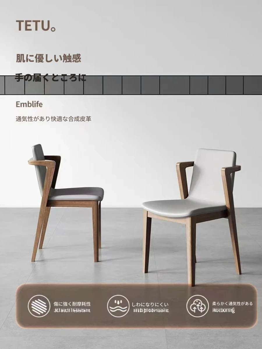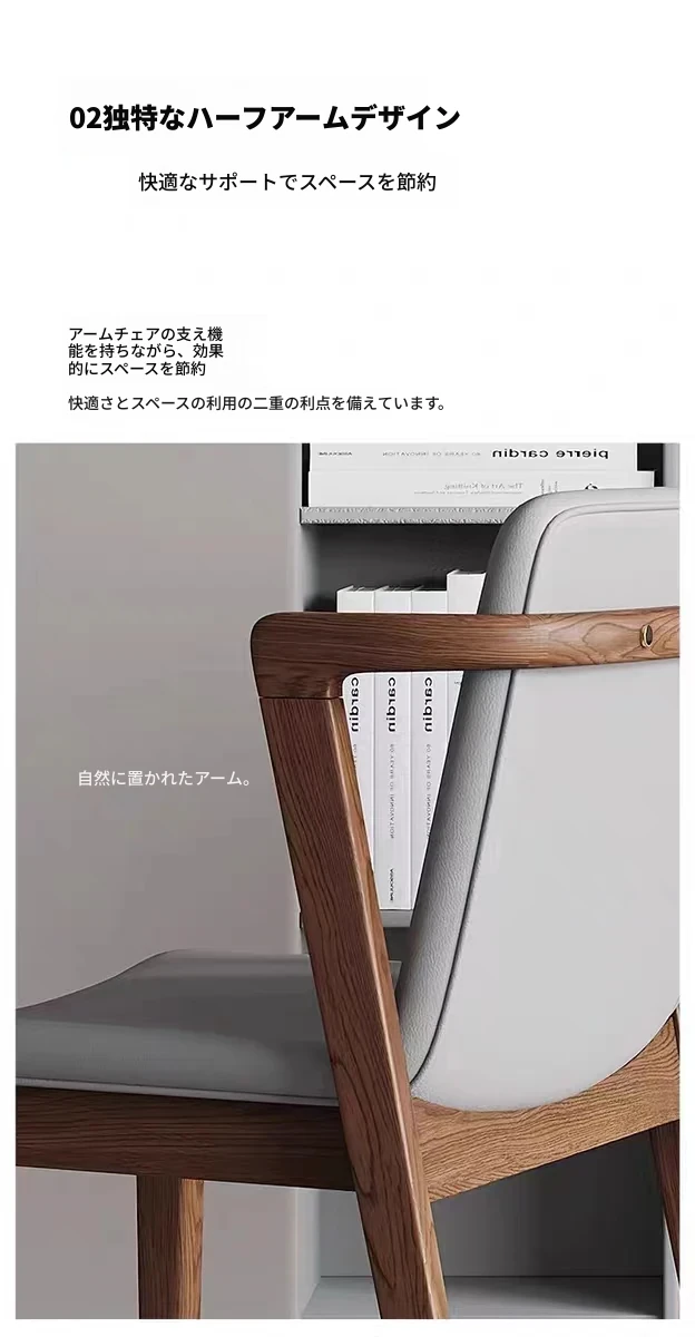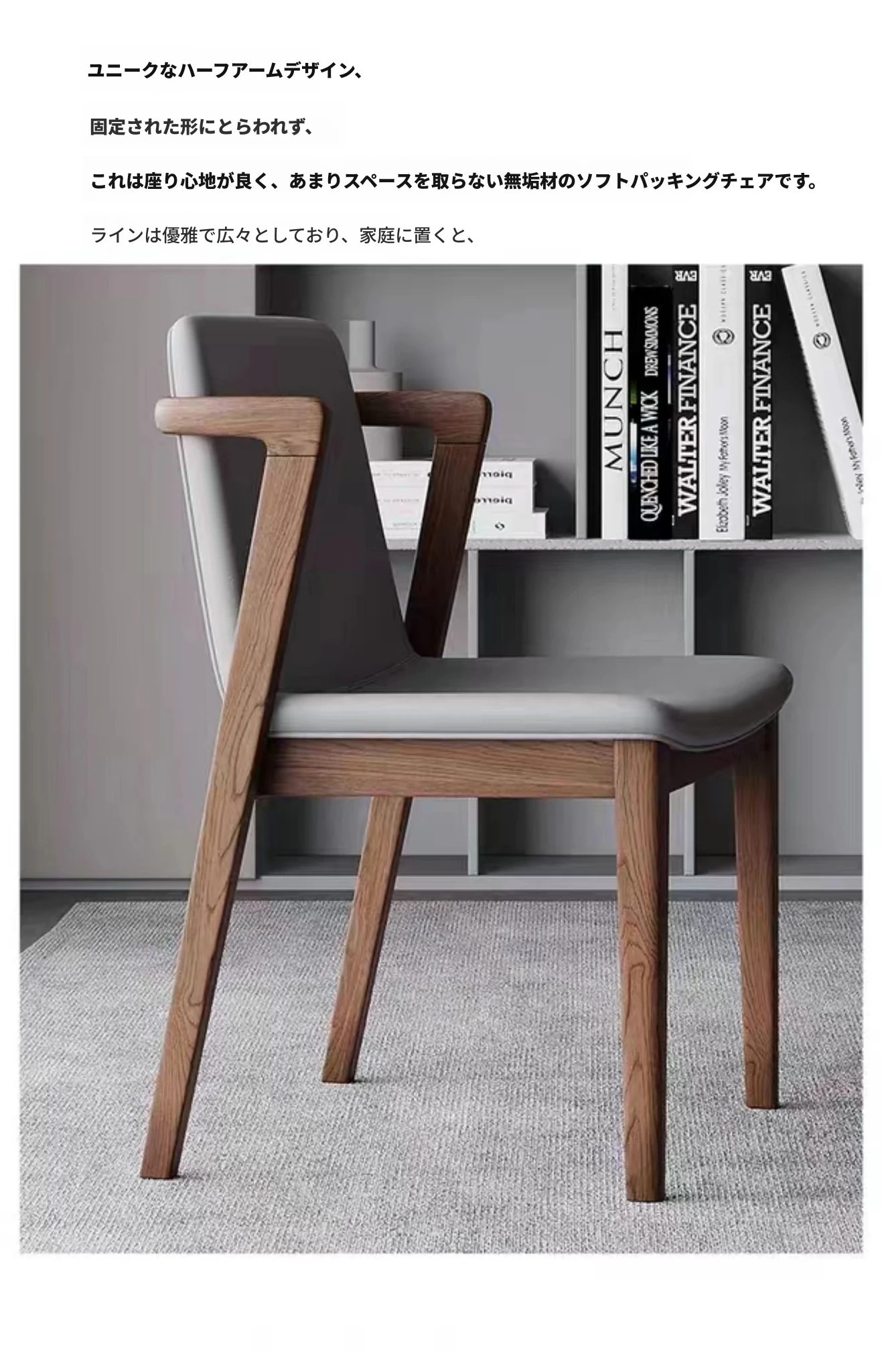 高級感溢れる北欧スタイルの実木ダイニングチェア - モダンな書斎や小さな食堂に最適な背もたれ付き会議用椅子。シンプルで洗練されたデザイン、快適な座り心地を実現!