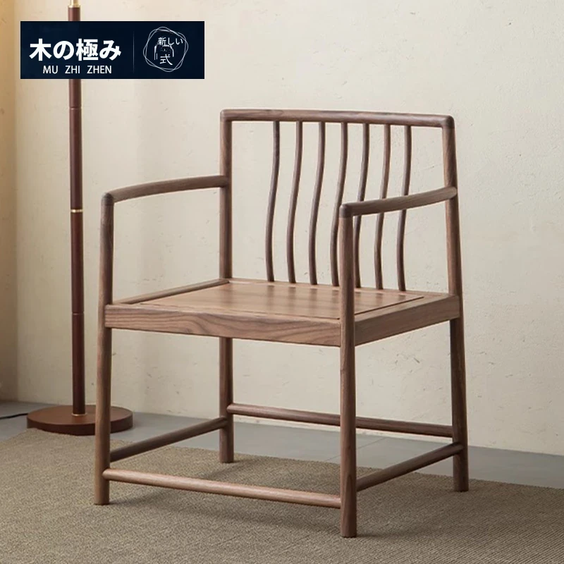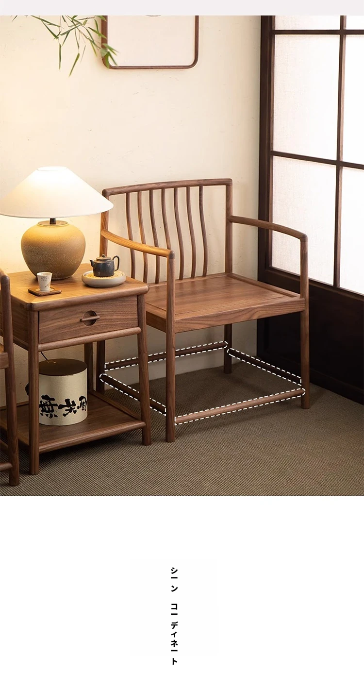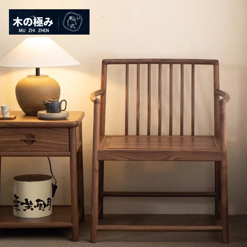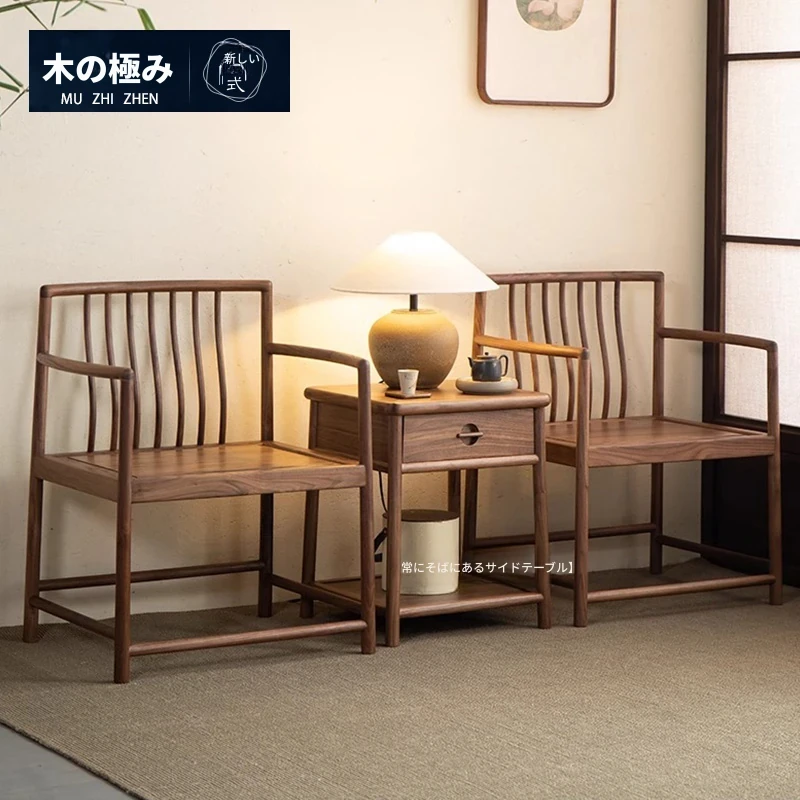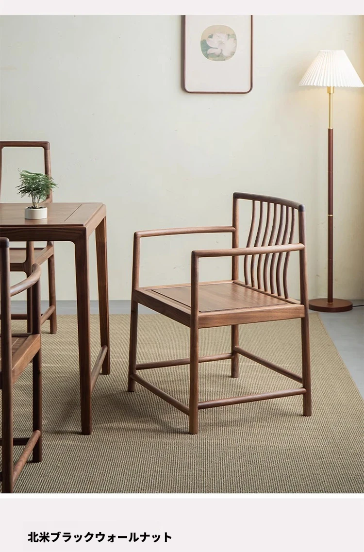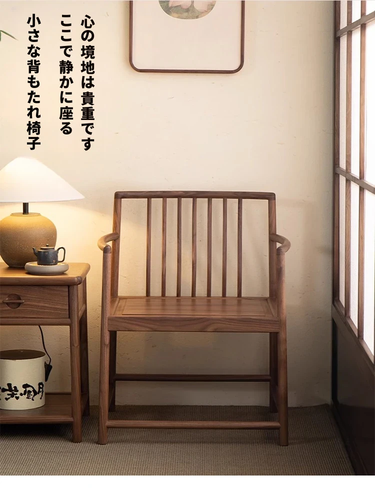 新中式禅風スタイルの3点セット!黒胡桃材の書斎・寝室用太師椅子と官帽椅子で、洗練された空間を演出。モダンな無垢材の椅子で心安らぐひとときをお楽しみください。
