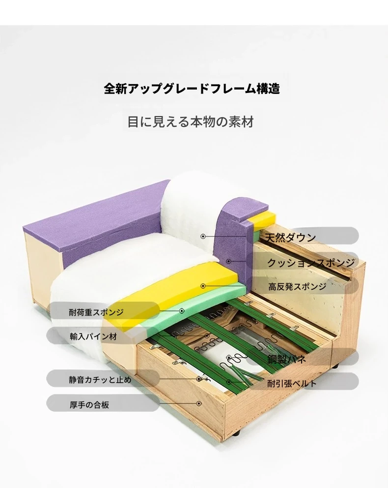 2.6メートル【柔軟エコレザー+天然羽毛+松のフレーム】