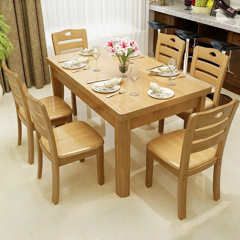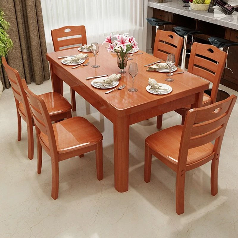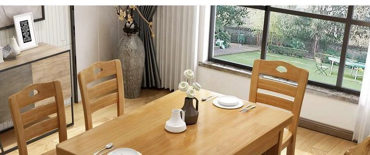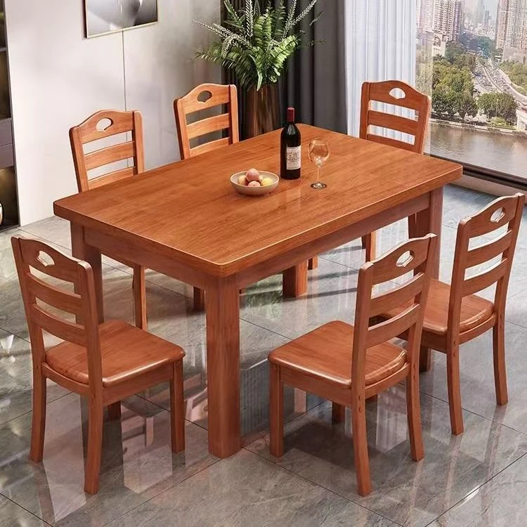 新作!モダンシンプルな無垢材中華スタイルのダイニングテーブル&チェアセット - 小型住宅に最適な長方形の食卓で、家族との食事をもっと楽しく!