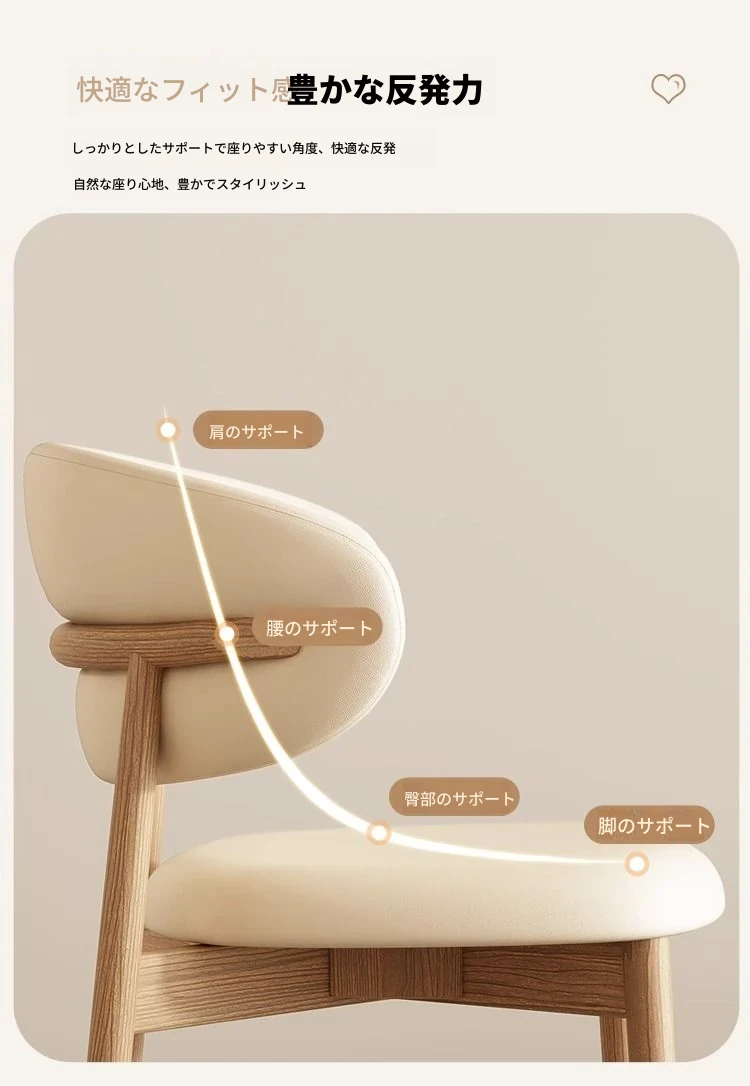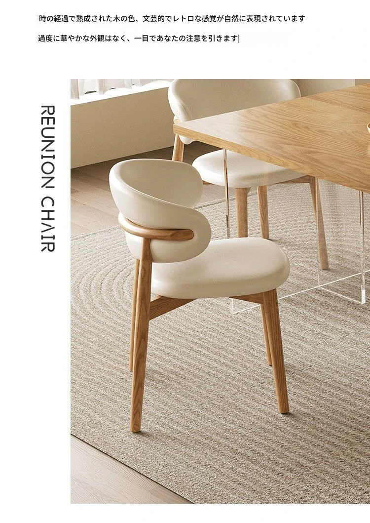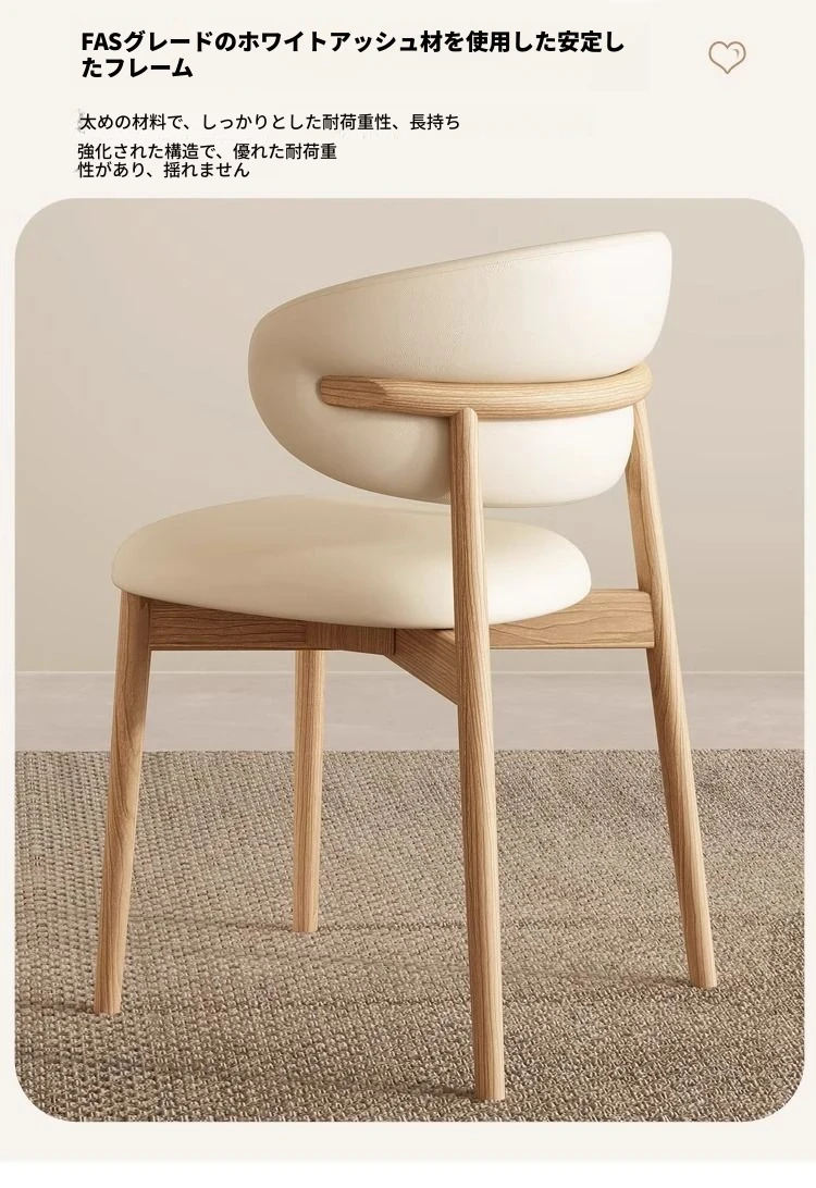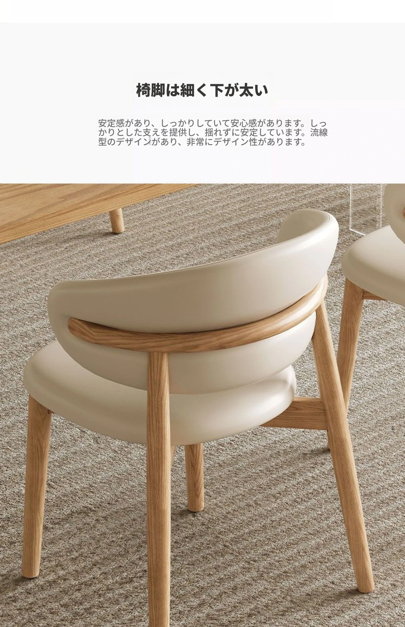 北欧スタイルのホワイトアッシュ材使用!軽やかでモダンな実木ダイニングチェア。シンプルなデザインで、カフェや家庭のリビングにもぴったりのリラックスチェア。快適な背もたれで、美しい食卓を演出します。