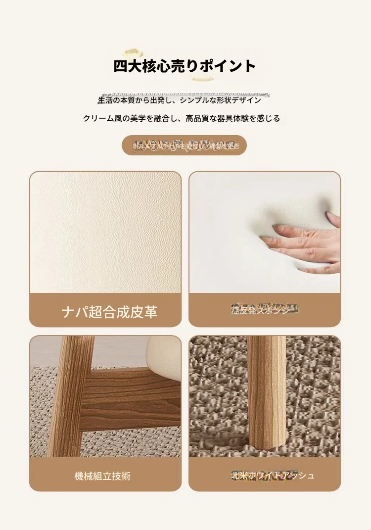 アイボリー色のレザー+ナチュラルウッドフレーム(ホワイトアッシュ)