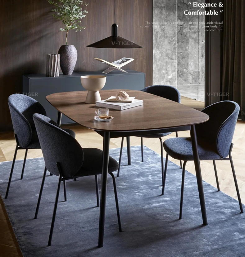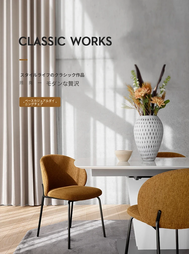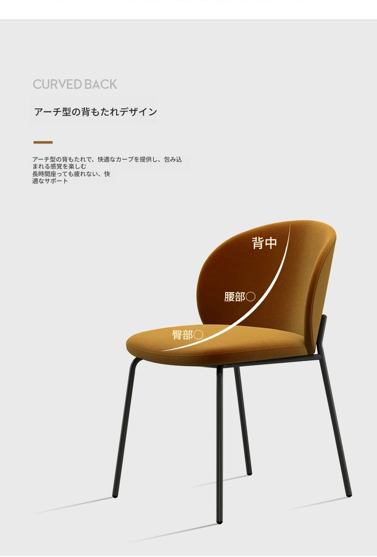 北欧デザインのラグジュアリーなダイニングチェア - シンプルなファブリック製、リラックスできる背もたれ付き、ホテルやカフェにも最適な西洋スタイルの談話椅子。