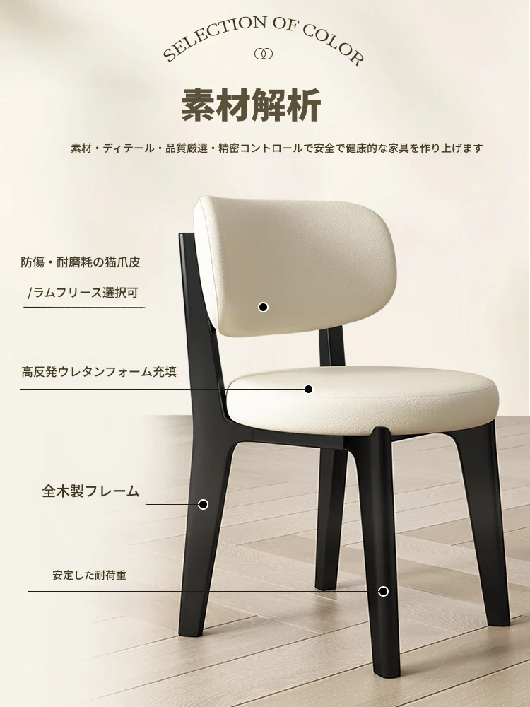 北欧風の高級感溢れる軽奢ダイニングチェア|背もたれ付きで快適な座り心地|インスタ映えするクリーム風デザイン|レストランやホテルの打ち合わせにも最適!