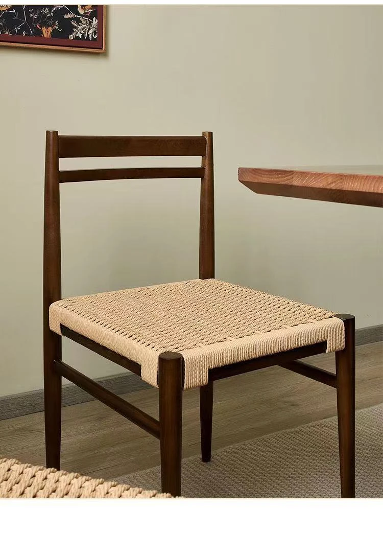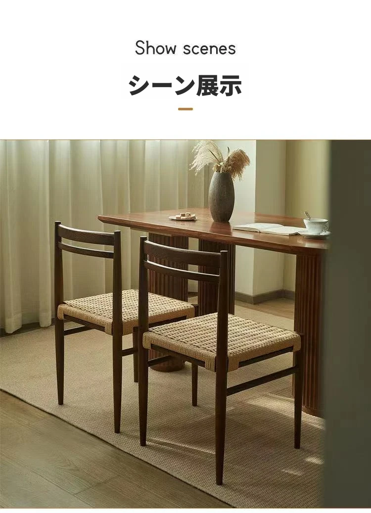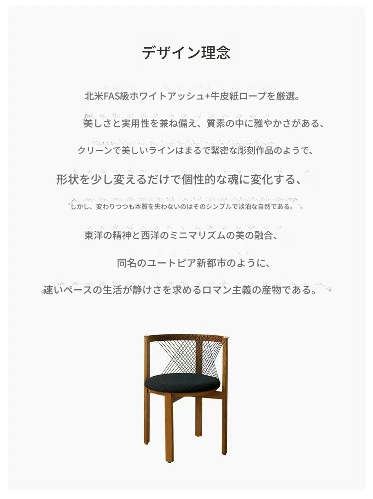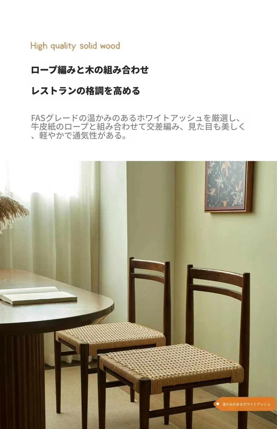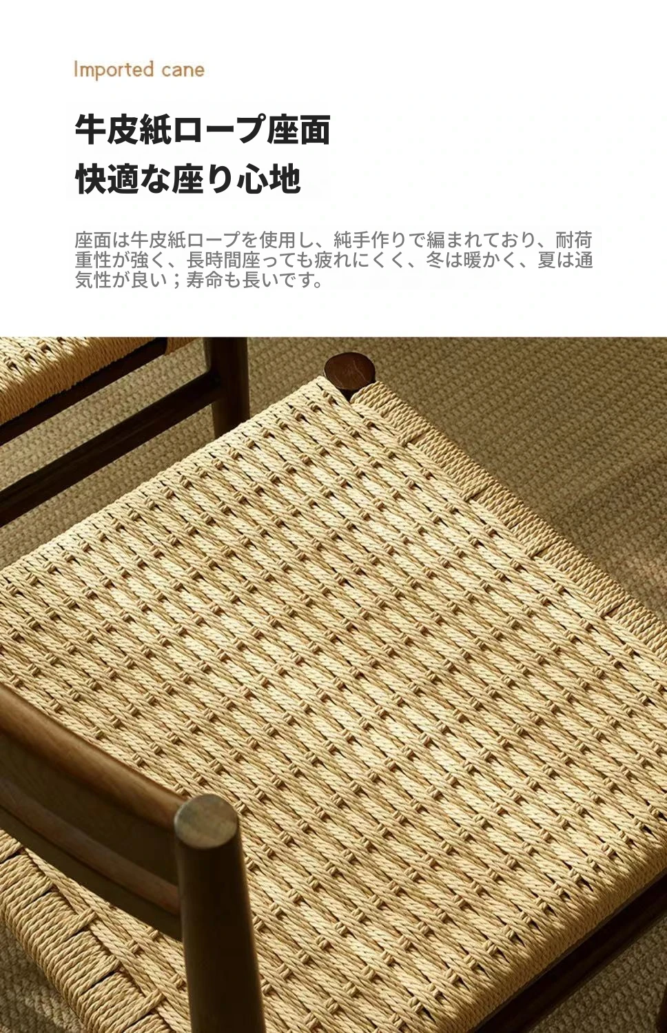 北欧スタイルのモダンでシンプルなロープ編みスツール - 無垢材使用、侘寂の美を感じる屋外用ダイニングチェア。洗練されたデザインで、心地よいひとときを提供します。
