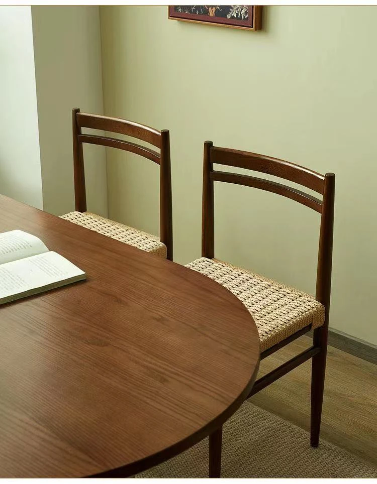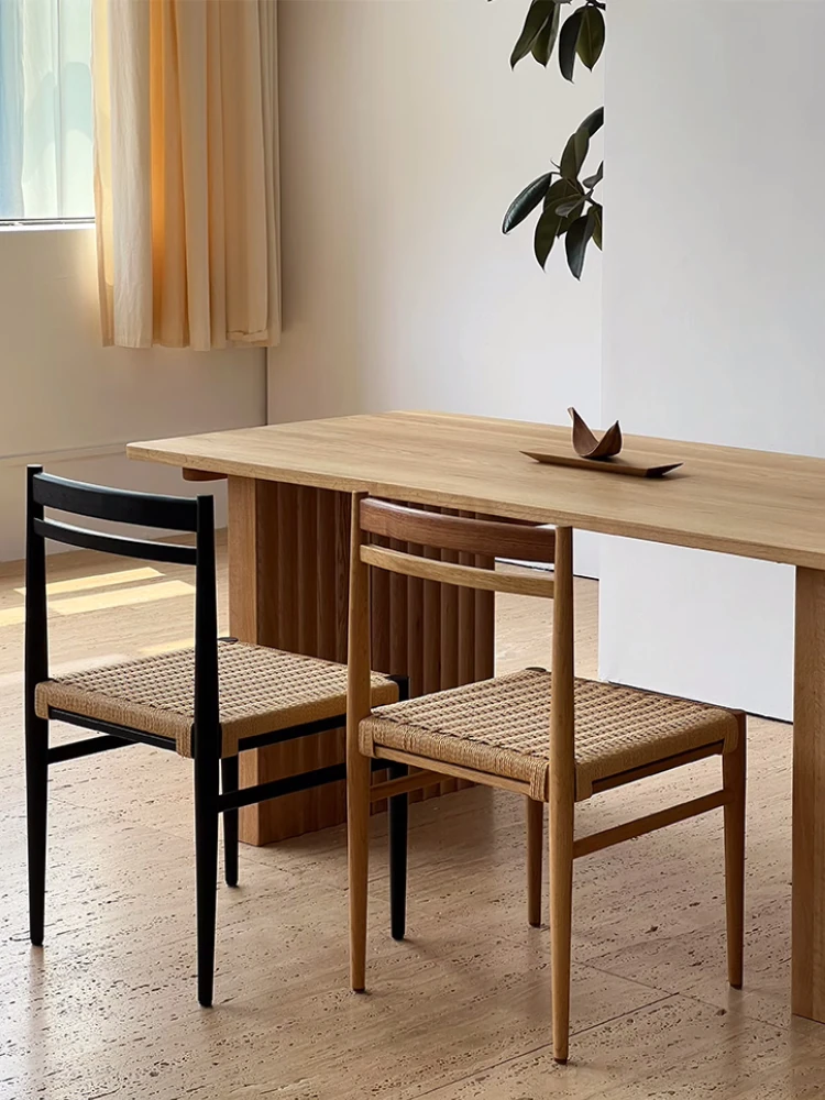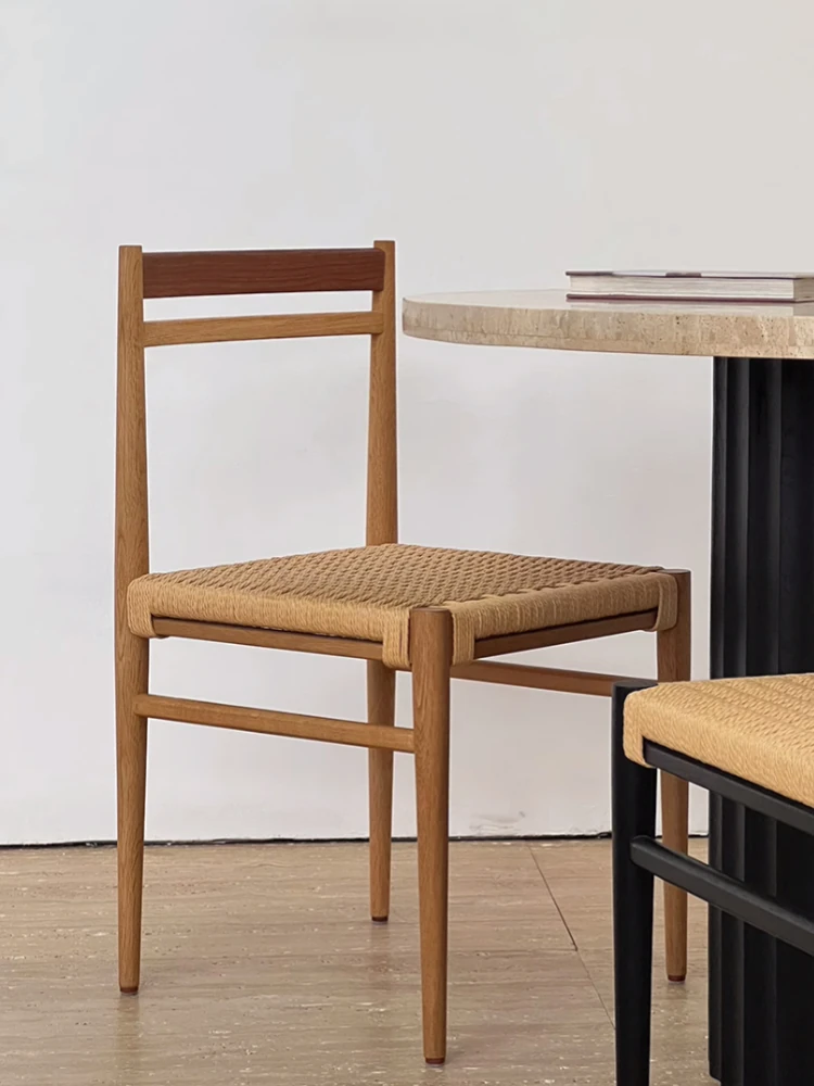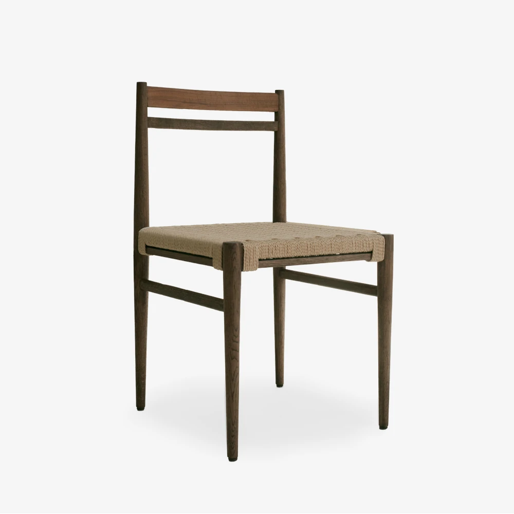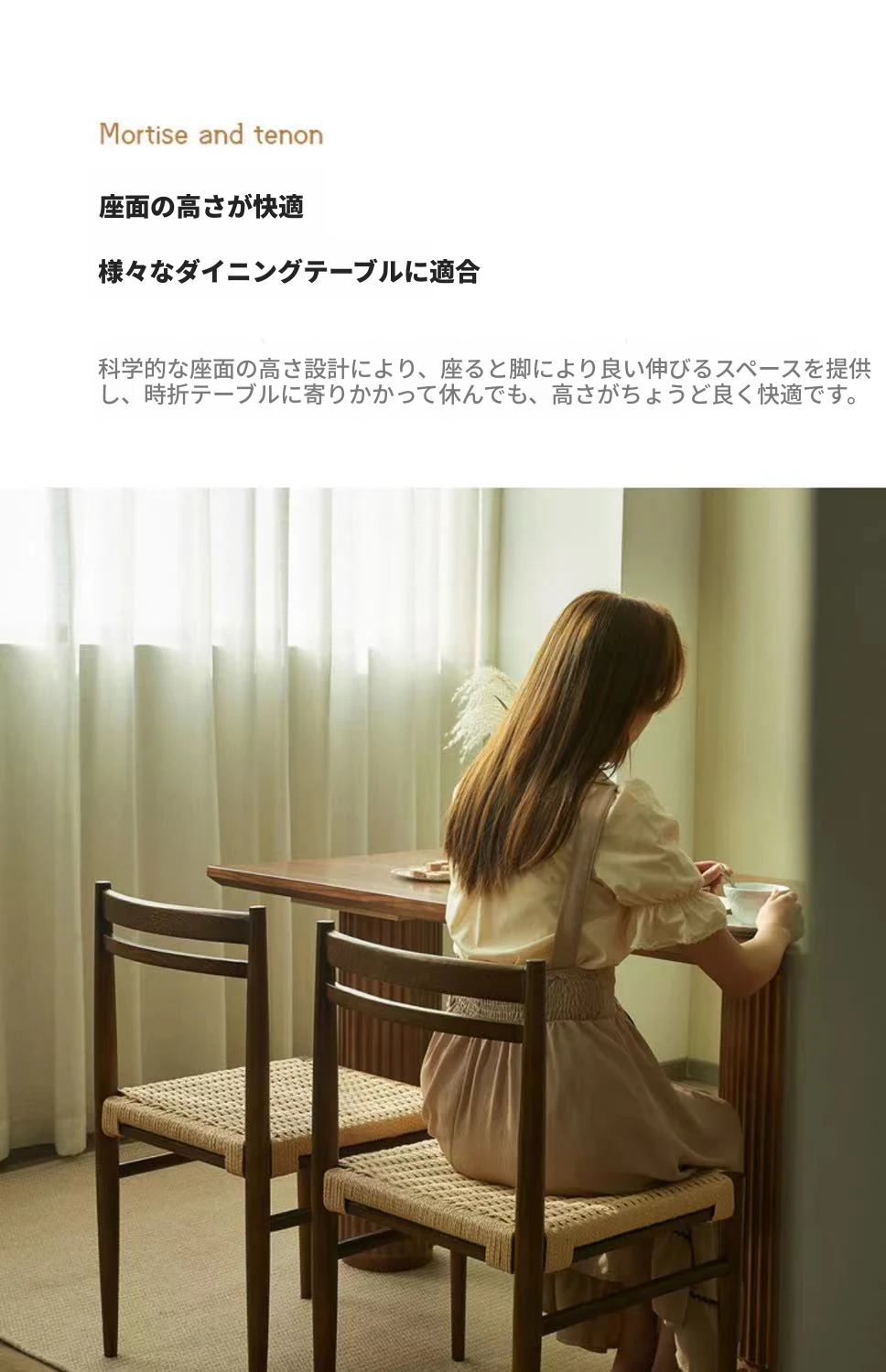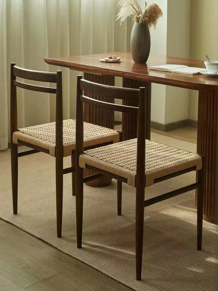 北欧スタイルのモダンでシンプルなロープ編みスツール - 無垢材使用、侘寂の美を感じる屋外用ダイニングチェア。洗練されたデザインで、心地よいひとときを提供します。