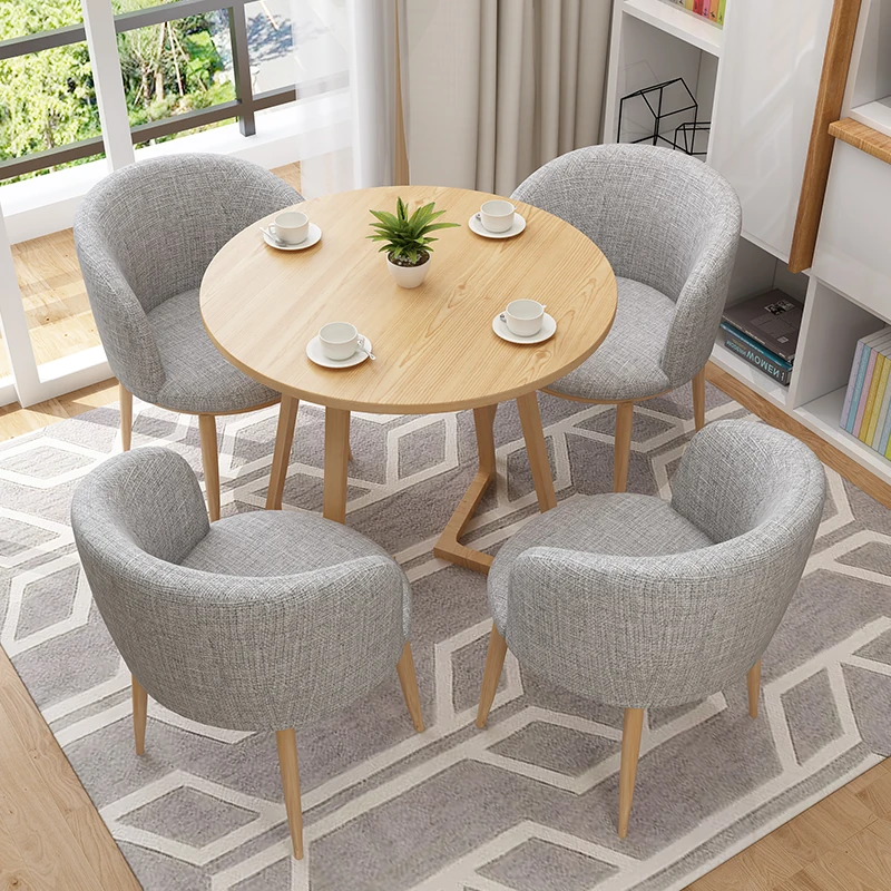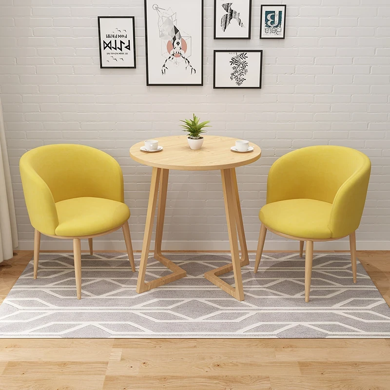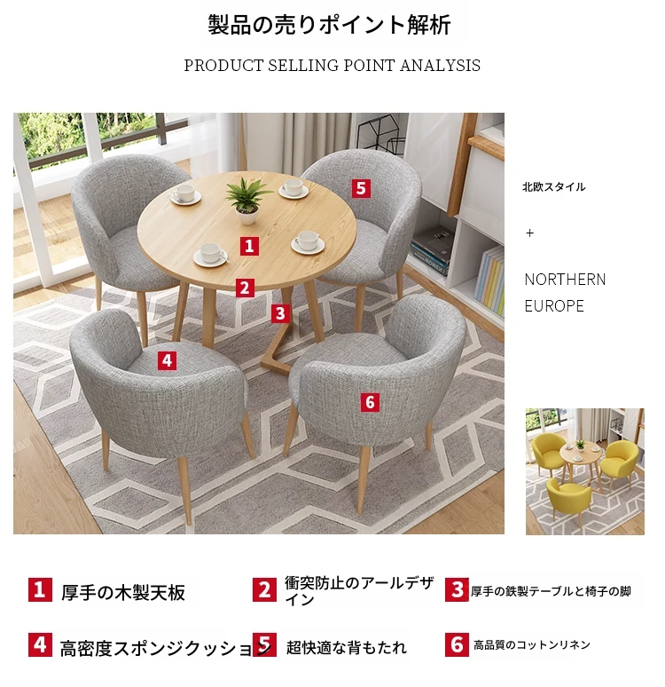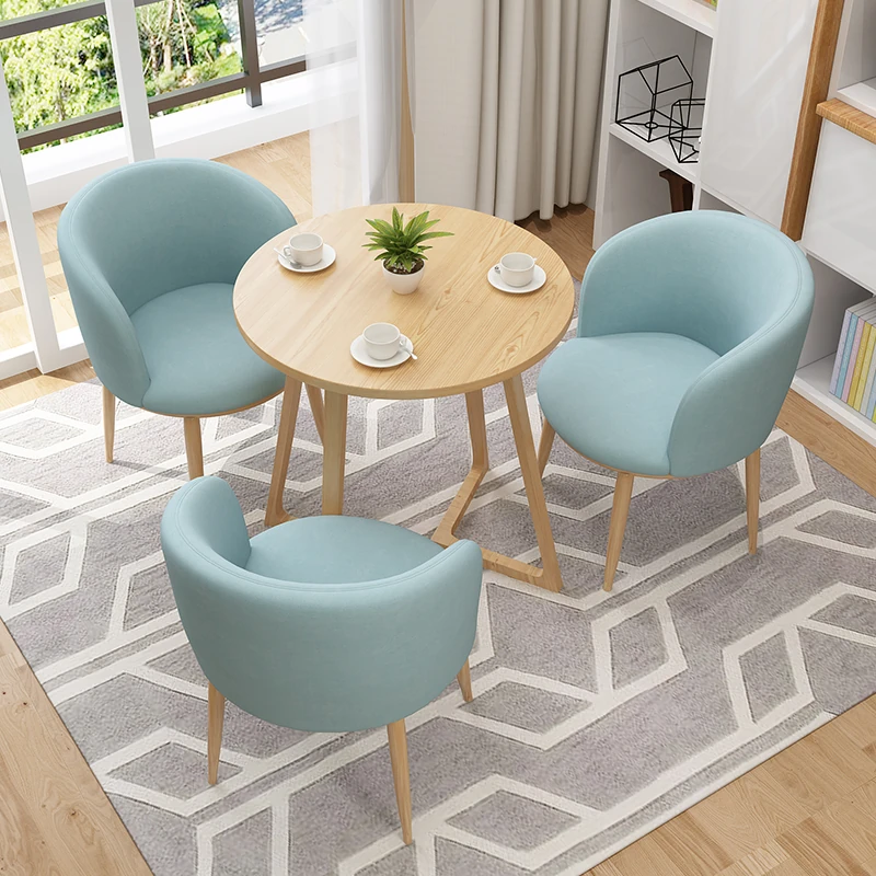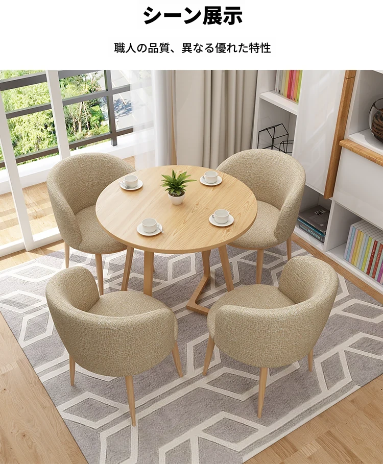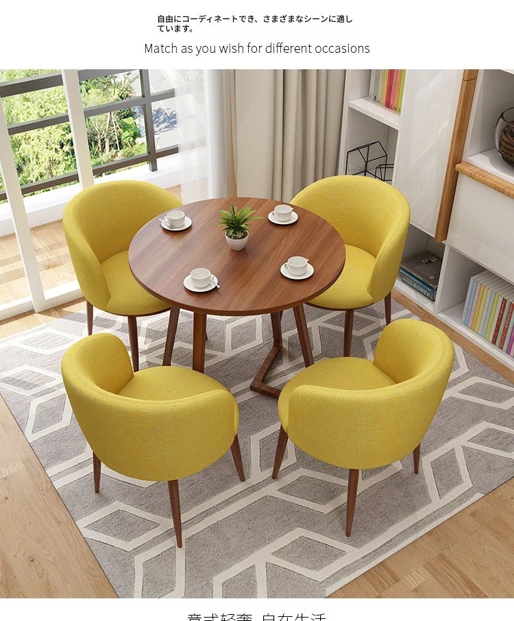 北欧スタイルのシンプルな応接テーブル&チェアセット - 商談やオフィス、カフェに最適!おしゃれな小丸テーブルでくつろぎのひとときを。