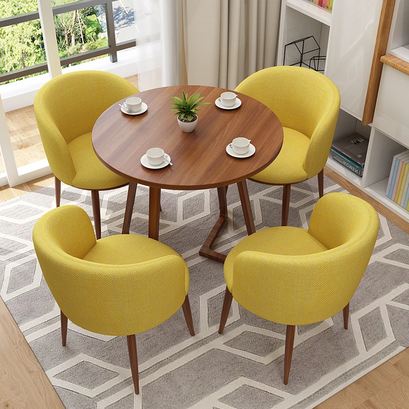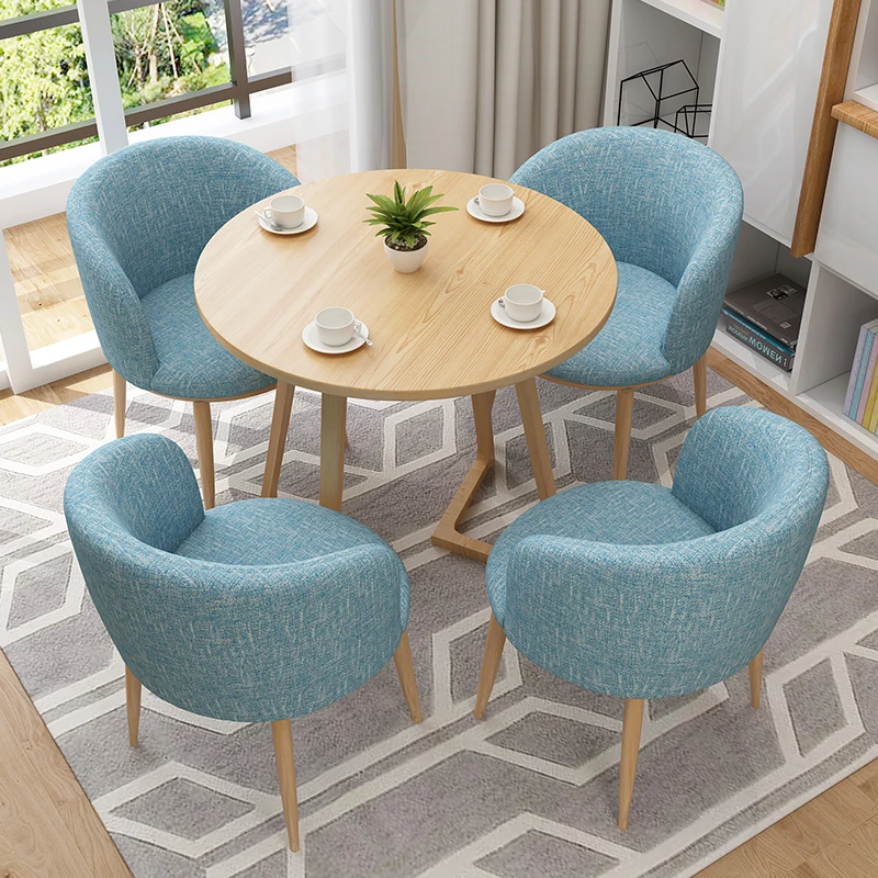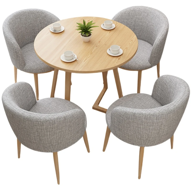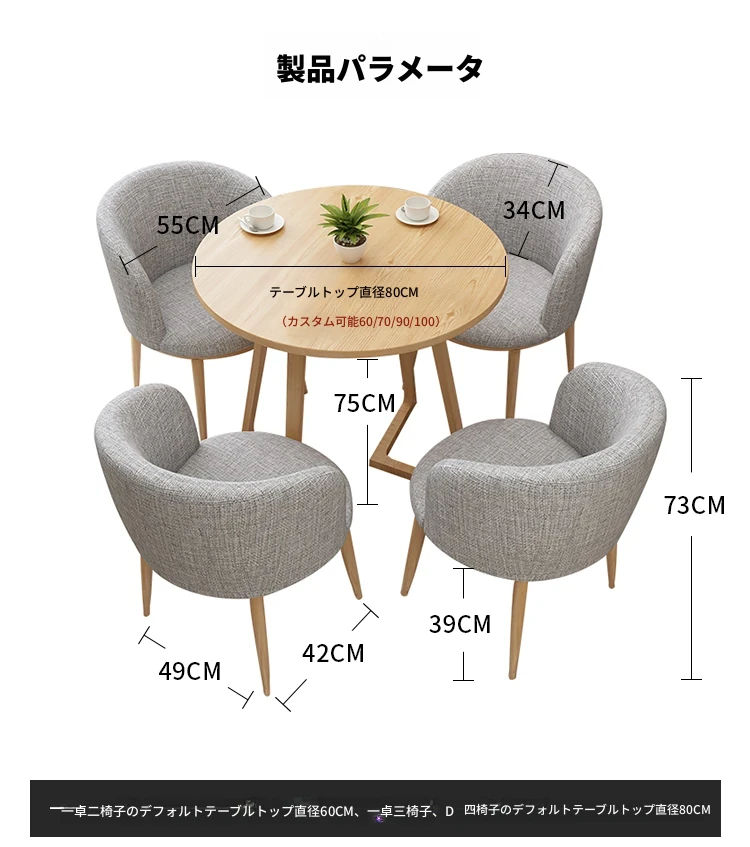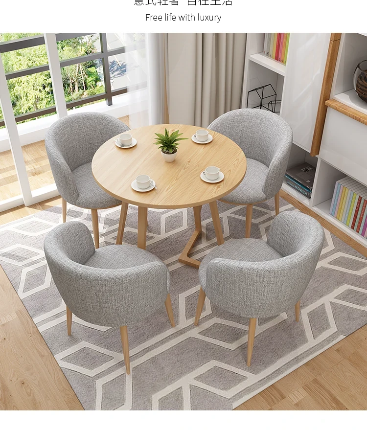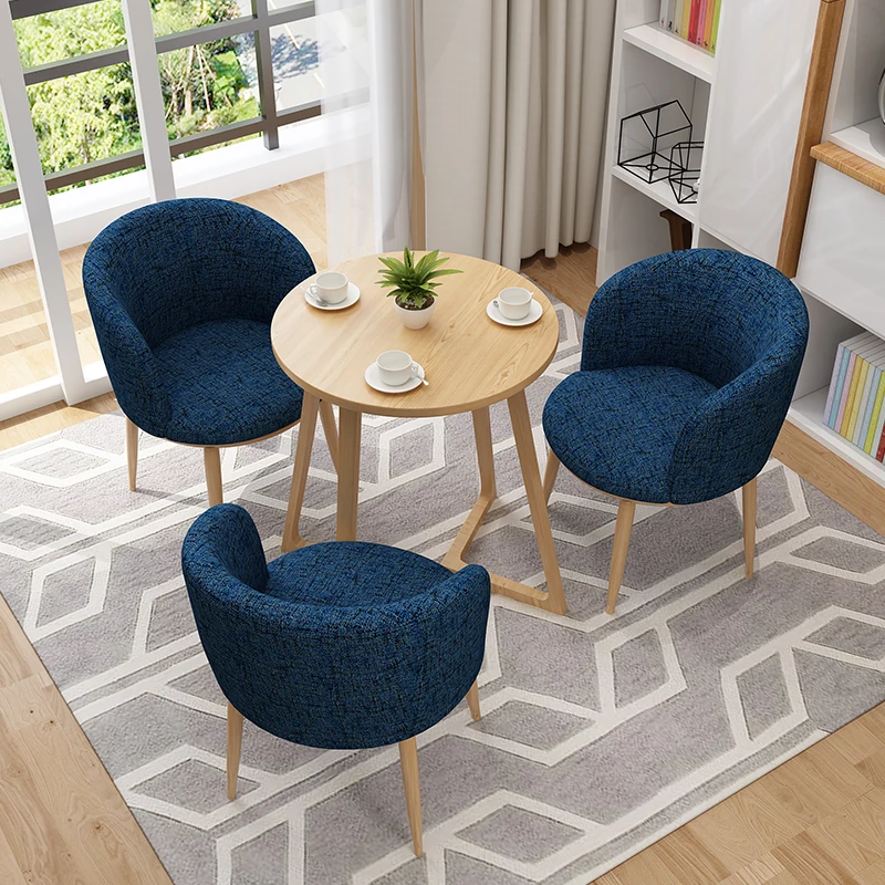 北欧スタイルのシンプルな応接テーブル&チェアセット - 商談やオフィス、カフェに最適!おしゃれな小丸テーブルでくつろぎのひとときを。