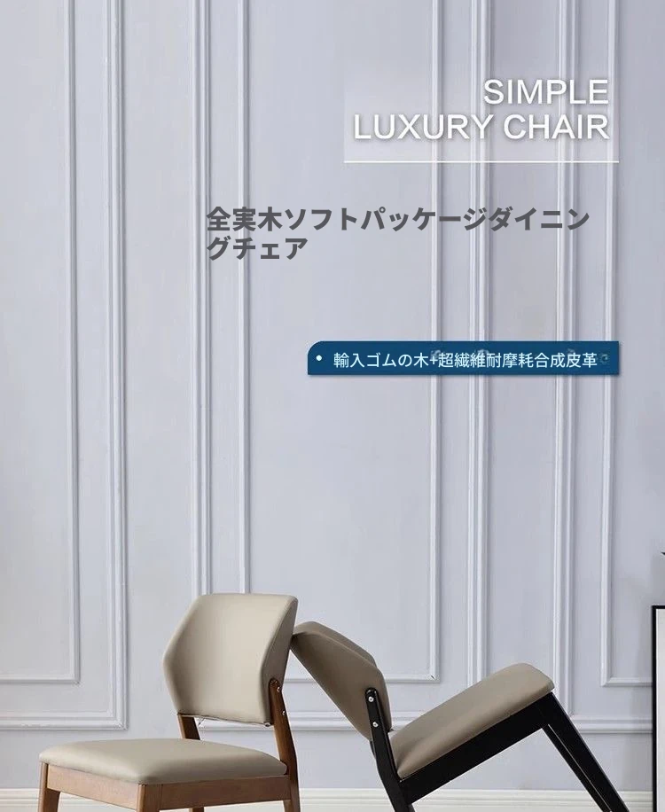 北欧風の無垢材ダイニングチェア|モダンでシンプルなイタリアンラグジュアリー|快適な背もたれ付き|ホテルやレストランにも最適なスタイリッシュな食卓椅子