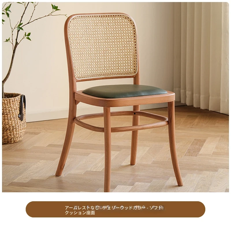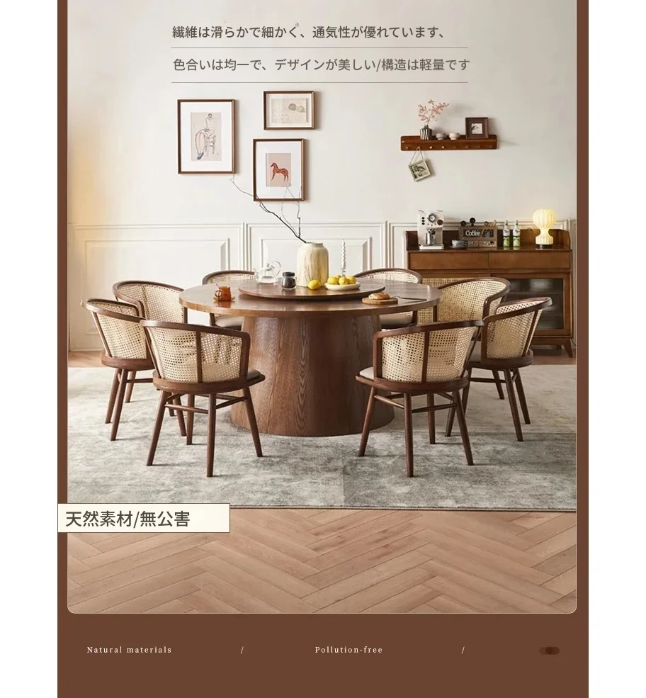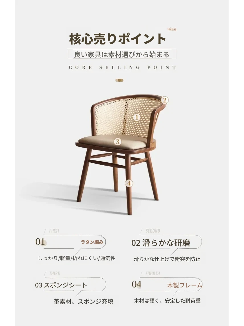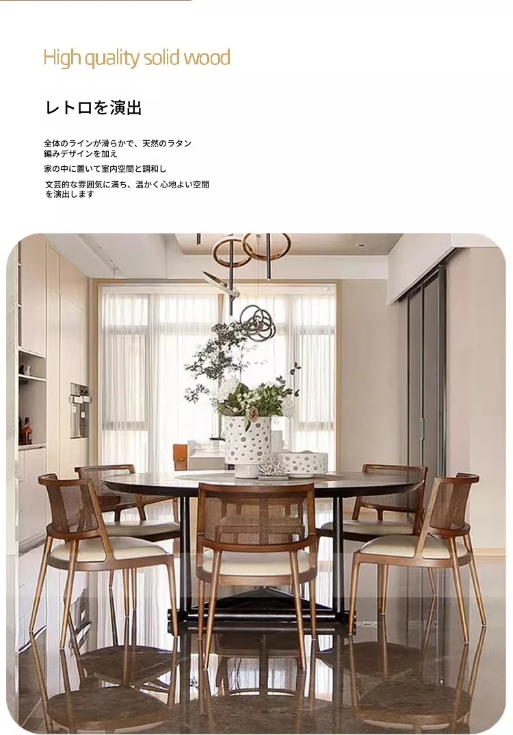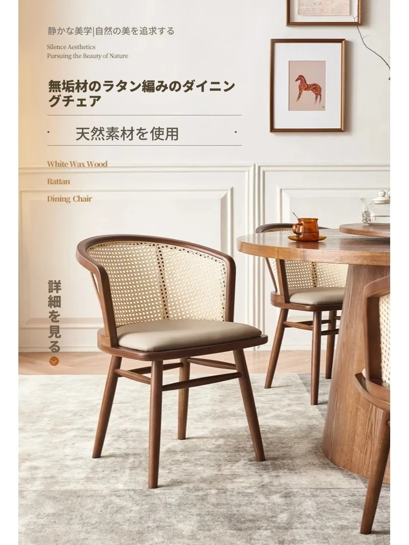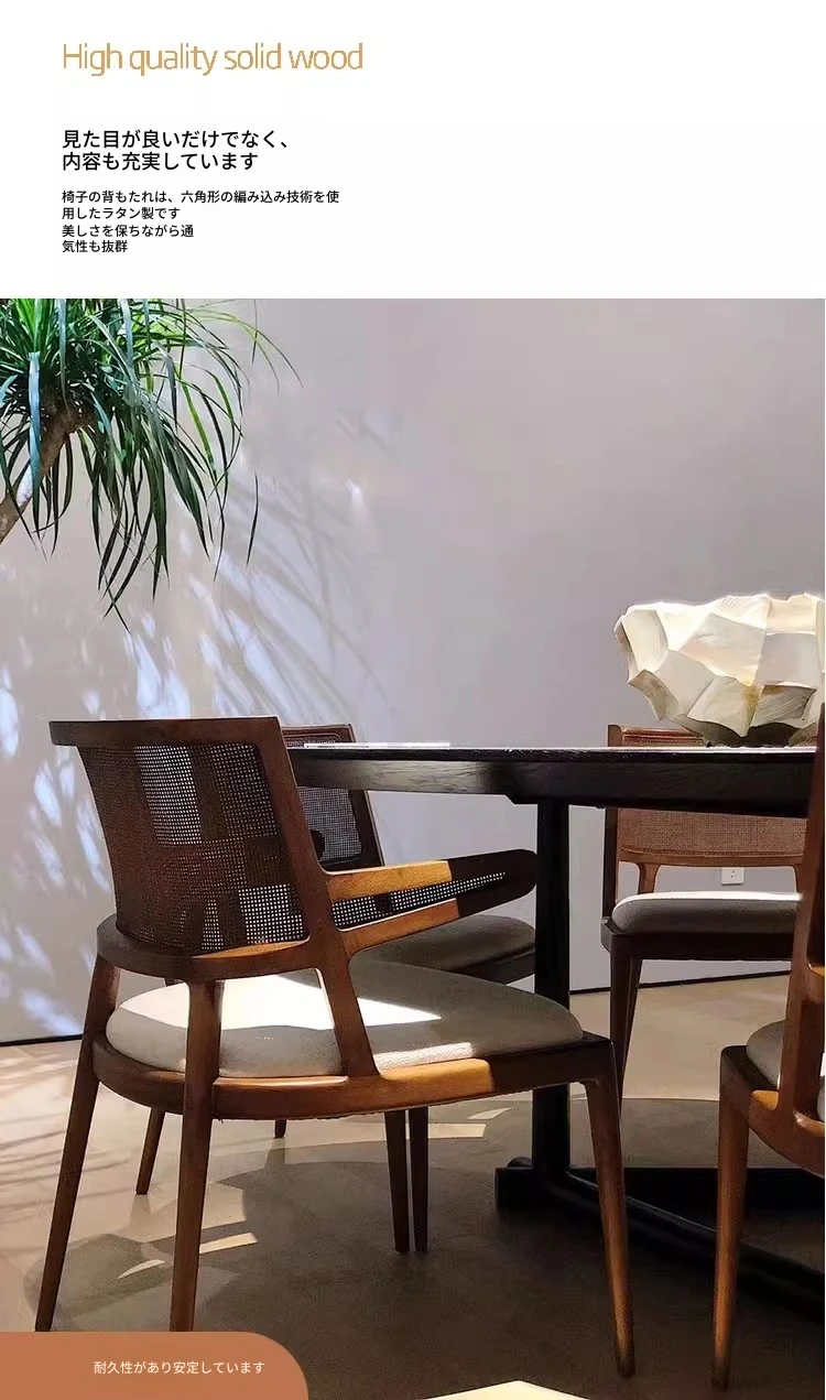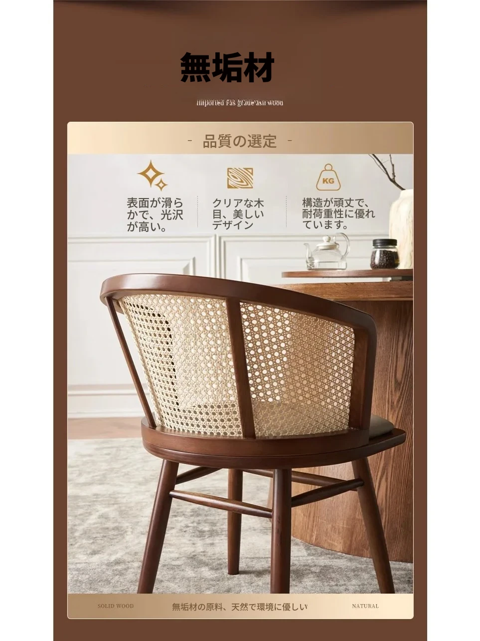 北欧スタイルの無垢材ダイニングチェア|和風ラタン椅子|モダンミニマリズム|静かな魅力のホテル・民宿向け|レトロデザインのレストラン用デザイナーチェア