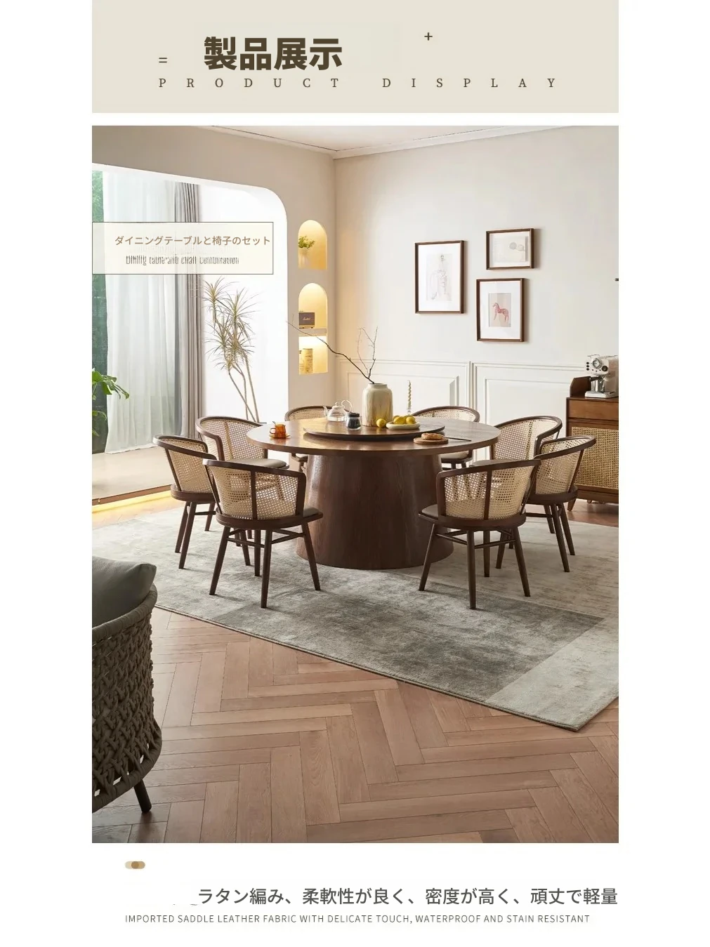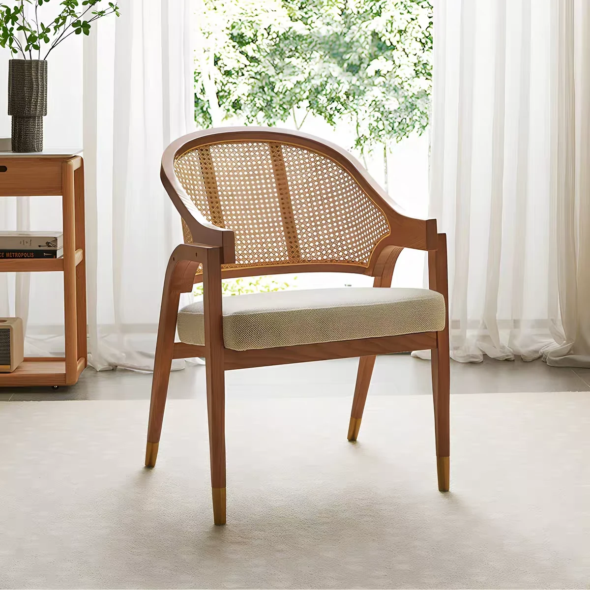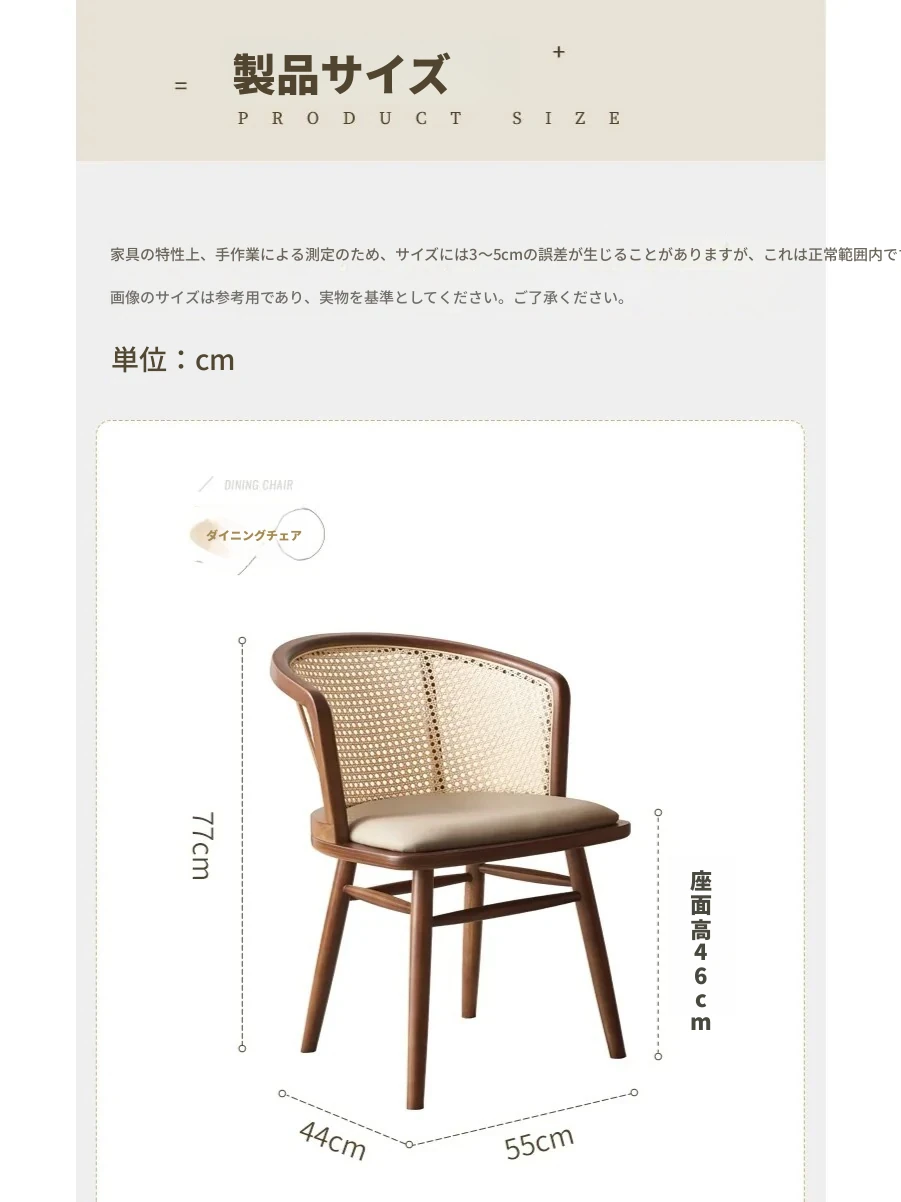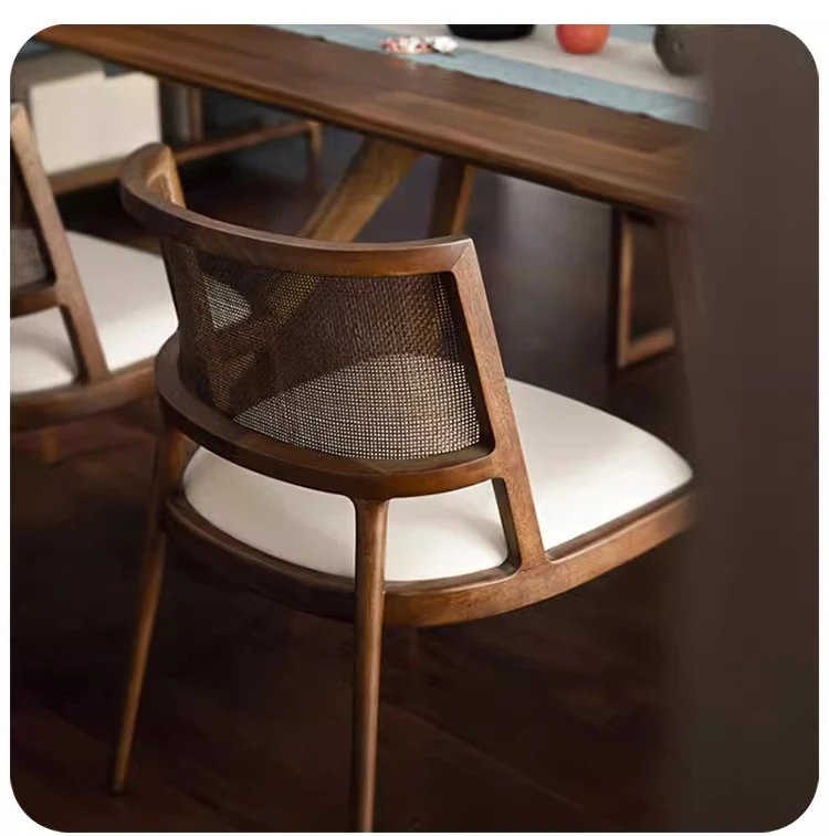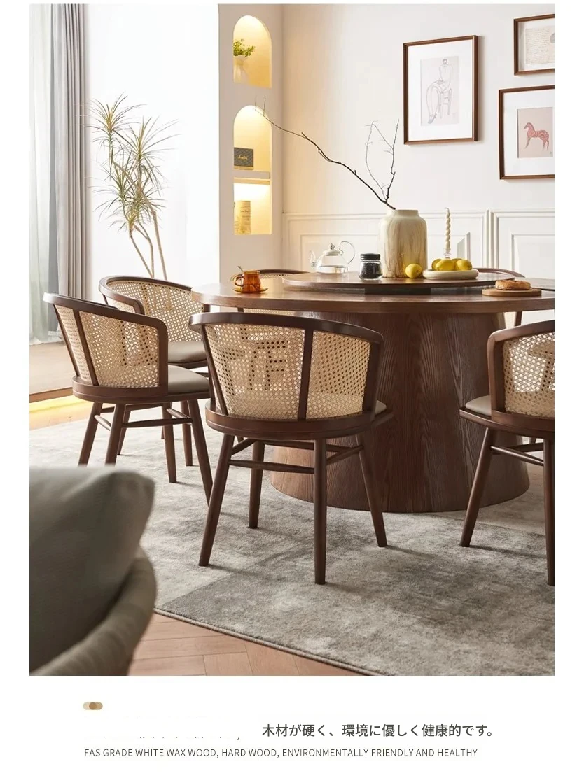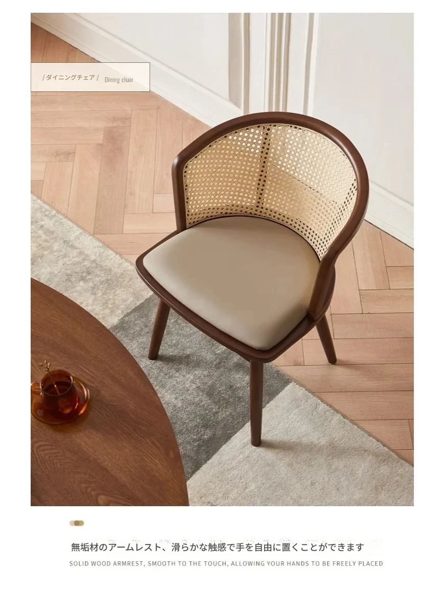 北欧スタイルの無垢材ダイニングチェア|和風ラタン椅子|モダンミニマリズム|静かな魅力のホテル・民宿向け|レトロデザインのレストラン用デザイナーチェア
