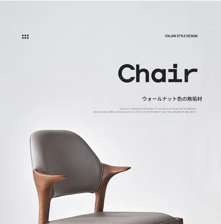 aoeZI 北欧スタイルの無垢材ダイニングチェア|現代的でシンプルなウォールナット色|高級感あふれるデザイナー本革チェア|ミニマルな美しさを追求した一品!