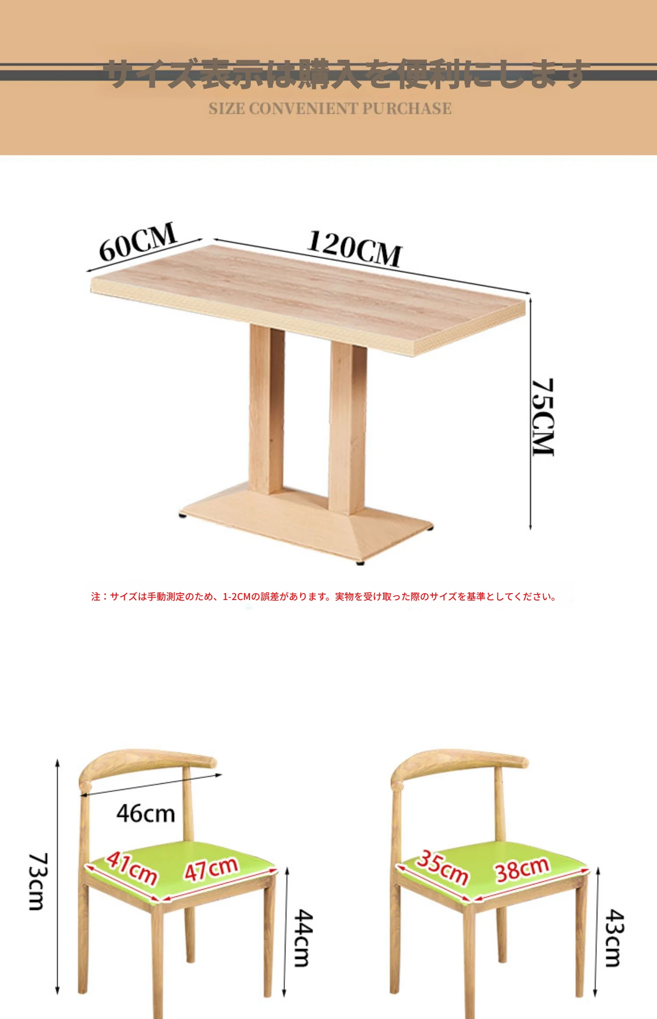 ナチュラルカラー120*60T4脚