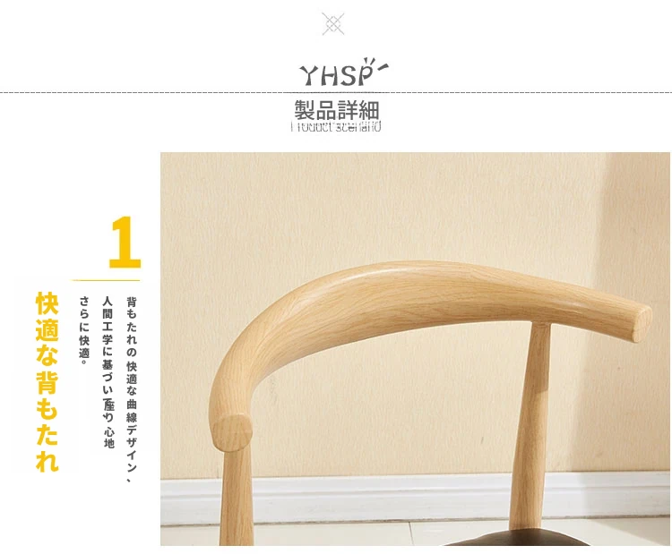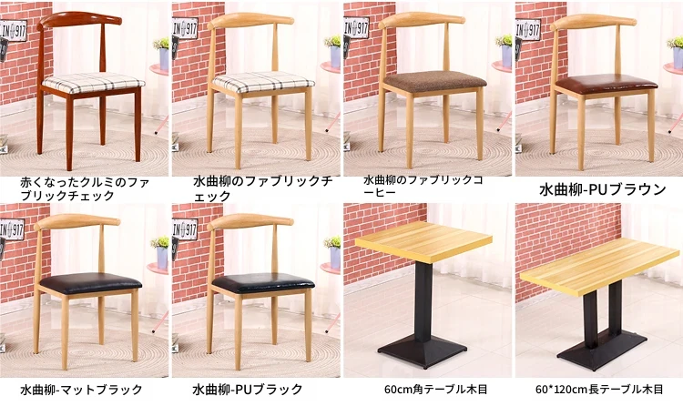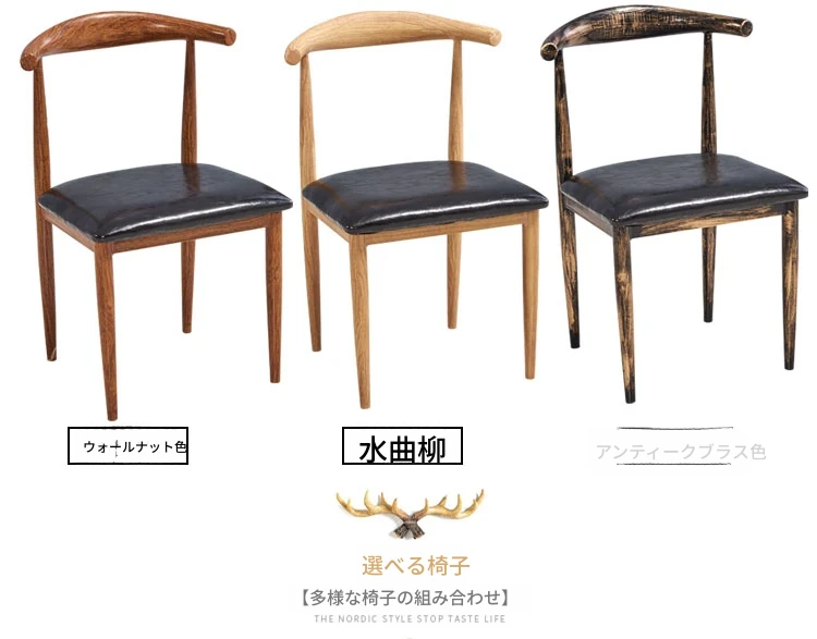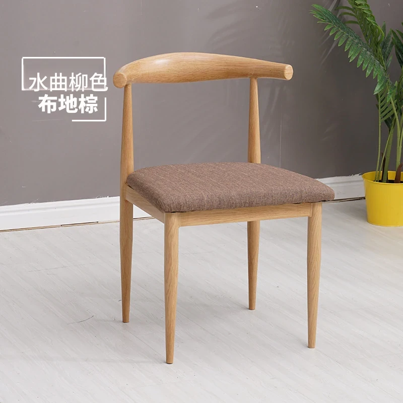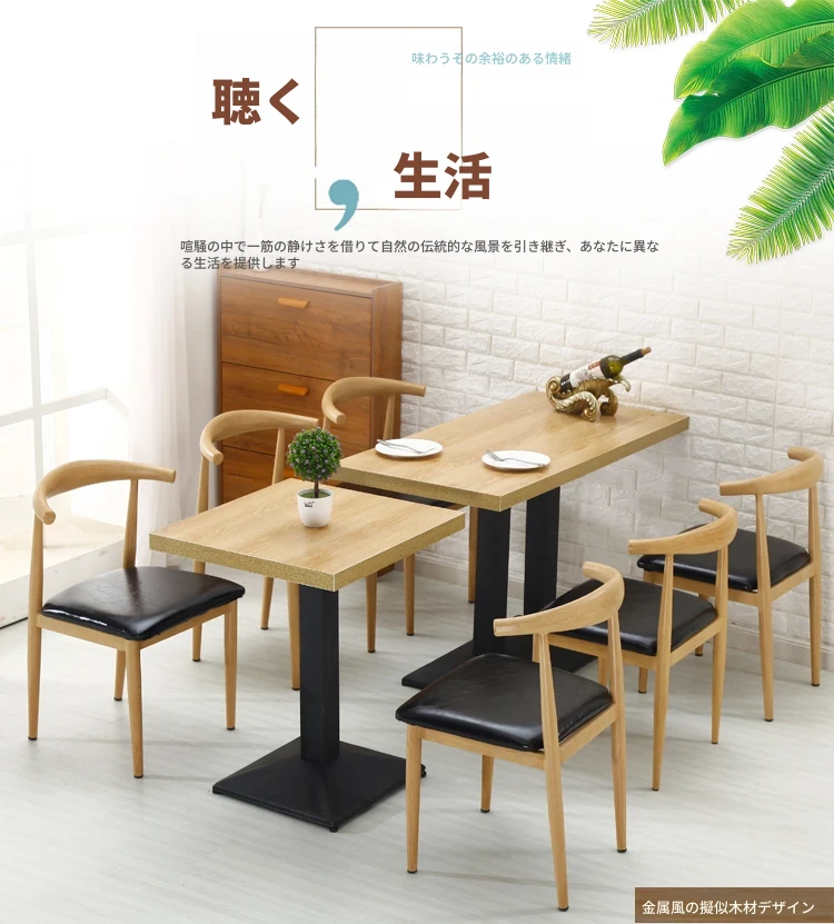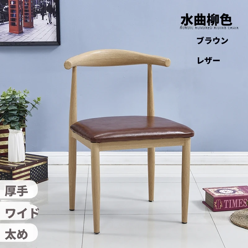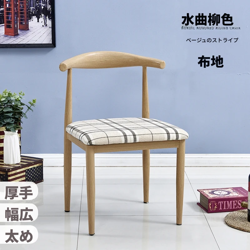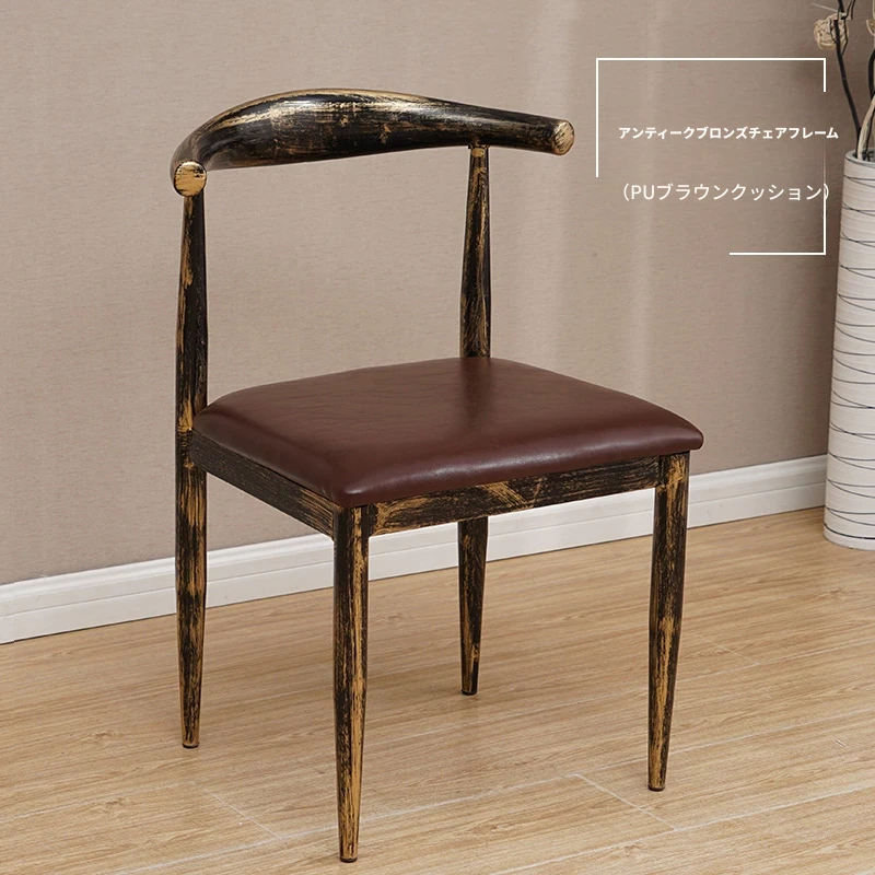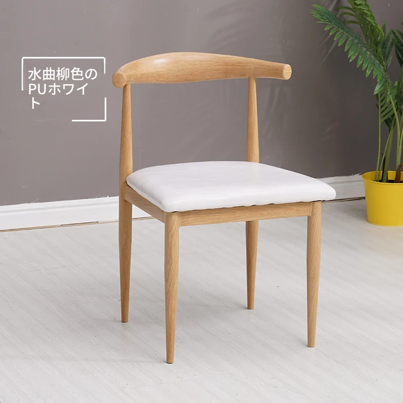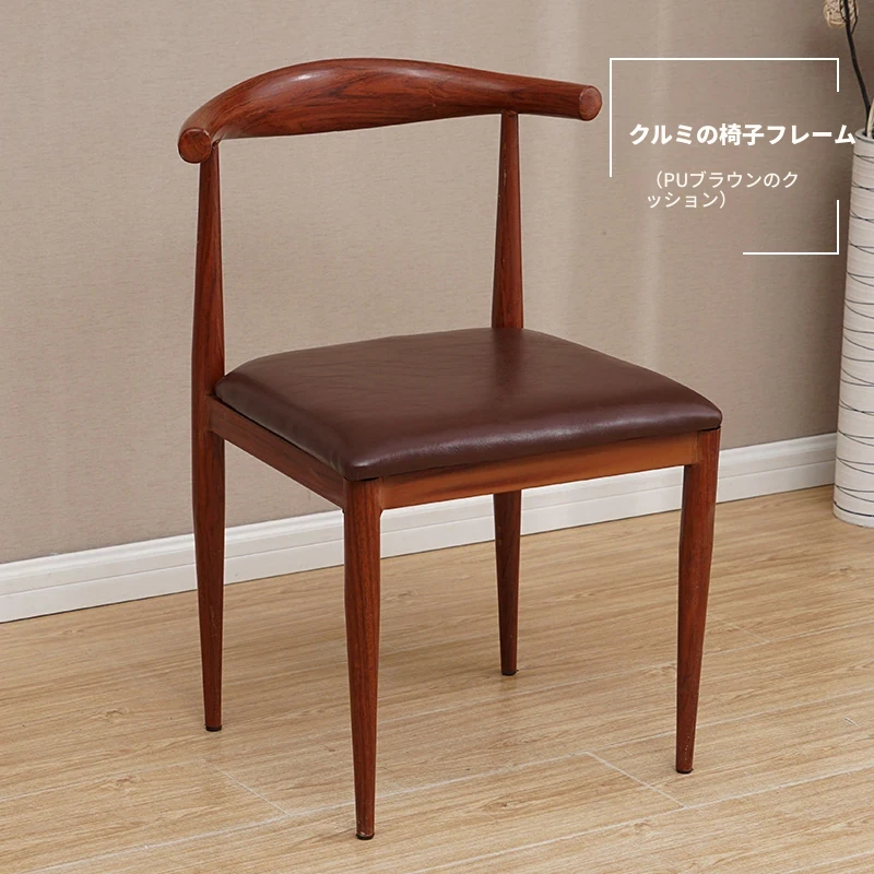シンプルでスタイリッシュな牛角チェア - 家庭用ダイニングチェア、北欧風のデザインで、実木風の仕上げ。人気のアイアン製で、あなたのダイニングルームをおしゃれに演出します!
