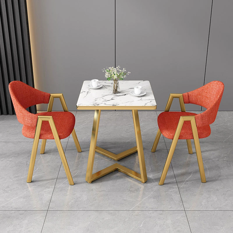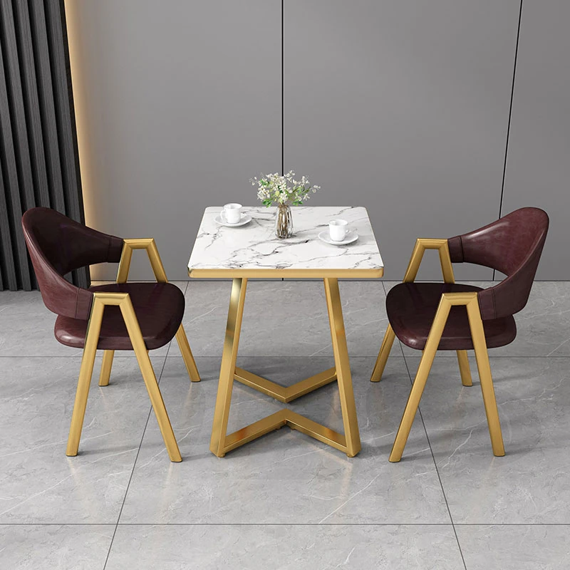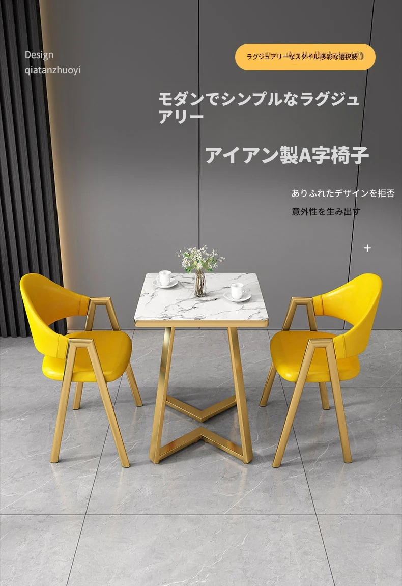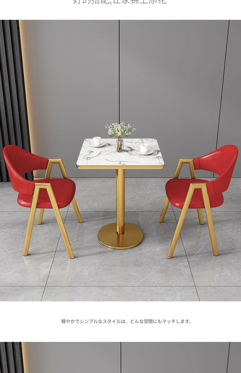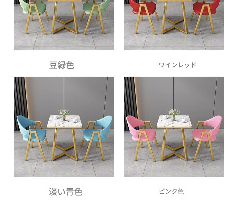深カーキ色 ピンク色60角テーブル+2皮椅子
