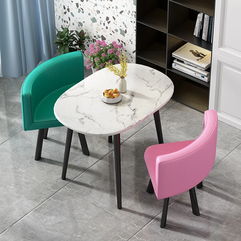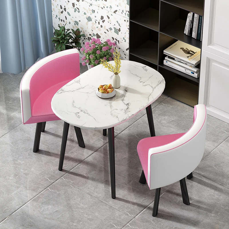 ロイヤルブルー 青ピンク皮椅 一卓二椅