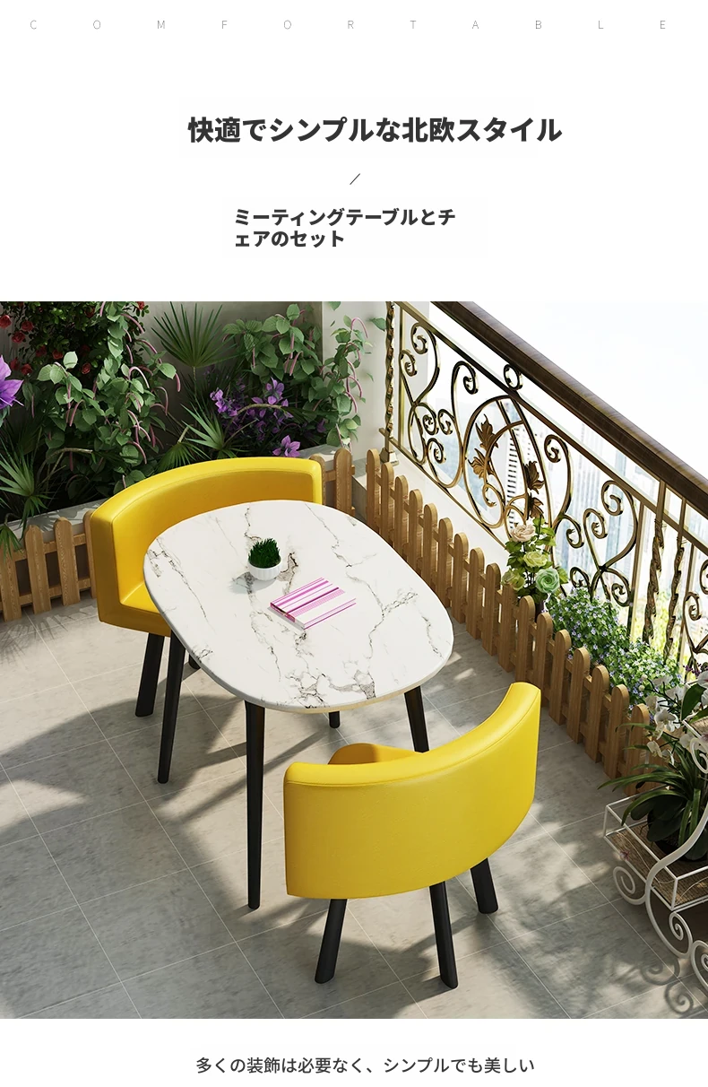 北欧スタイルのテーブル&チェアセット|小型バルコニーやリビングに最適!おしゃれで快適な商談スペースや休憩エリアを演出します。テーブル1つとチェア2つのセットで、コンパクトながらもスタイリッシュな空間を実現!