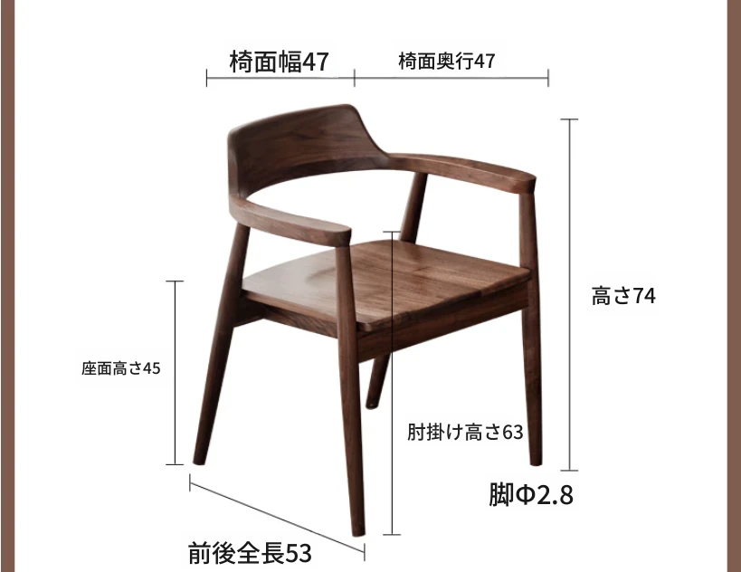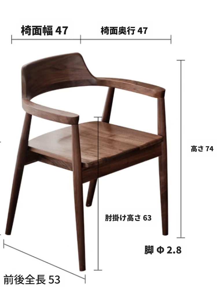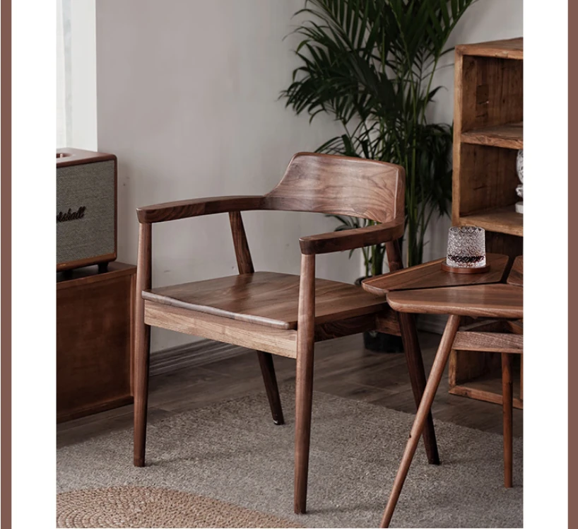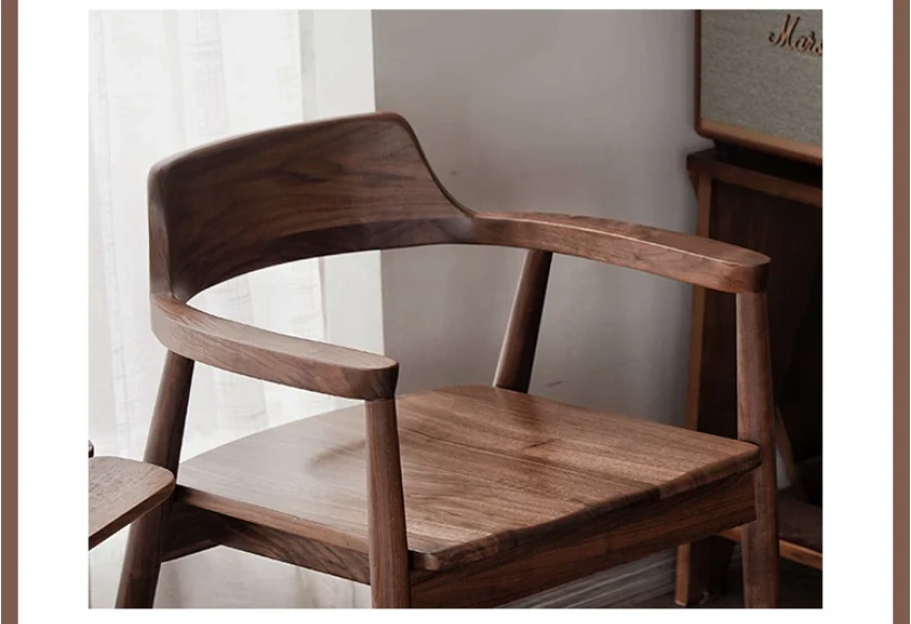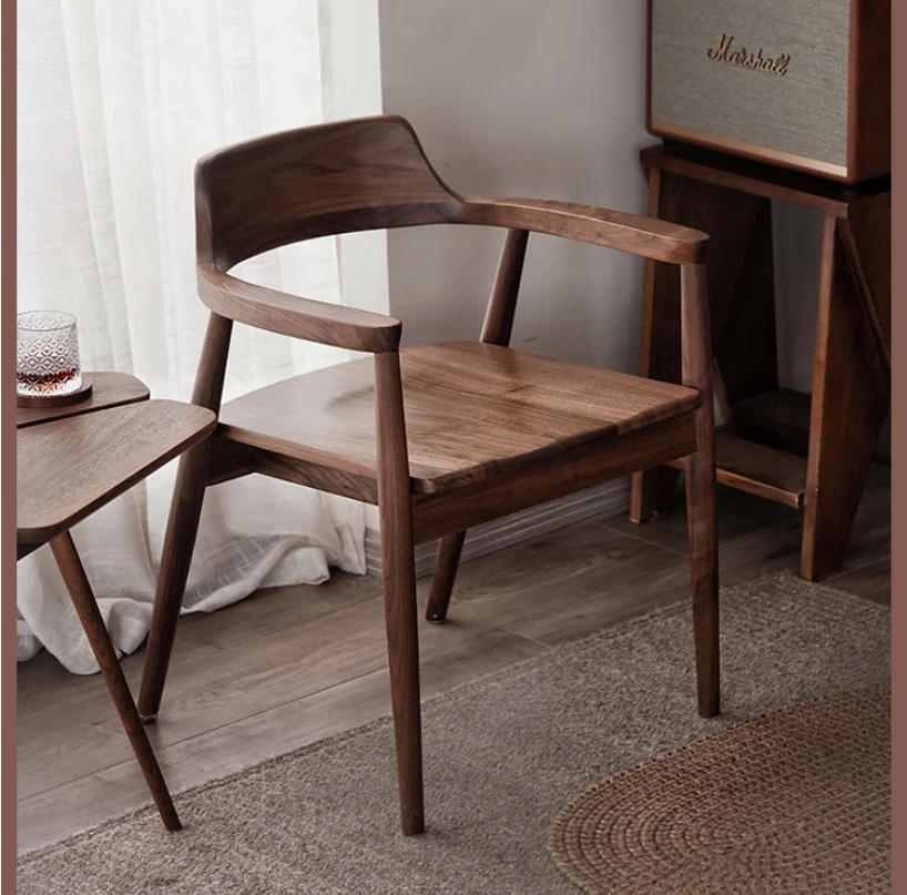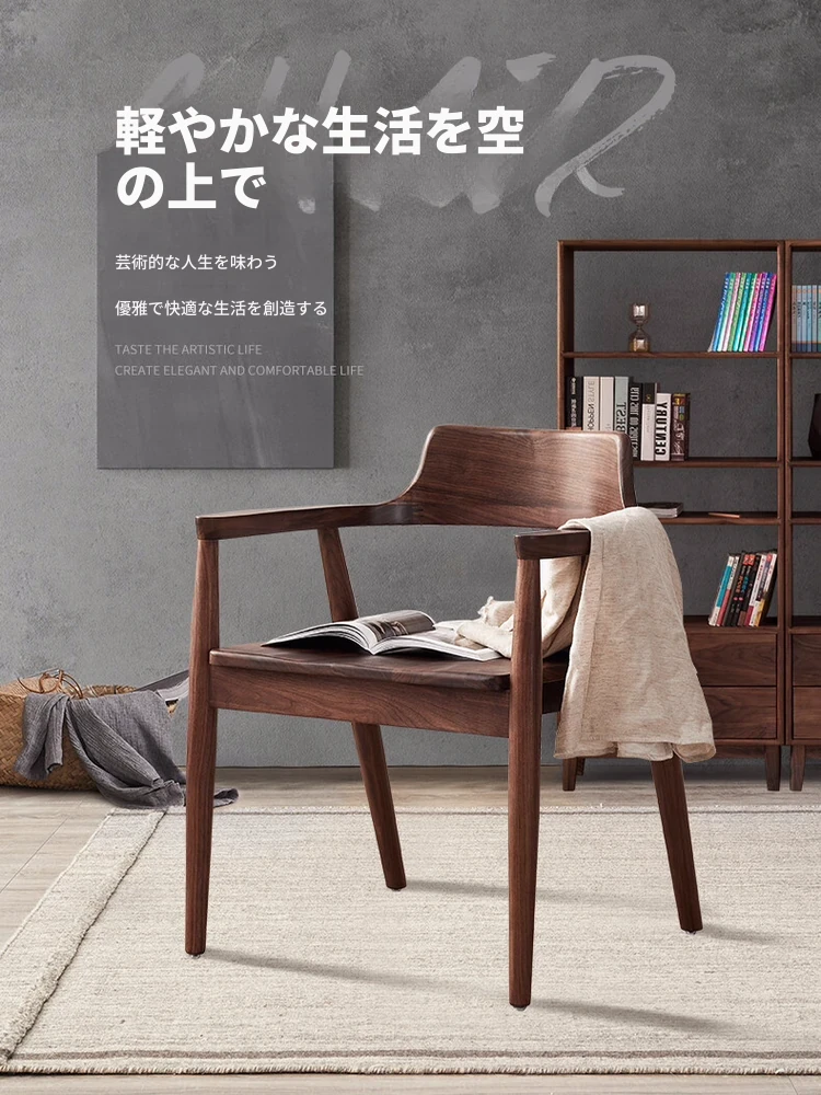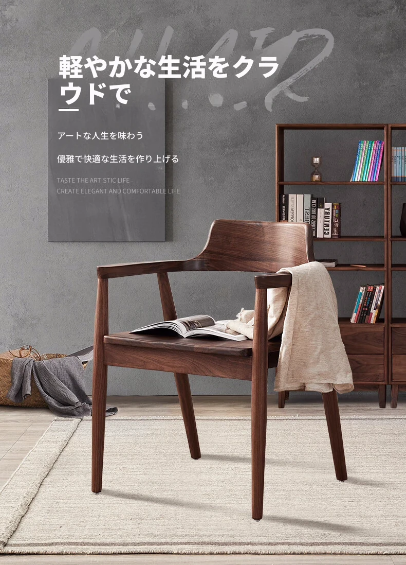 北米産ブラックウォールナットの広島チェア|高級感あふれる無垢材製|背もたれ&アームレスト付き|リラックスできるダイニング・オフィス・寝室に最適な中華スタイルの椅子