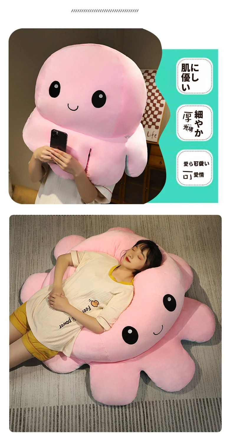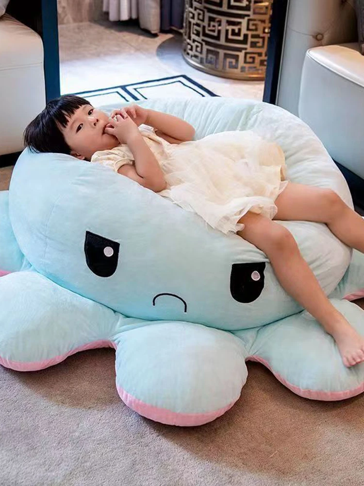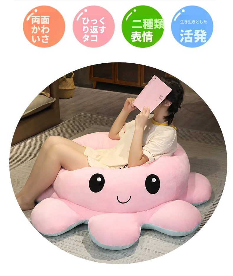 かわいいタコのデザイン!寝転んでも読書でも楽しめる子供向けのクリエイティブな一人用ソファ。リラックスできる豆袋タイプの畳スタイルで、夢のような快適さを体験しよう!