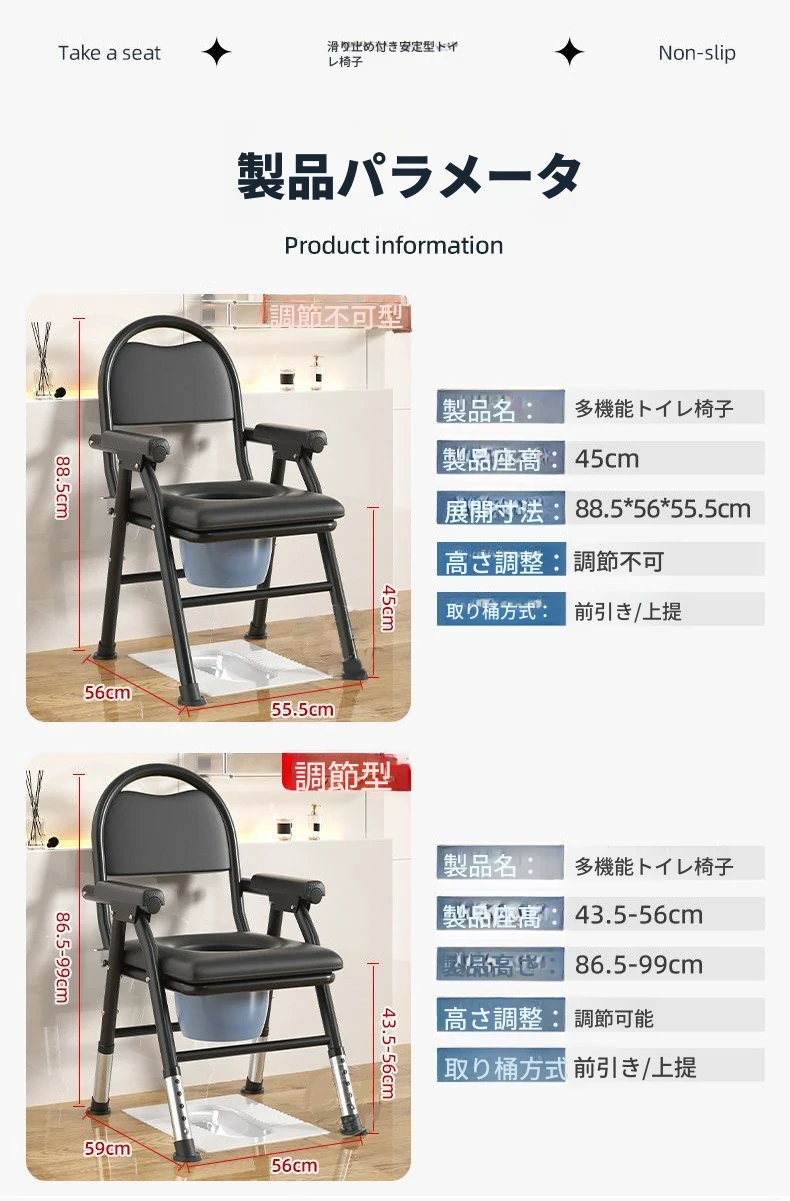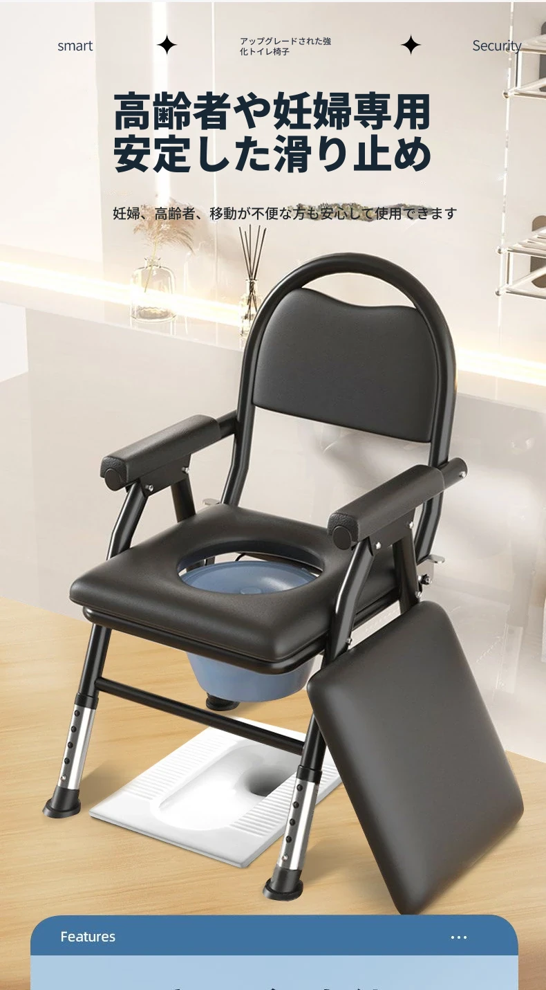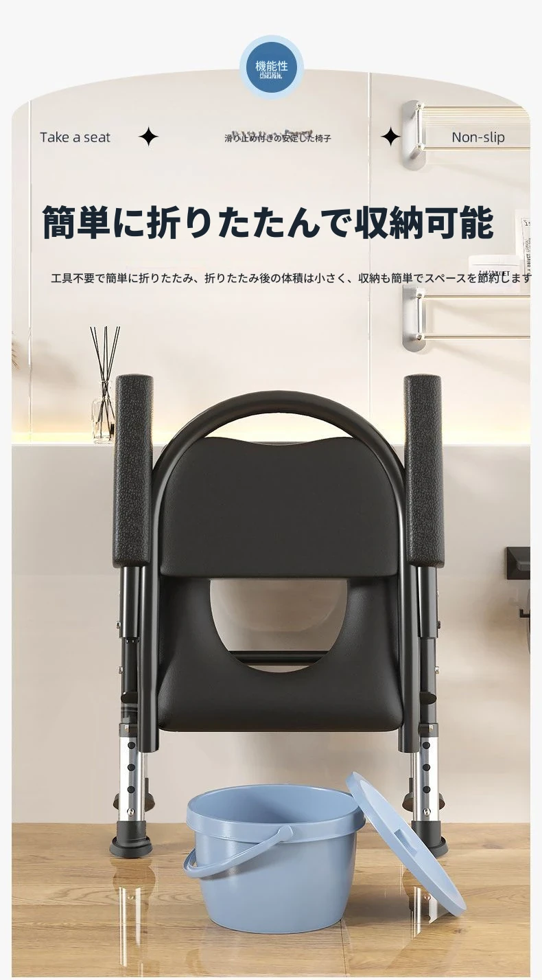 折りたたみ式移動トイレ椅子 - 高齢者や妊婦に最適!使いやすい家庭用トイレ補助具、病人にも安心のサポート。どこでも快適にお使いいただけます!