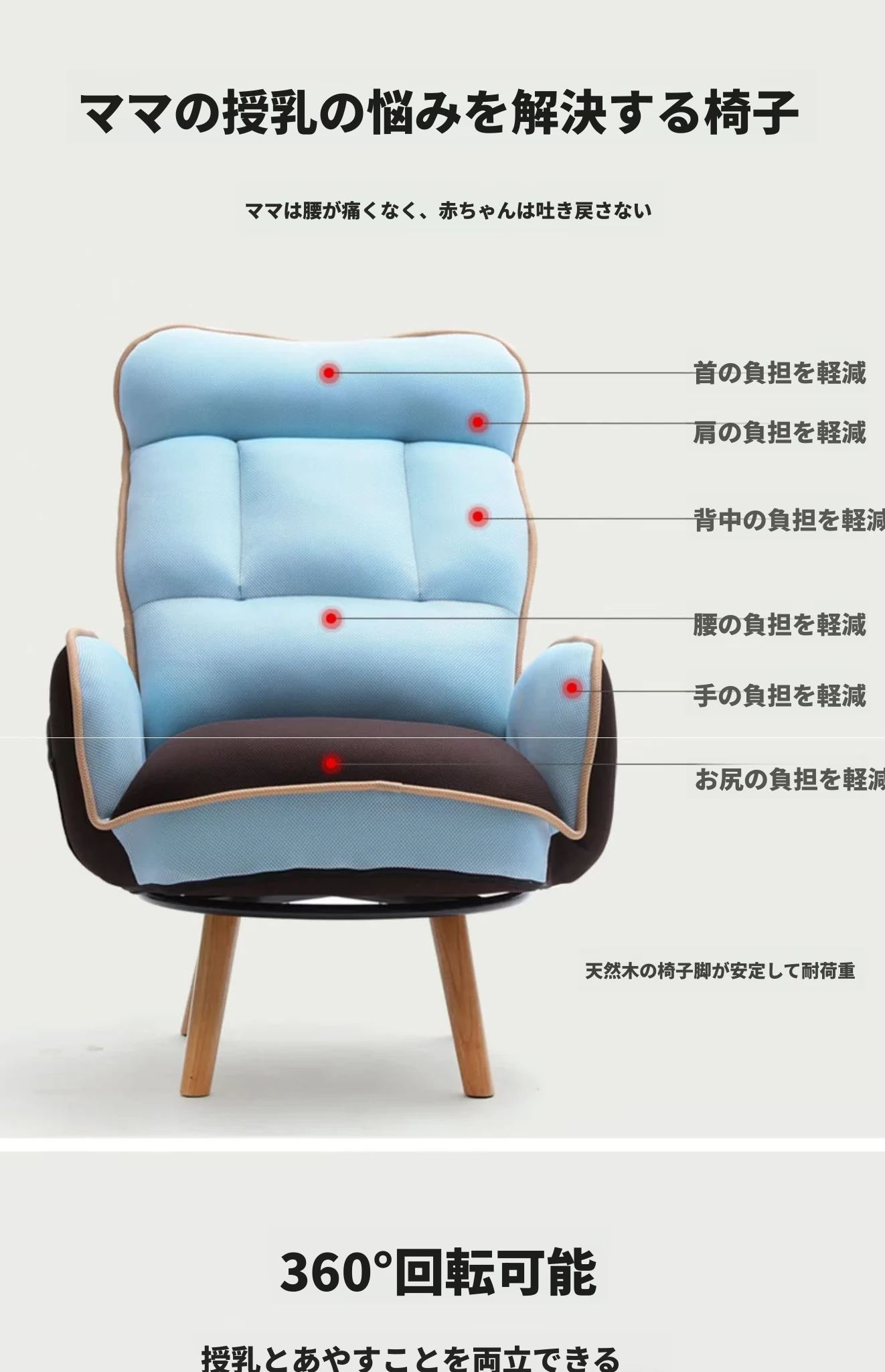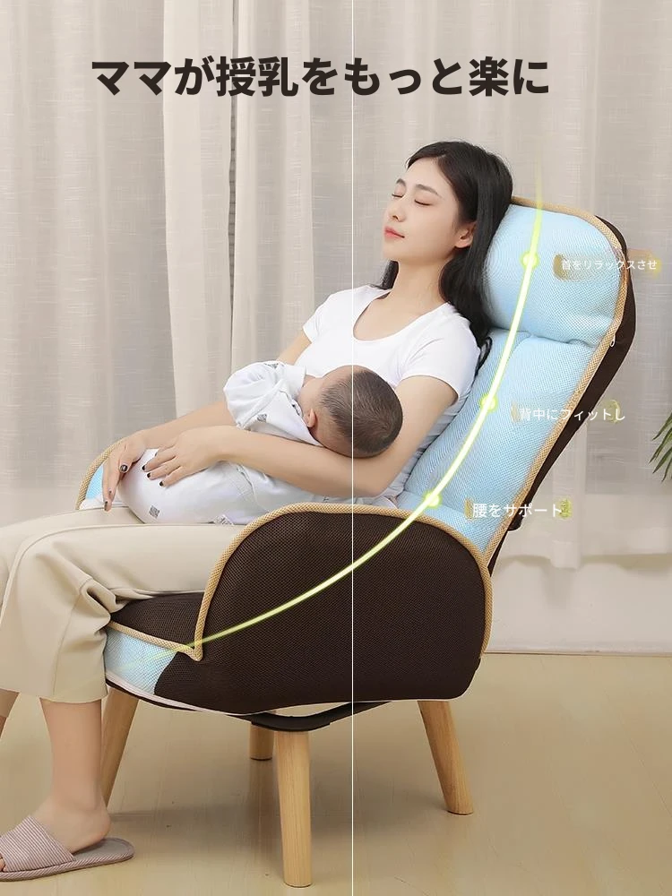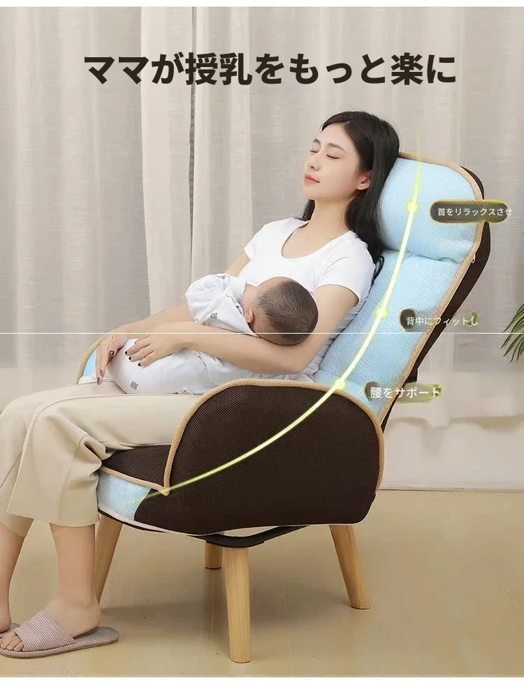 妊婦さんに最適!柔らかい背もたれ付き授乳用チェア - 家庭用リビングにぴったりな木製の快適な椅子。赤ちゃんとの大切な時間をサポートします!