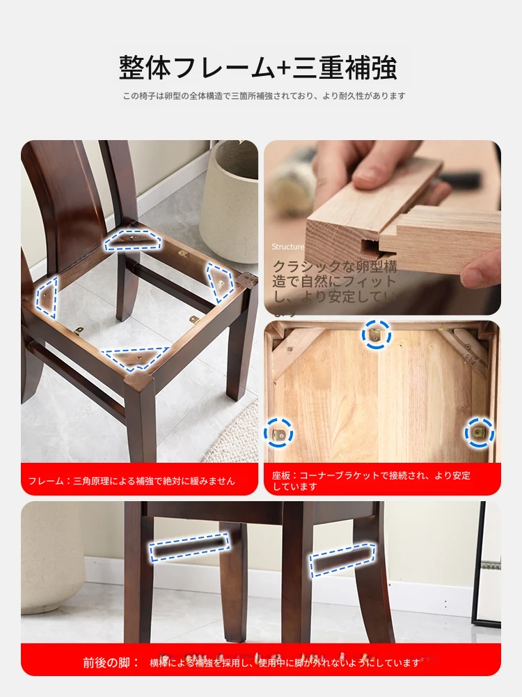 全実木製モダンミニマリストスタイル中華風ウォールナット色ダイニングチェア、榫卯構造で頑丈、快適な背もたれ付き、家庭やレストランに最適な食事用椅子!