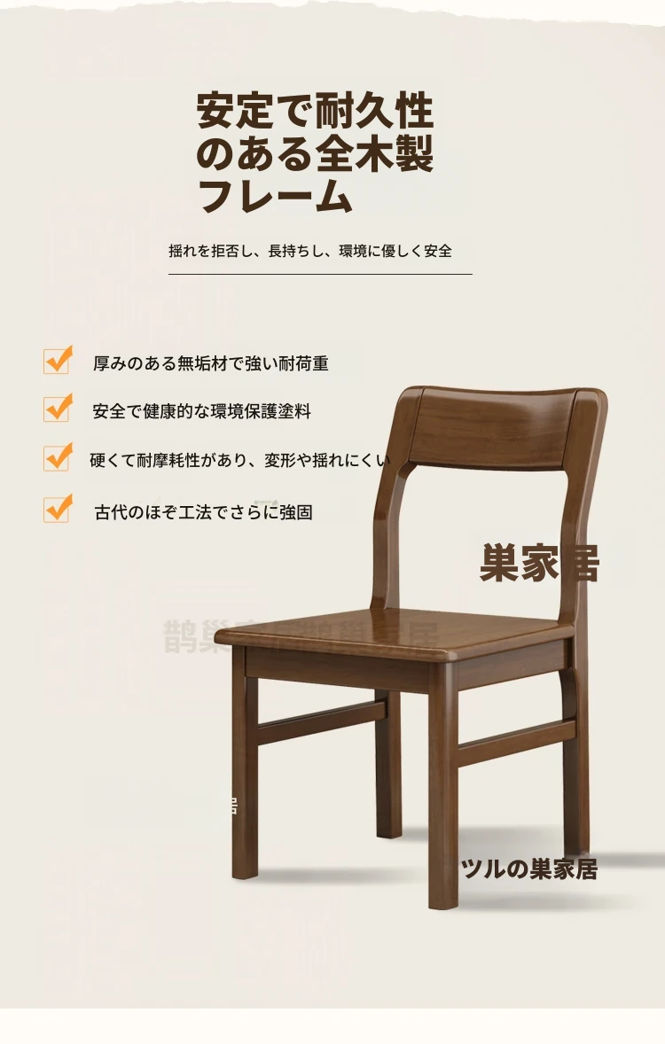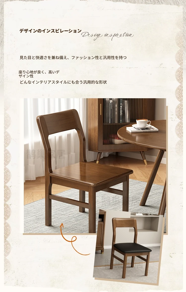 高品質な無垢材のダイニングチェア|家庭用・カフェスタイル|快適な座り心地|デスクチェア・オフィスチェア・リラックス用|背もたれ付き|おしゃれな食卓を演出する、あなたの生活を豊かにする一脚!