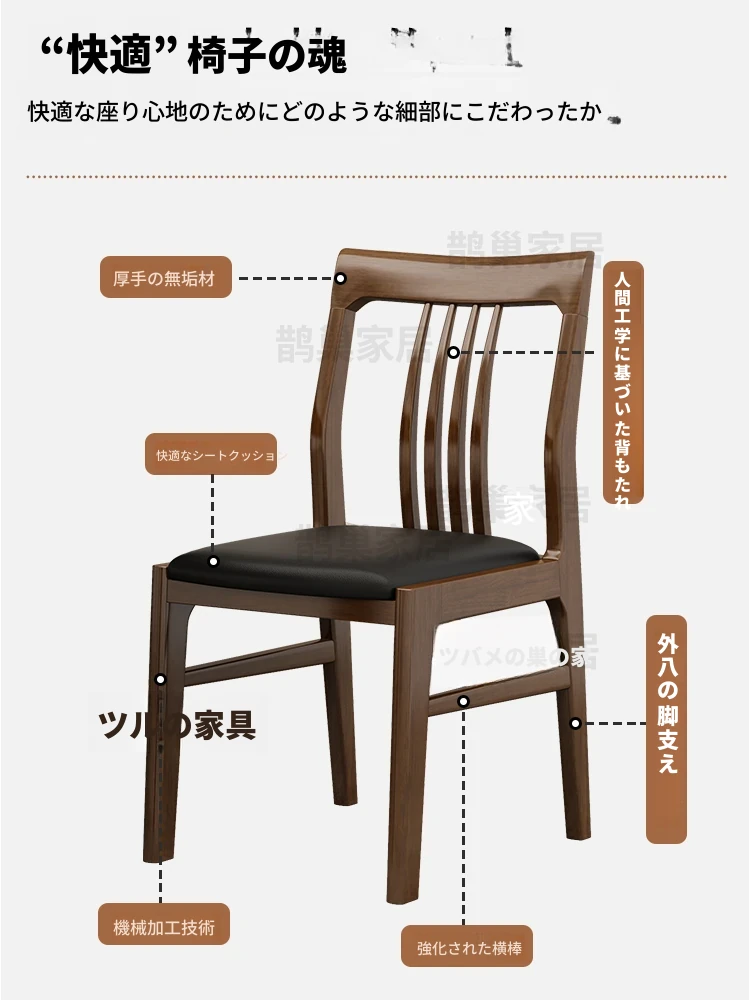 全木製ハイバックダイニングチェア - 家庭用・レストラン・ホテル向け、頑丈な榫接ぎ構造の完成品。快適な座り心地で、食事の時間をより特別なものに。