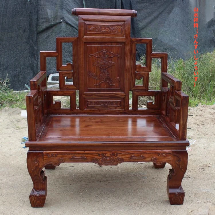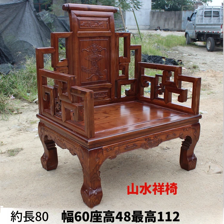 高級感溢れる無垢材の龍椅子 - ユリの木製禅椅子、心を落ち着ける中式デザイン。太師椅子スタイルのオフィスチェア、リラックスできる肘掛け付き一人用ソファ。あなたの空間に威厳と安らぎをもたらします!