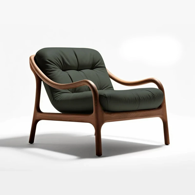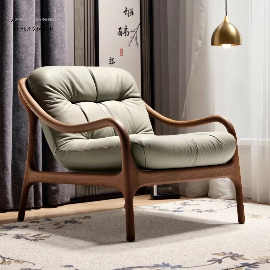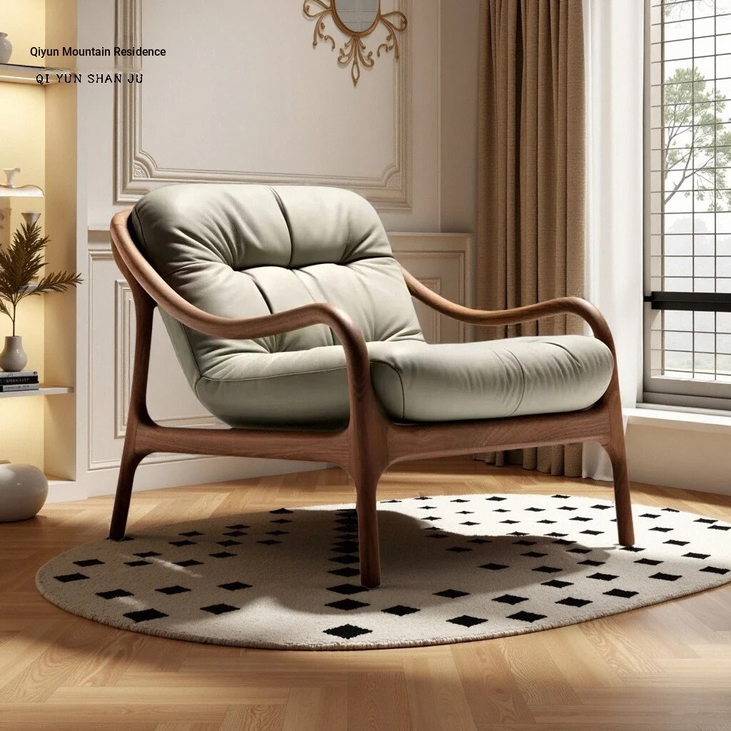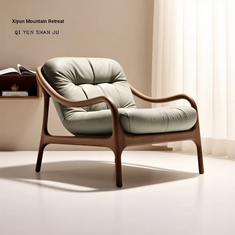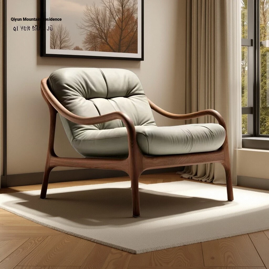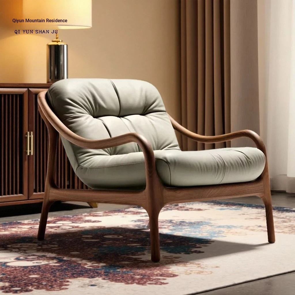 宋氏美学の一人用ソファチェア - ブラックウォールナット製、茶道に最適なリラックスチェア。中古風の侘び寂びスタイルで、リビングやバルコニーにぴったりの癒しのひとときをお届けします。