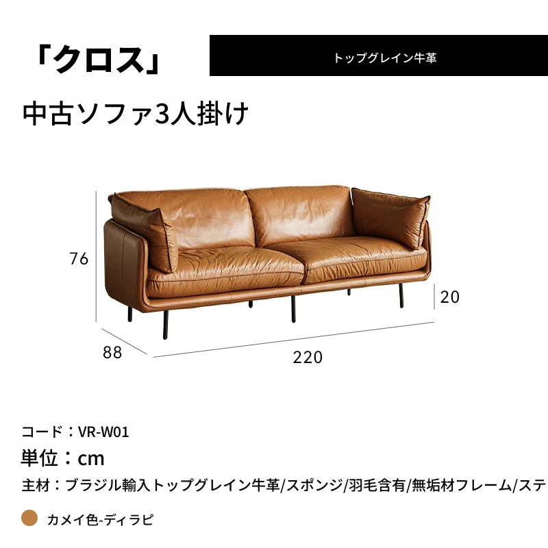 2.2メートル全本革三人掛けソファ【定価14999元、特価9999元】