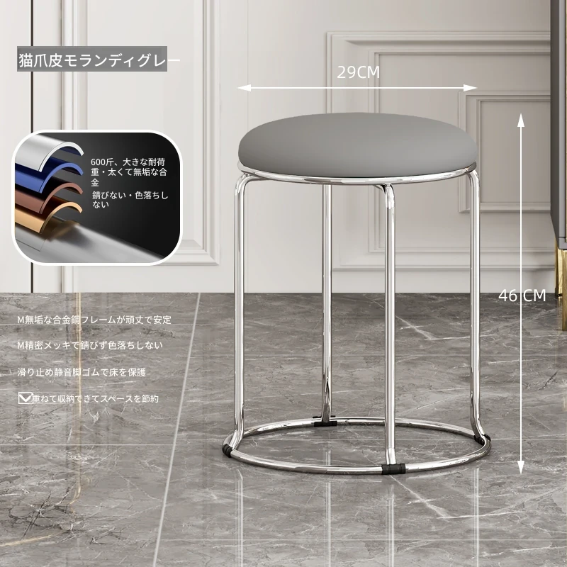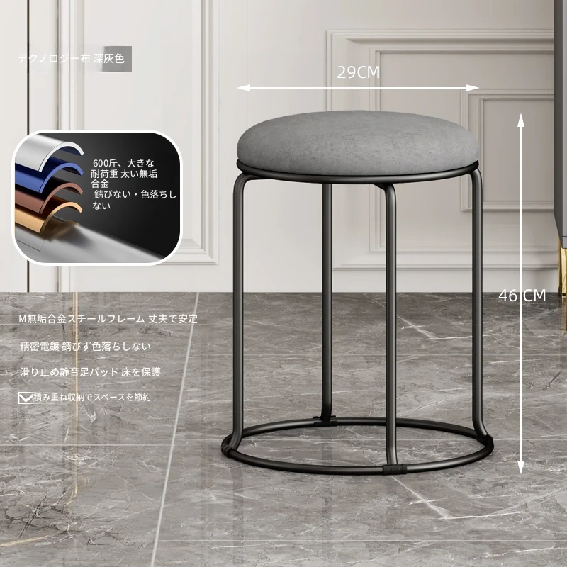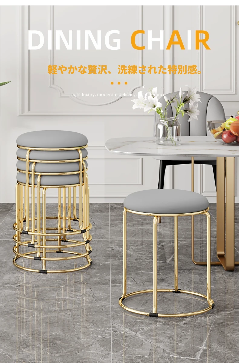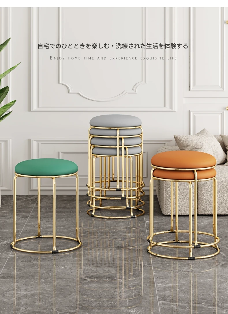 軽やかでスタイリッシュな家用円形スツール!北欧デザインのミニマルな椅子は、ダイニングやリビングに最適。重ねて収納できる便利さで、スペースを有効活用!おしゃれで機能的な一品をお見逃しなく!