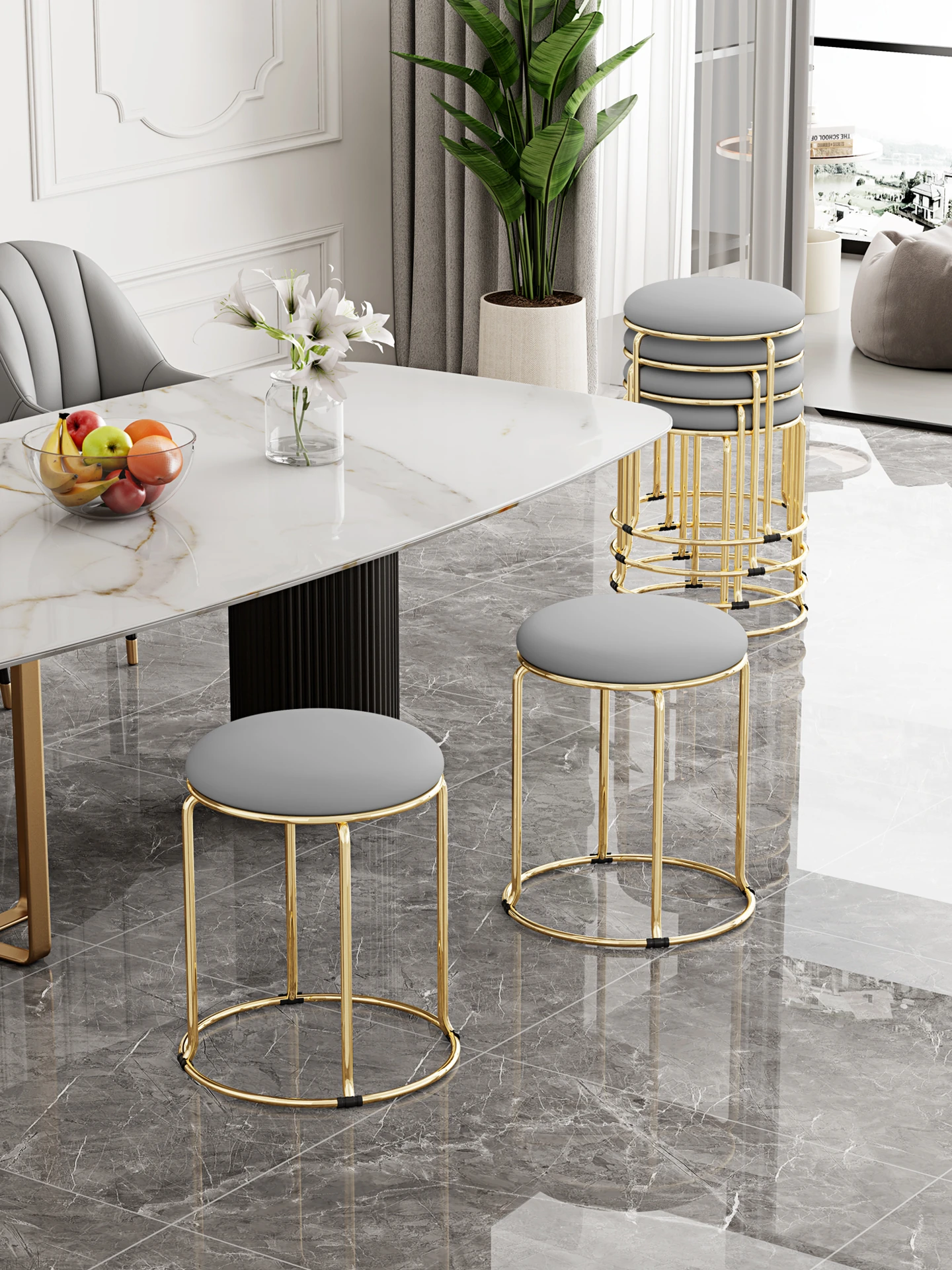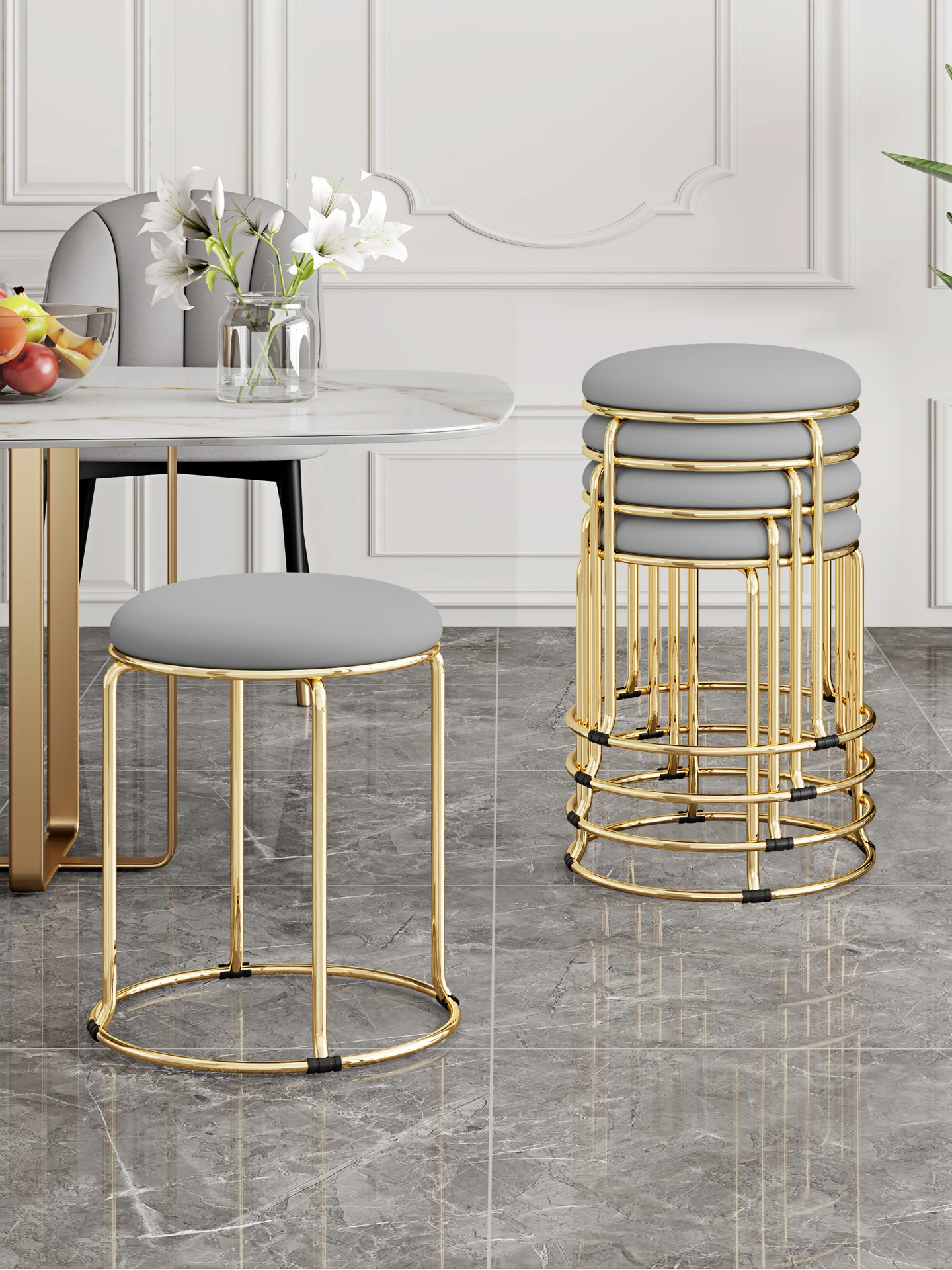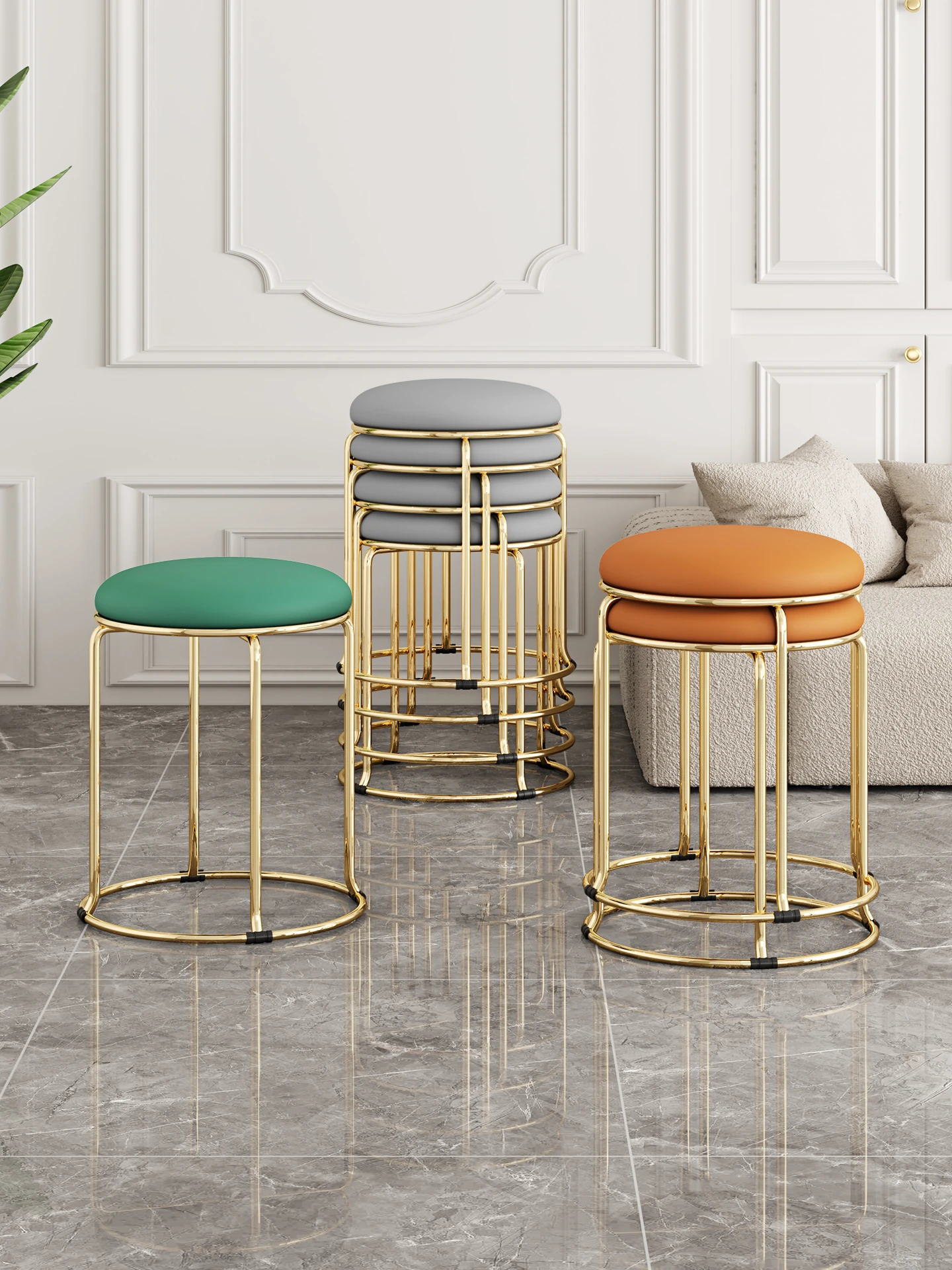 軽やかでスタイリッシュな家用円形スツール!北欧デザインのミニマルな椅子は、ダイニングやリビングに最適。重ねて収納できる便利さで、スペースを有効活用!おしゃれで機能的な一品をお見逃しなく!