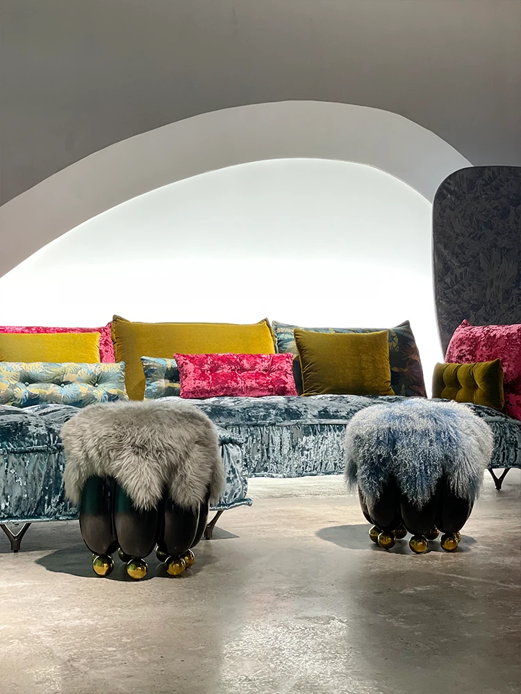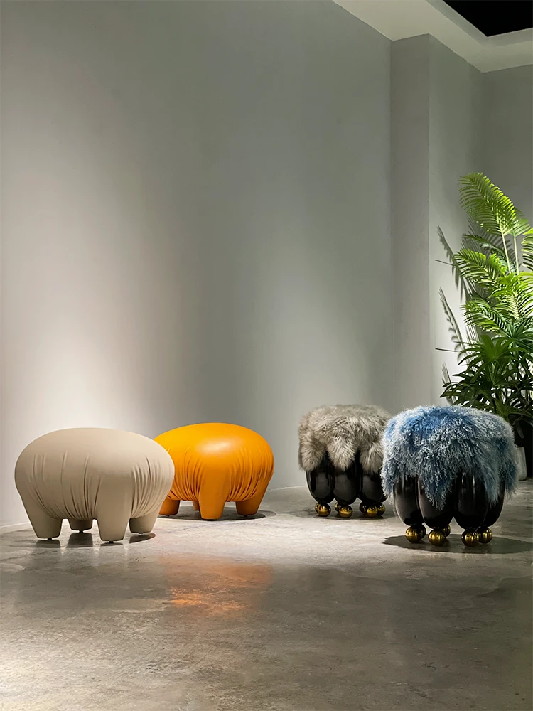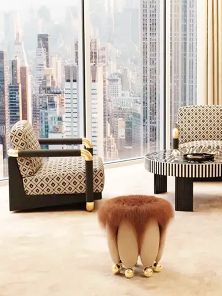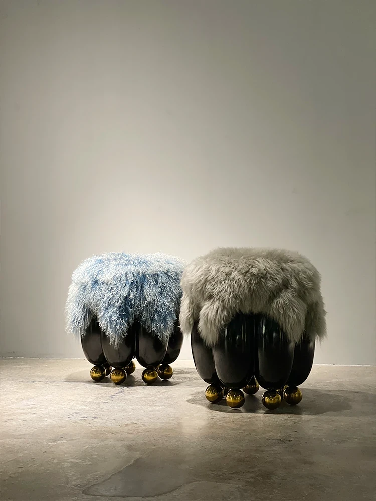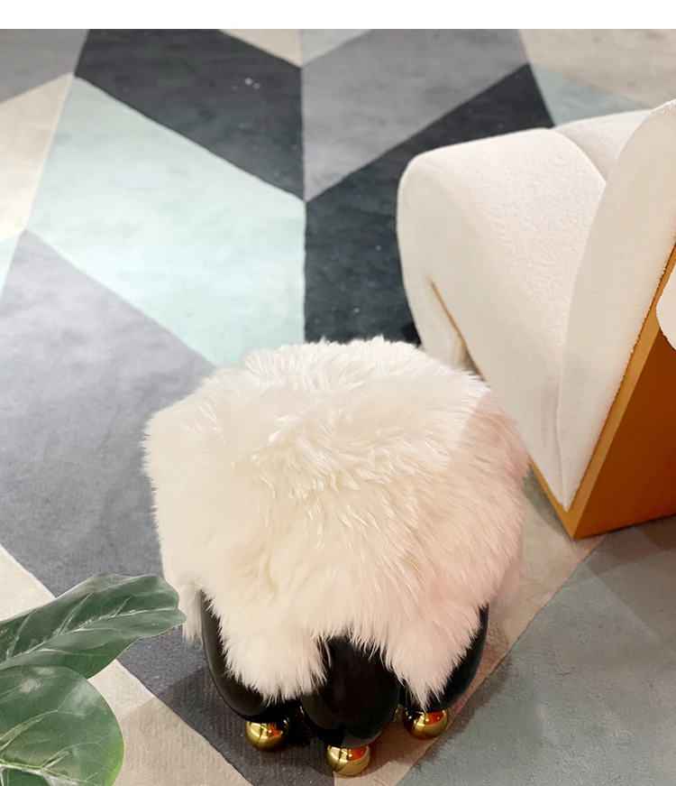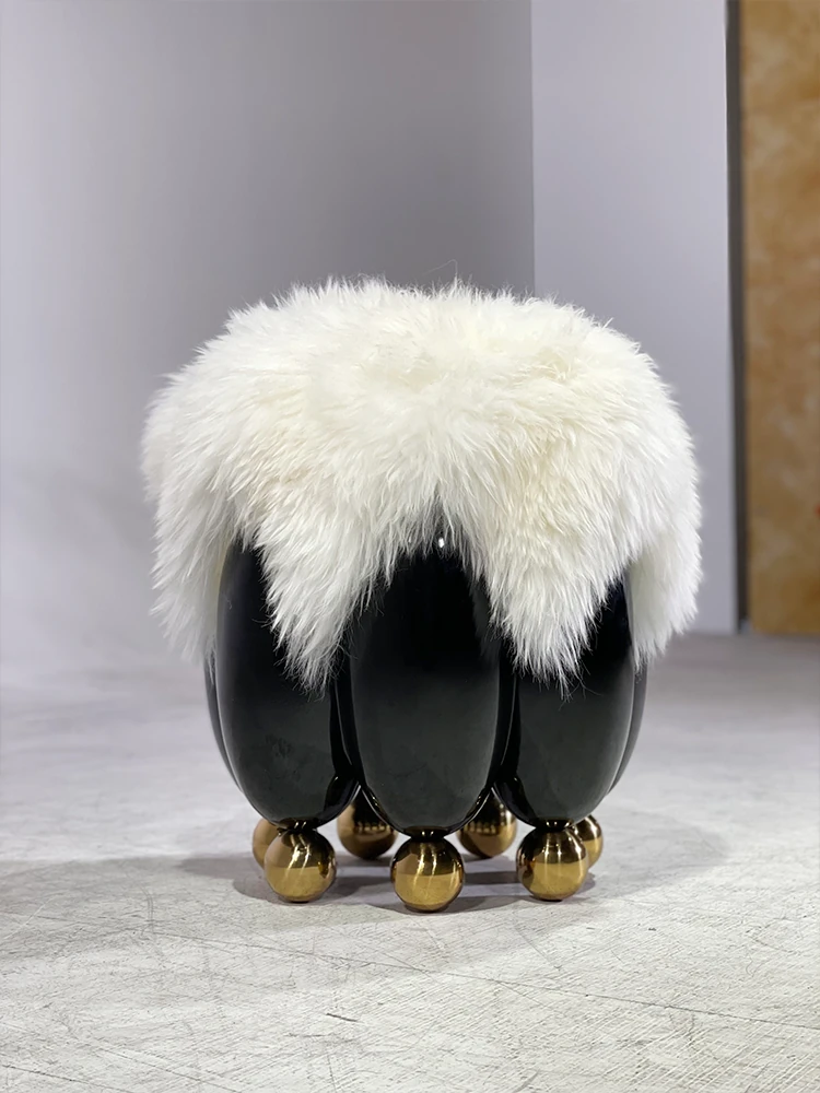 ファッショナブルでラグジュアリーな天然ウールのショートスツール - イタリアンミニマリズムのデザイン、リビングにぴったりの小さなサークルスツール。靴を履く時や化粧時に便利なソファスツール!