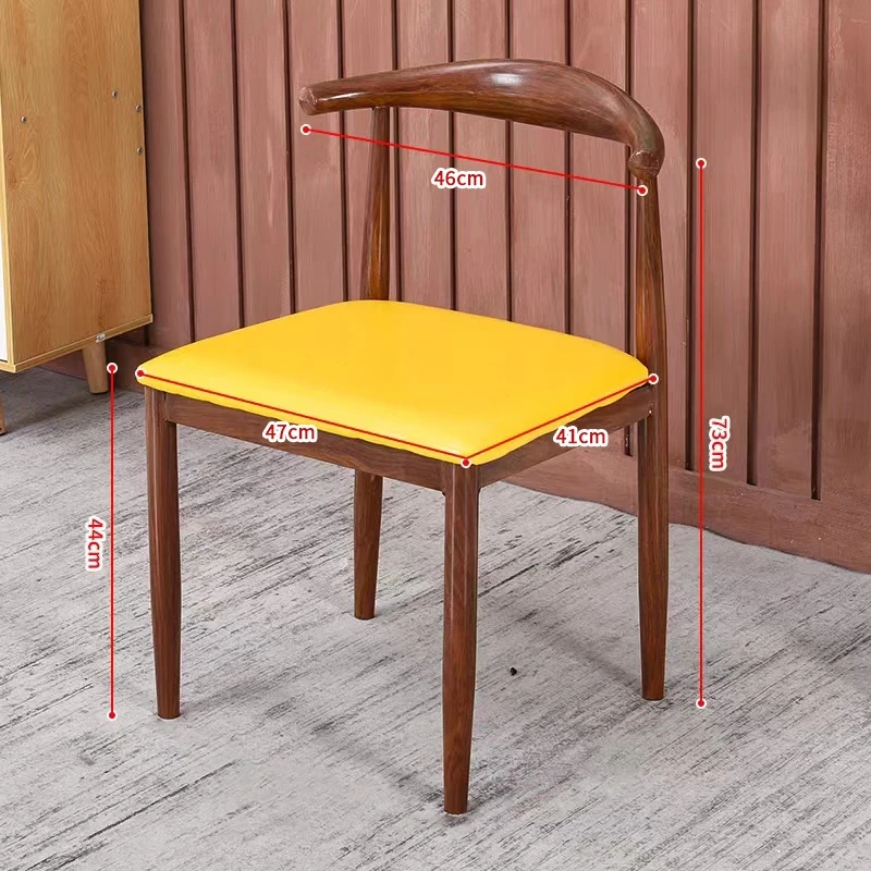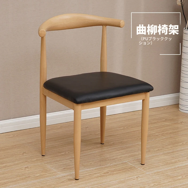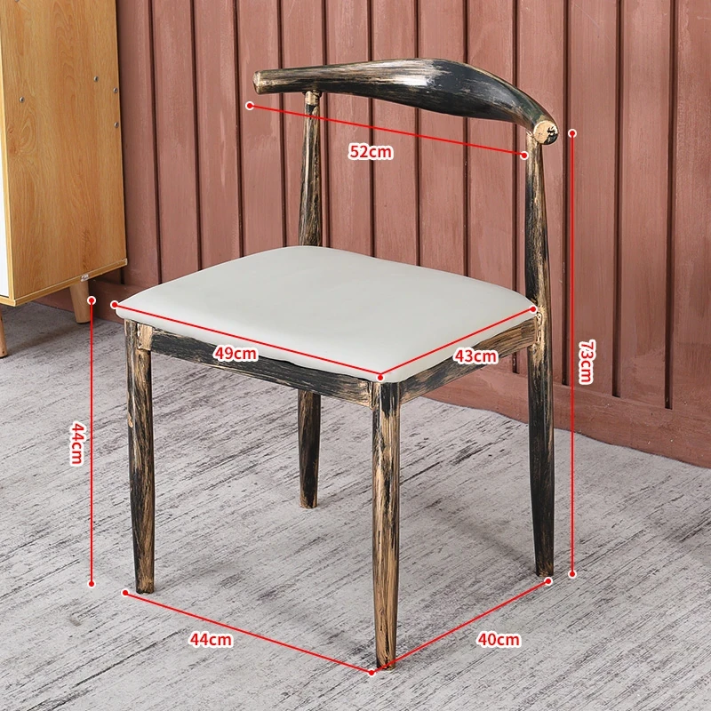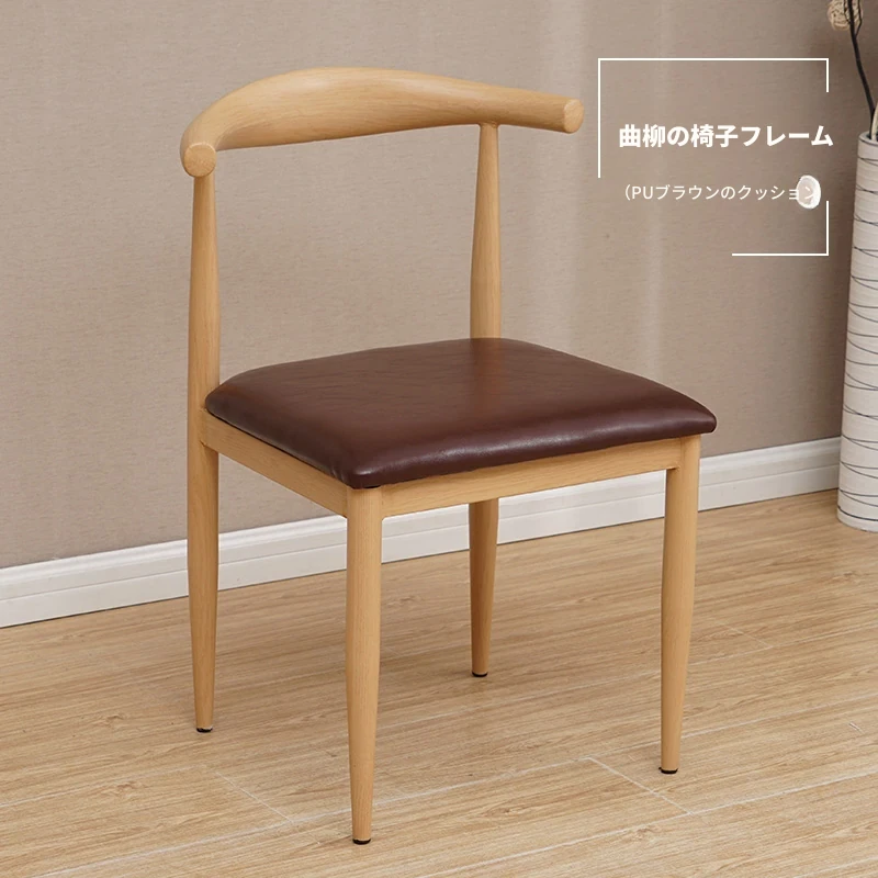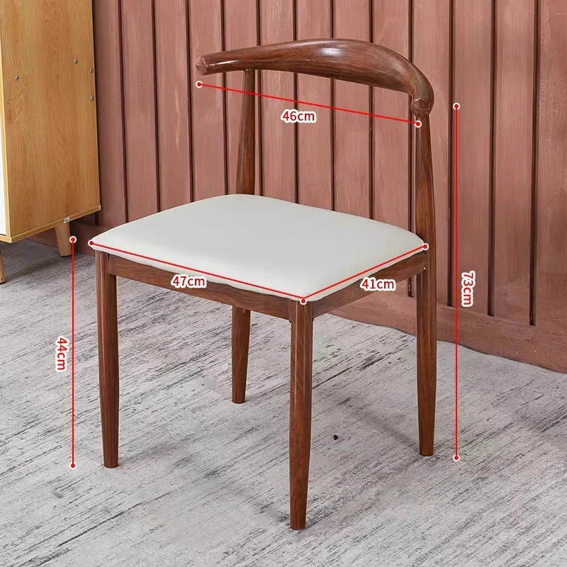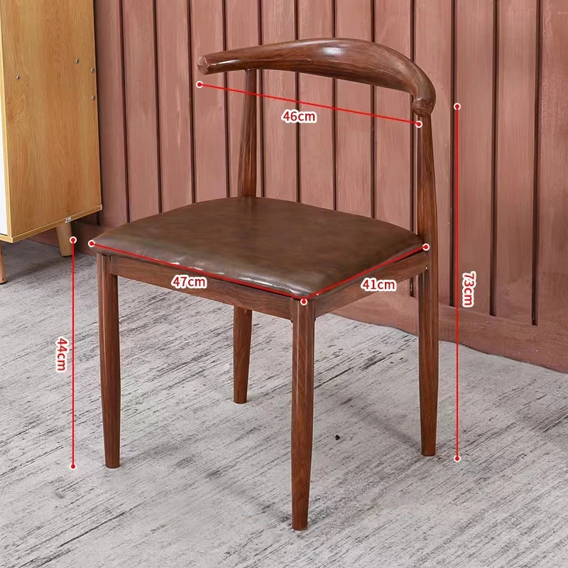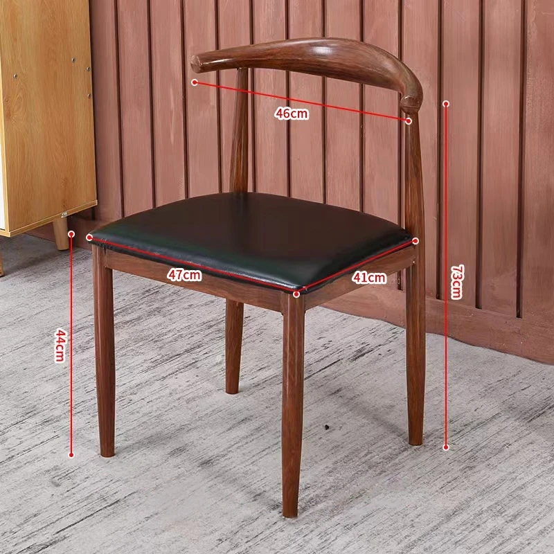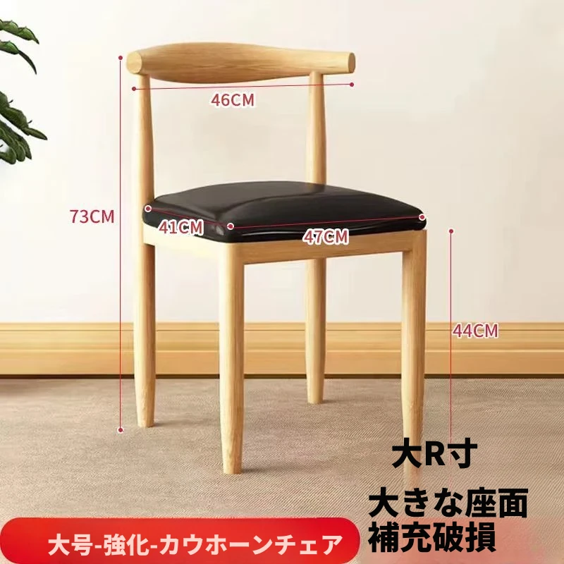 家庭用のスタイリッシュなダイニングチェア - 背もたれ付きのカウホーンデザイン、シンプルでおしゃれ!人気のアイアン製、北欧風の木目調チェアで、あなたの食卓を引き立てます。