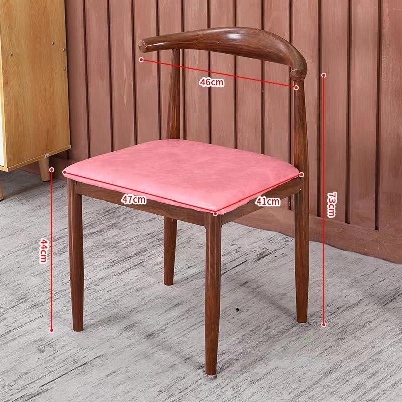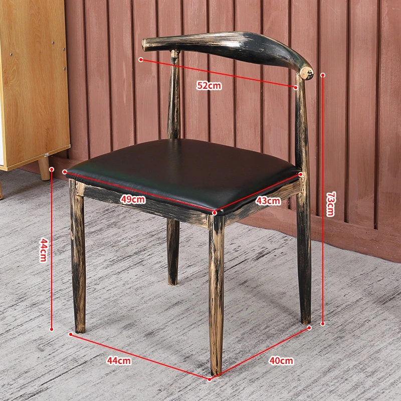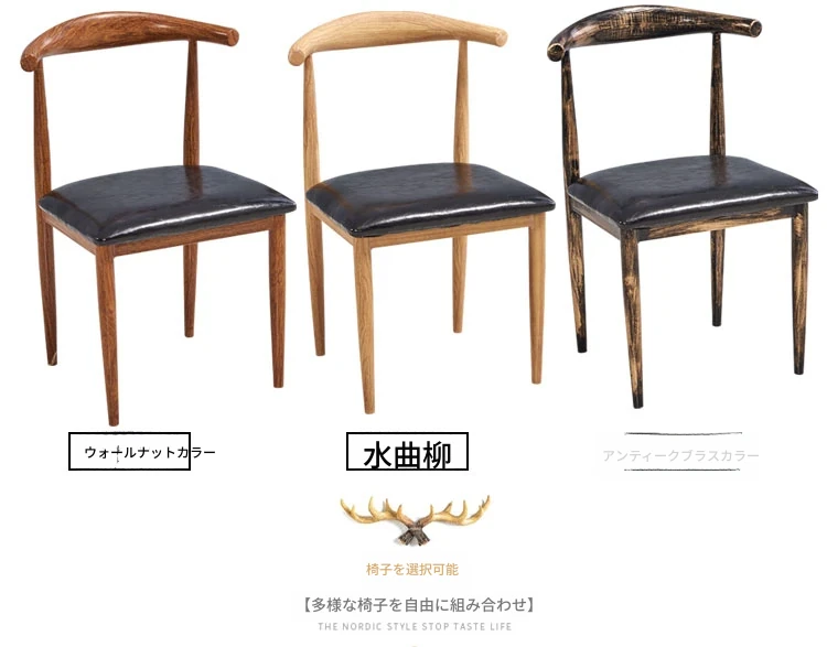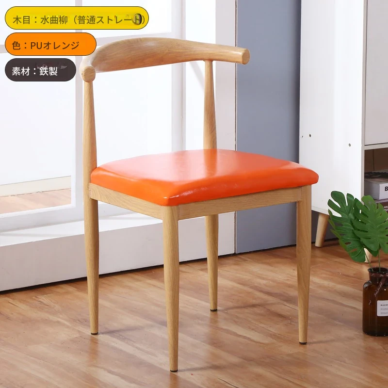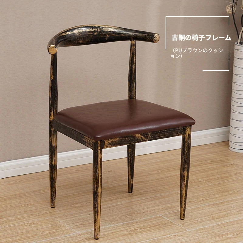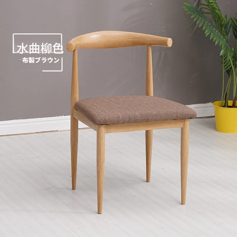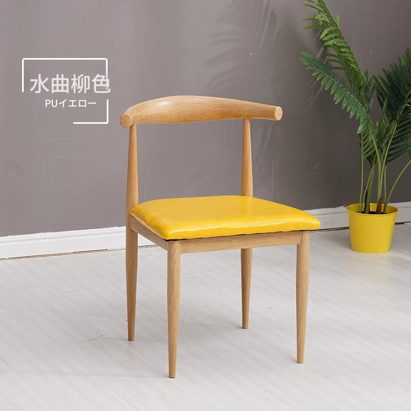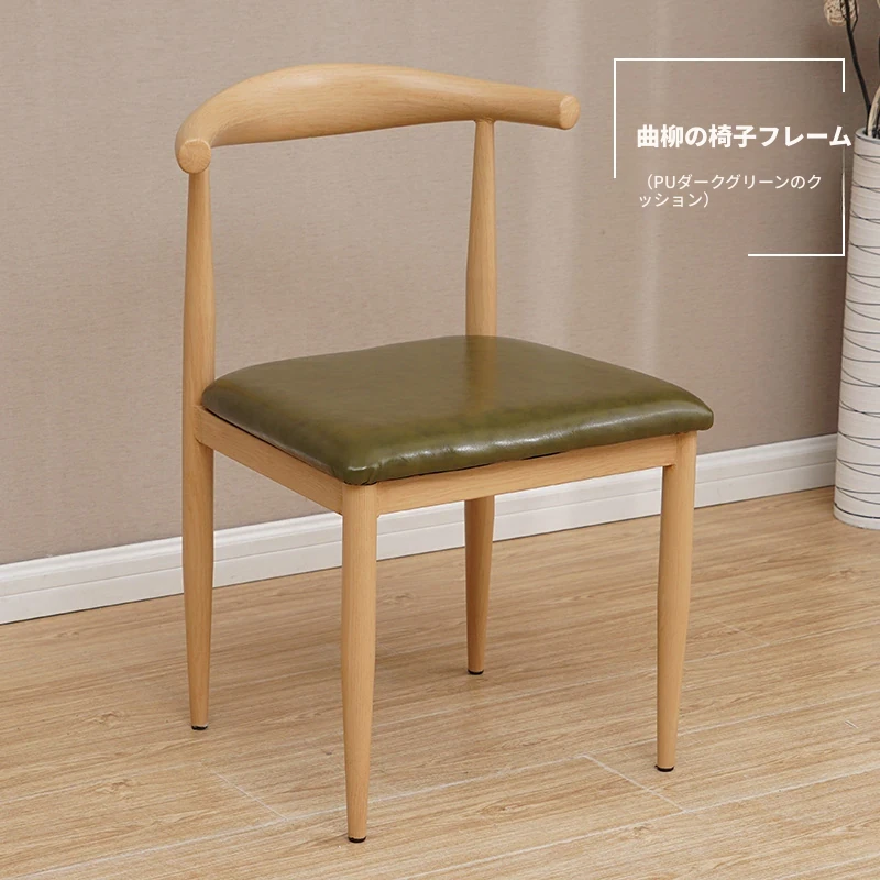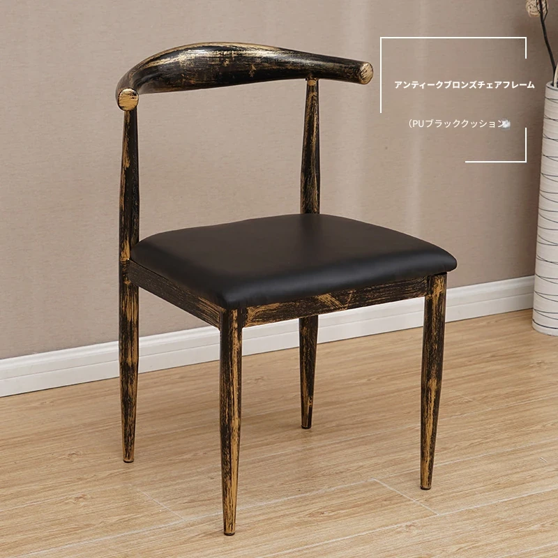 家庭用のスタイリッシュなダイニングチェア - 背もたれ付きのカウホーンデザイン、シンプルでおしゃれ!人気のアイアン製、北欧風の木目調チェアで、あなたの食卓を引き立てます。