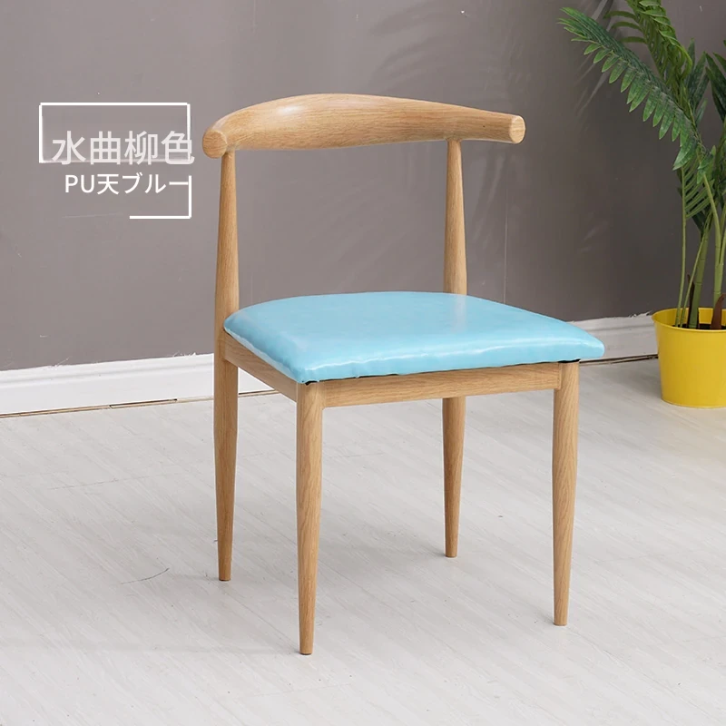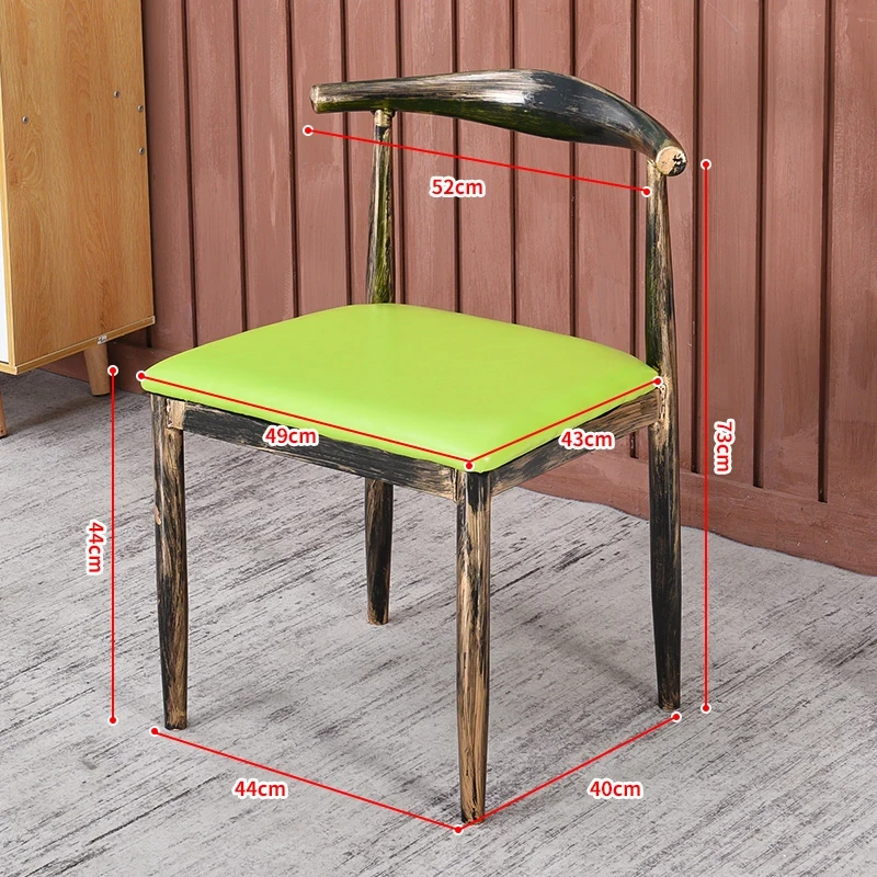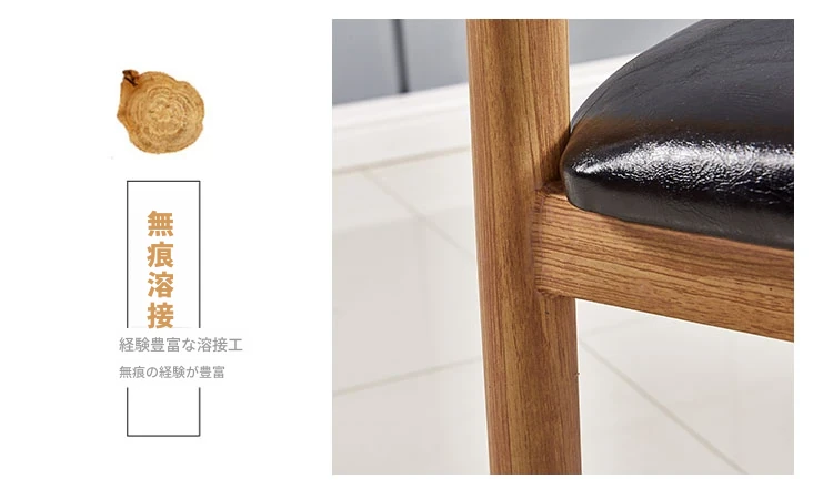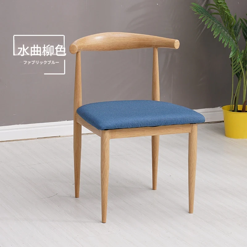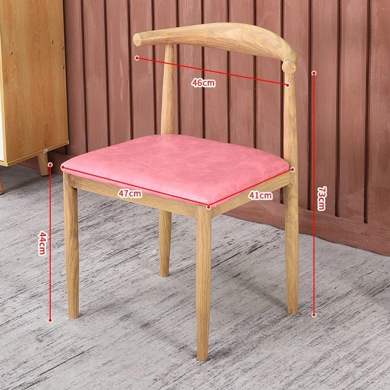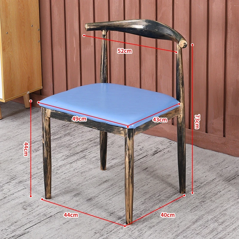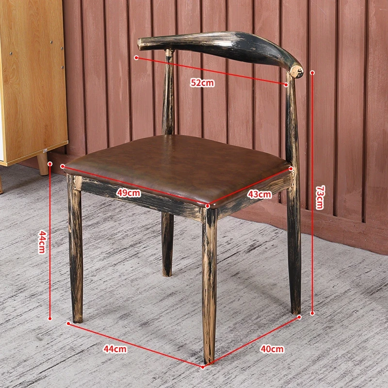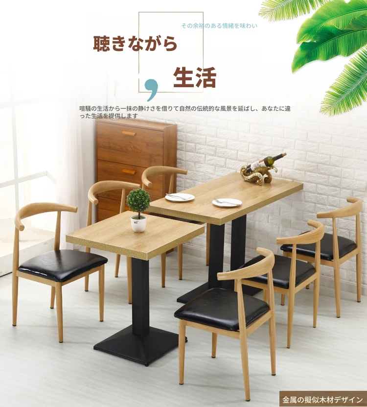 家庭用のスタイリッシュなダイニングチェア - 背もたれ付きのカウホーンデザイン、シンプルでおしゃれ!人気のアイアン製、北欧風の木目調チェアで、あなたの食卓を引き立てます。
