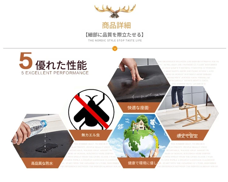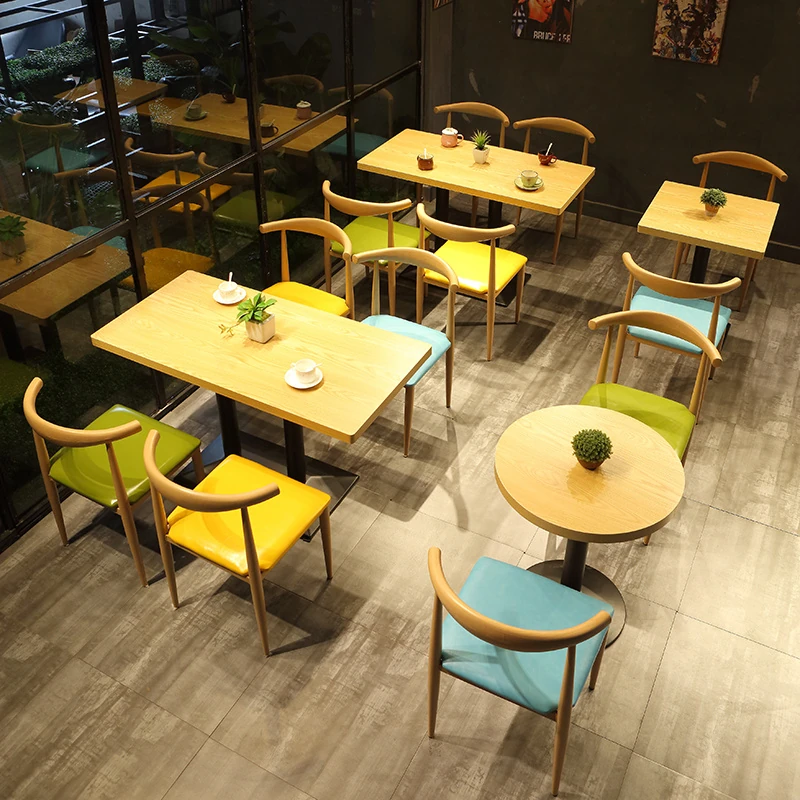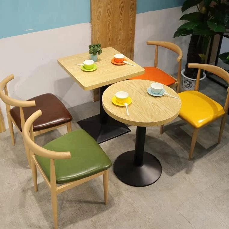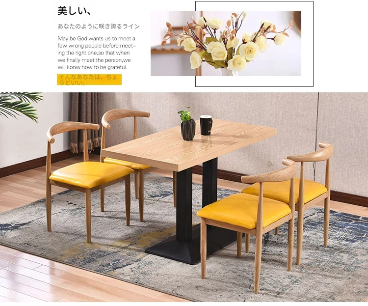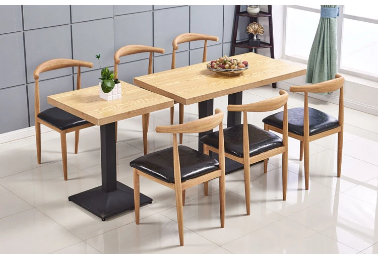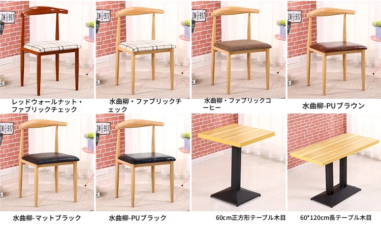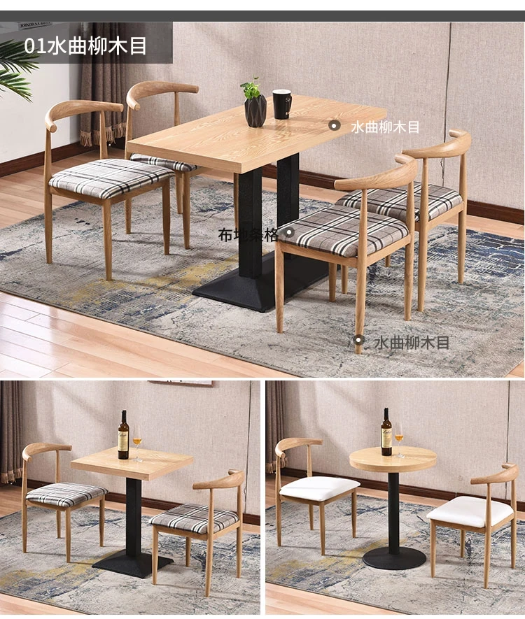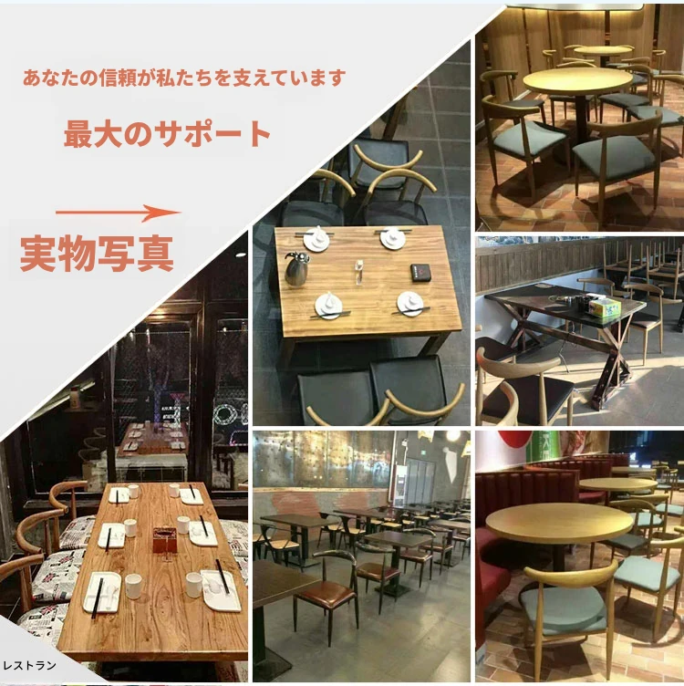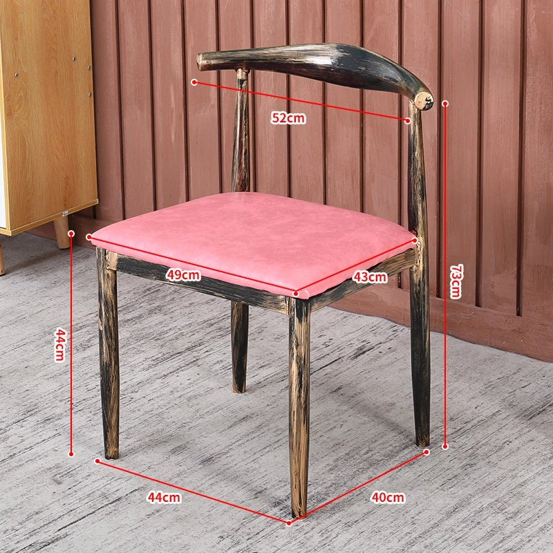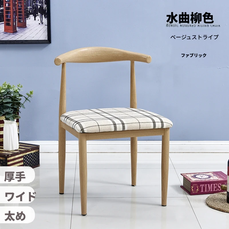 家庭用のスタイリッシュなダイニングチェア - 背もたれ付きのカウホーンデザイン、シンプルでおしゃれ!人気のアイアン製、北欧風の木目調チェアで、あなたの食卓を引き立てます。